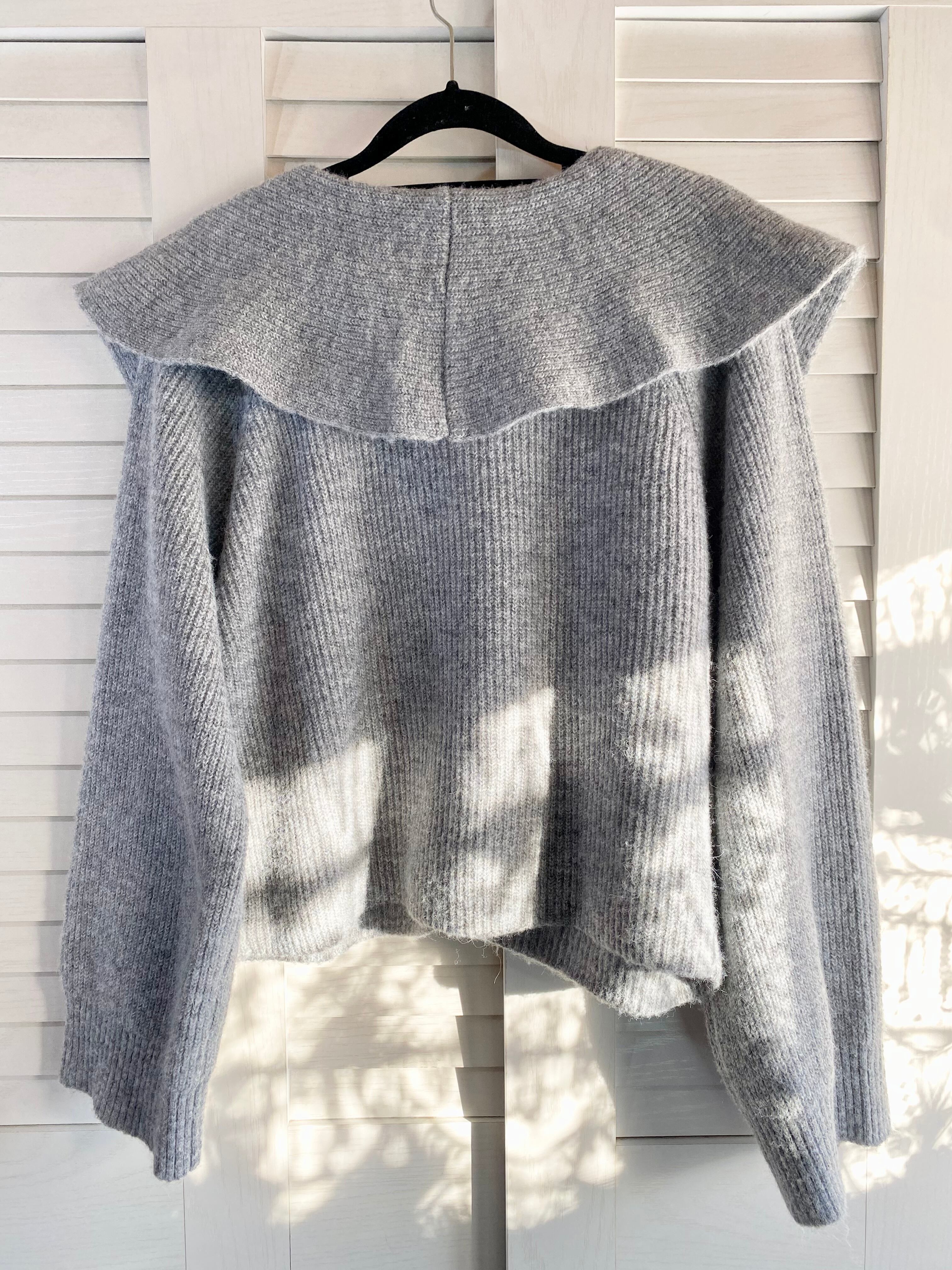 #120 Discoat BIGカラー ショート丈アクリルウールニットカーデ ライトグレー