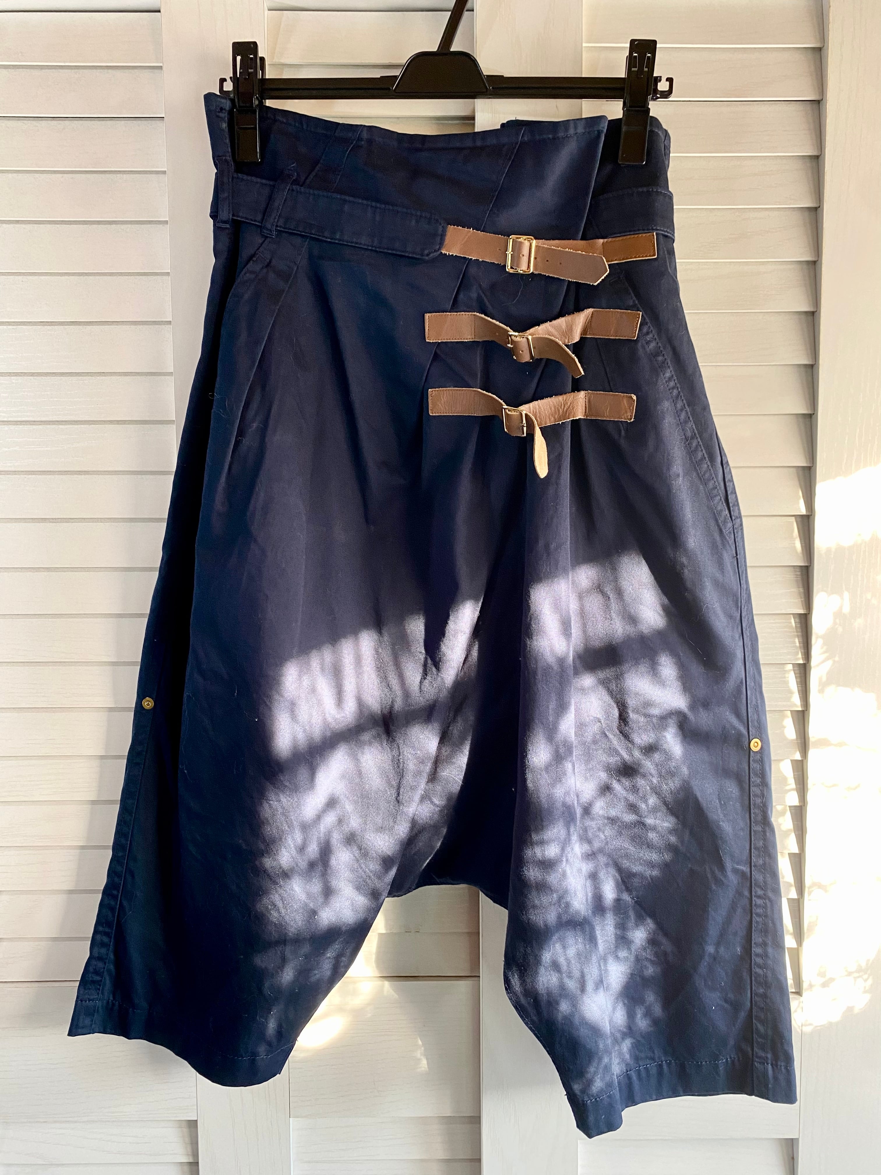 #120 mercibeaucoup, ベルトデザイン オーバーサイズ クロップド デザインサロペットパンツ ネイビー