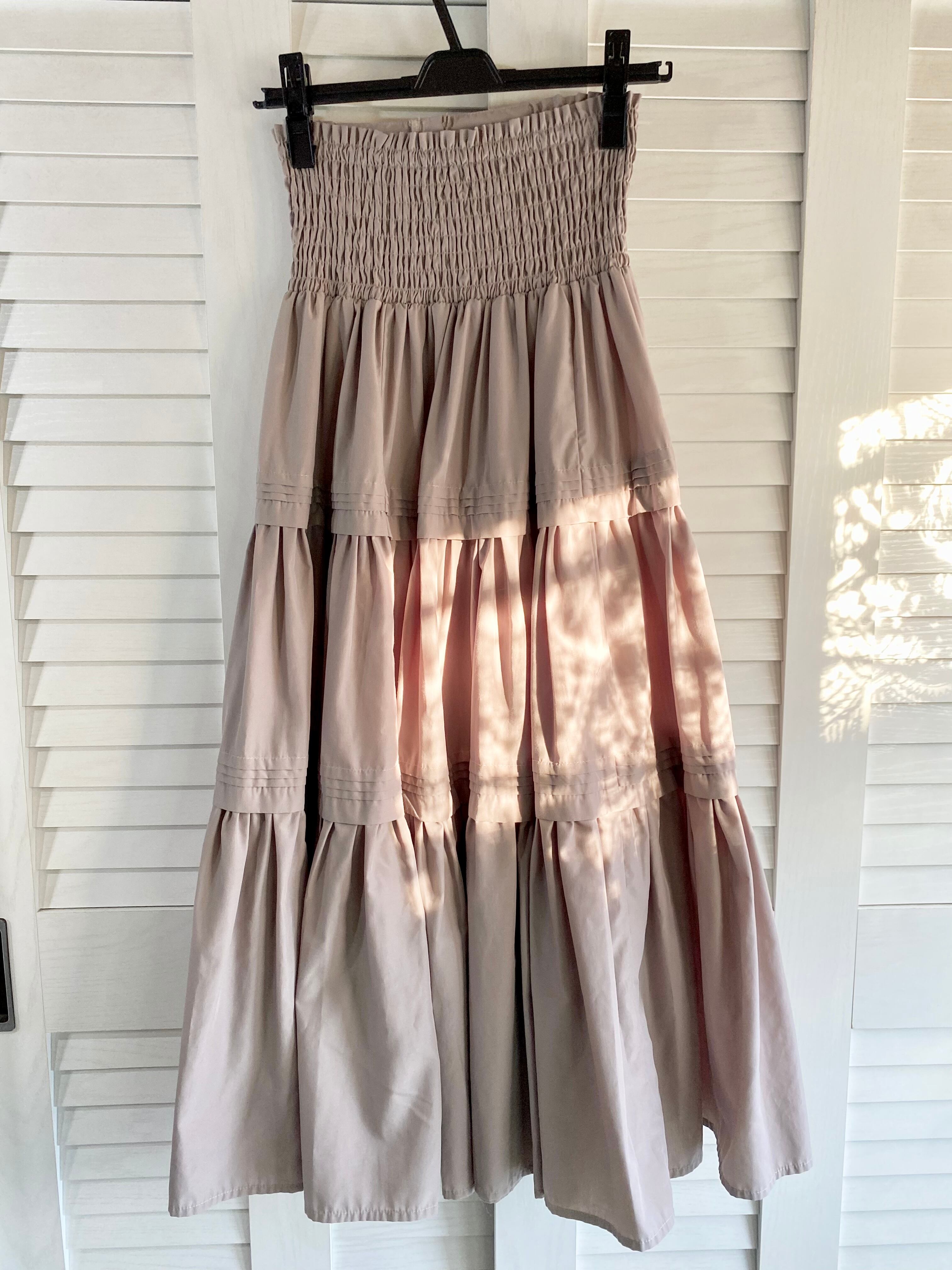 #121 rienda ピンタックティアード シャーリングハイウエストスカート グレーベージュ