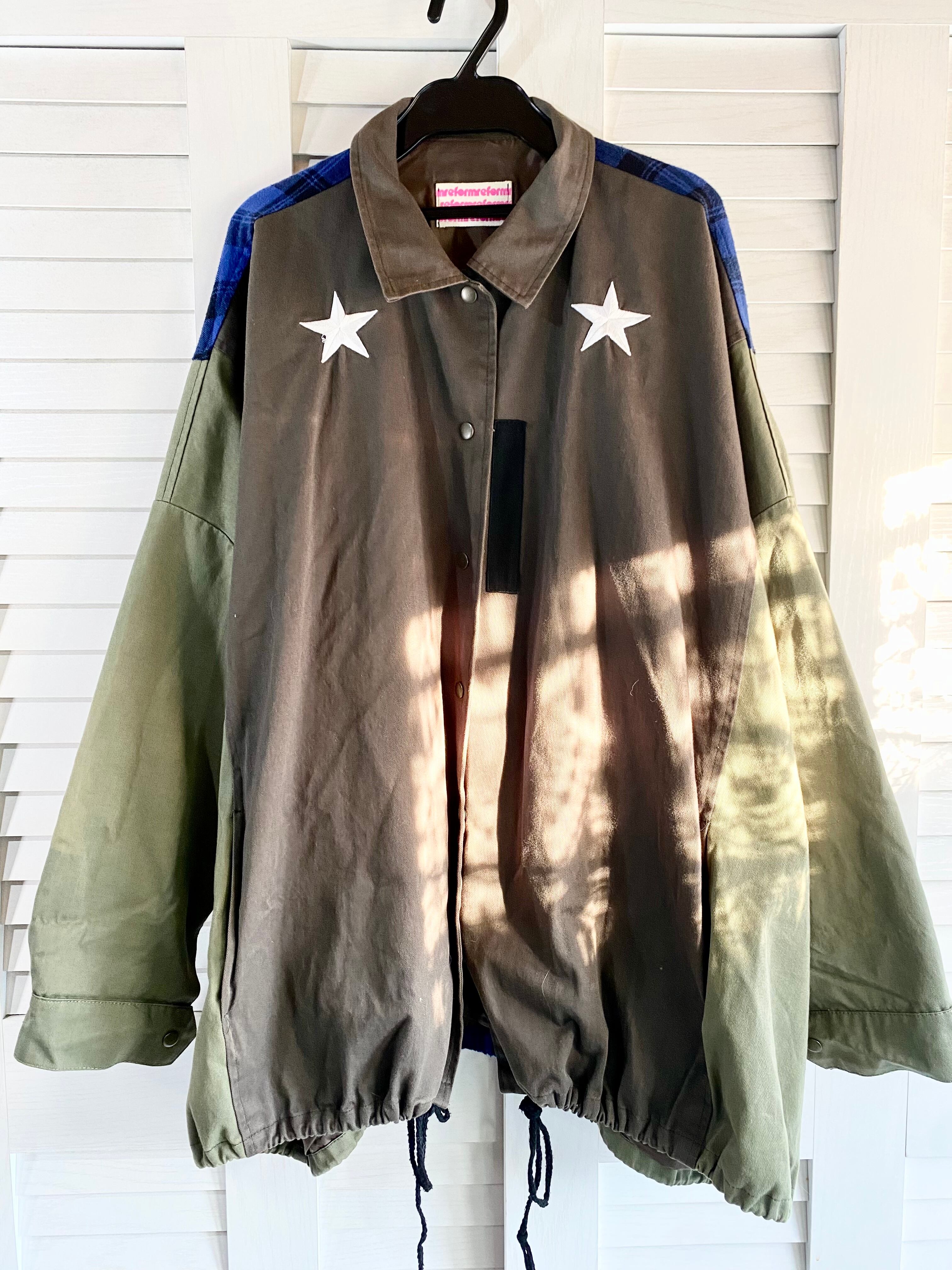 #121 reform リメイクデザイン クレイジーパターン オーバーサイズ 裏地付きフライングシャツブルゾン カーキ
