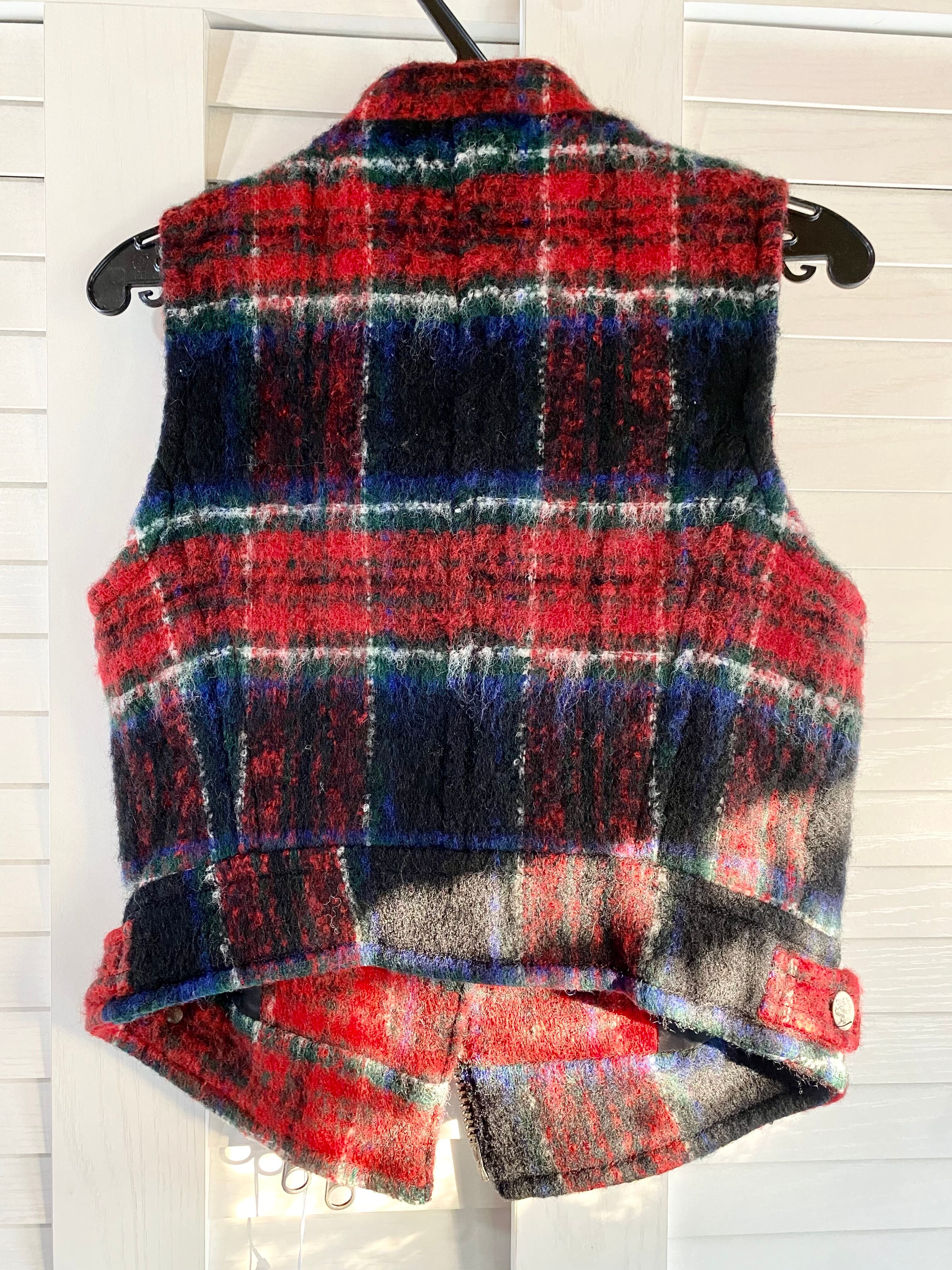 #121 KariAng シャギーウール タータンチェック ライダースベスト レッド | お洋服屋さん 『GOKKO』