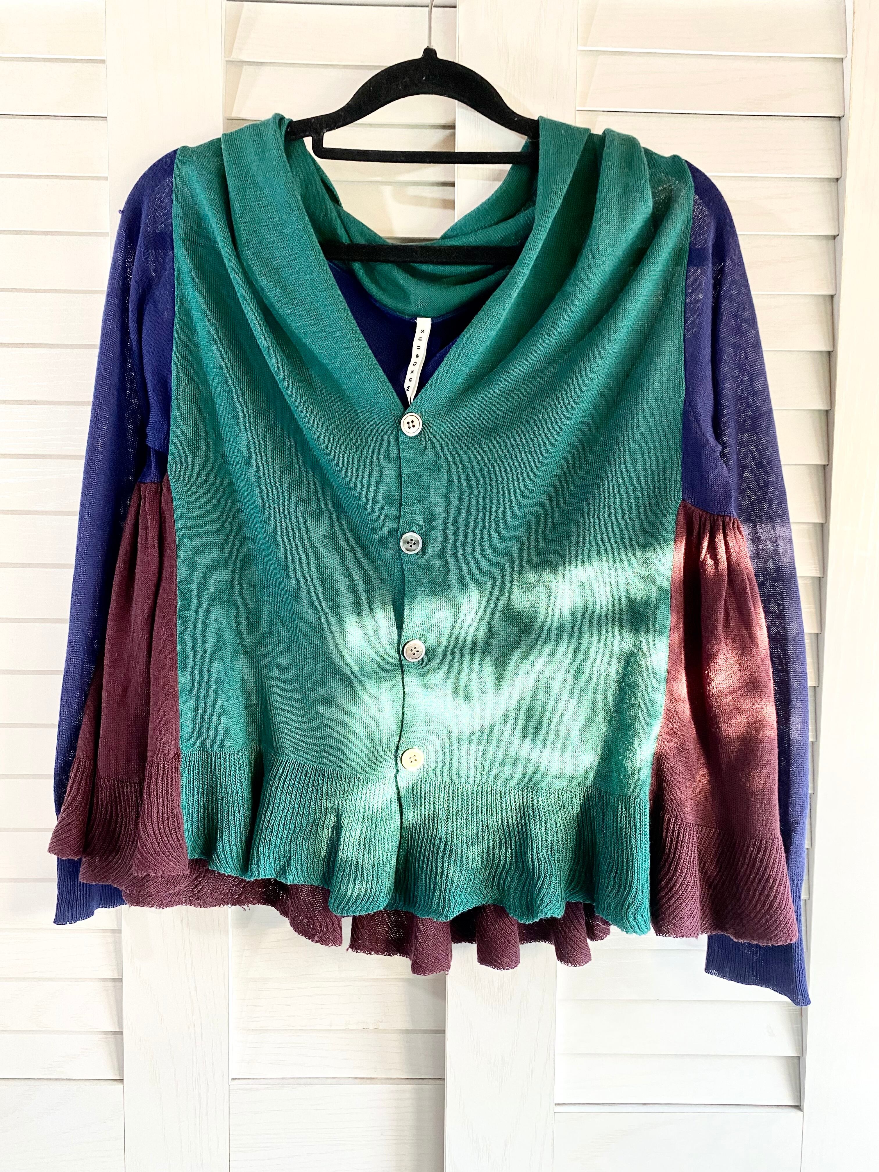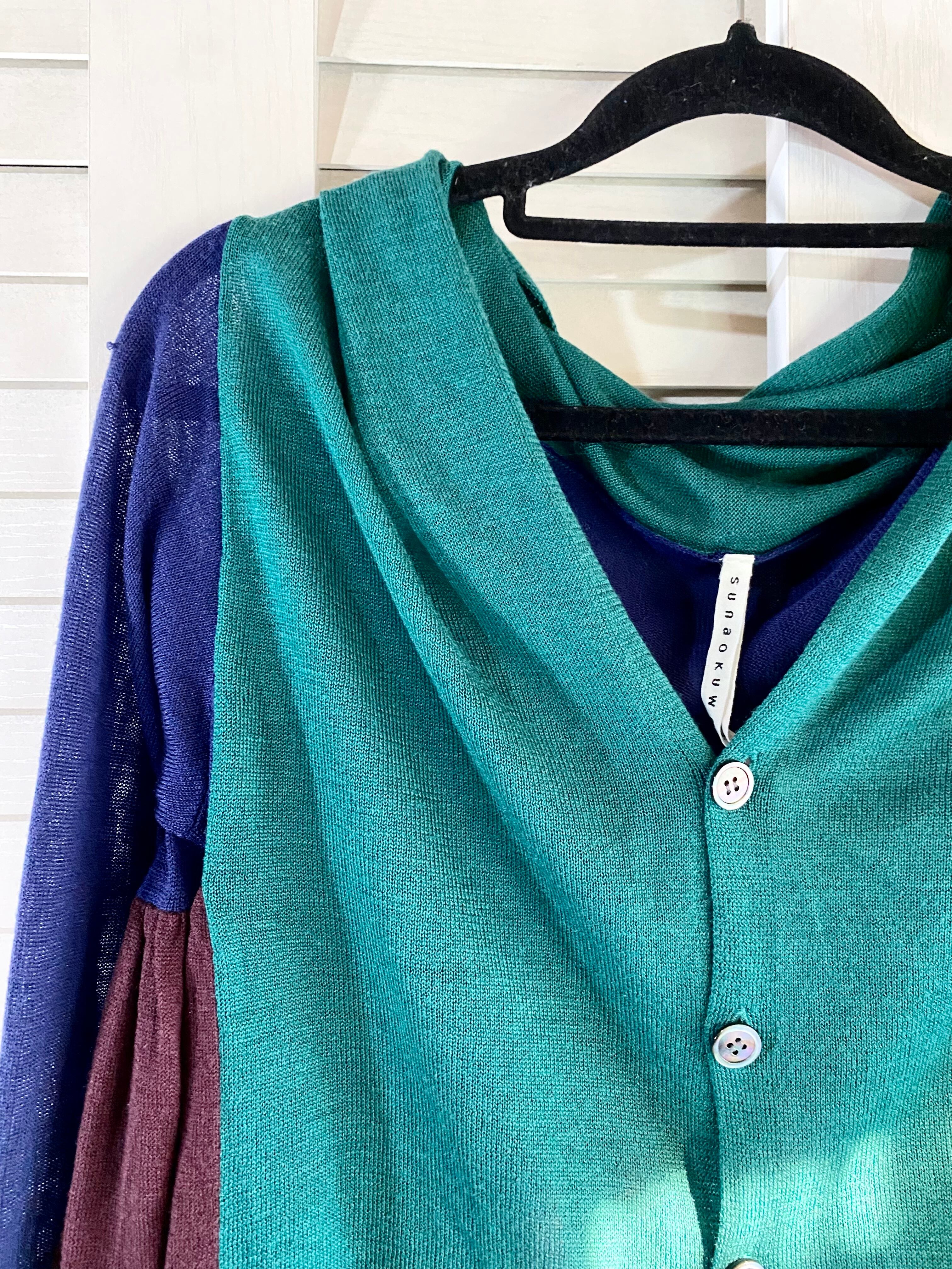 専用◎#121 SUNAO KUWAHARA クレイジーパターン 変形ニットカーデ グリーン×ネイビー×ネイビー