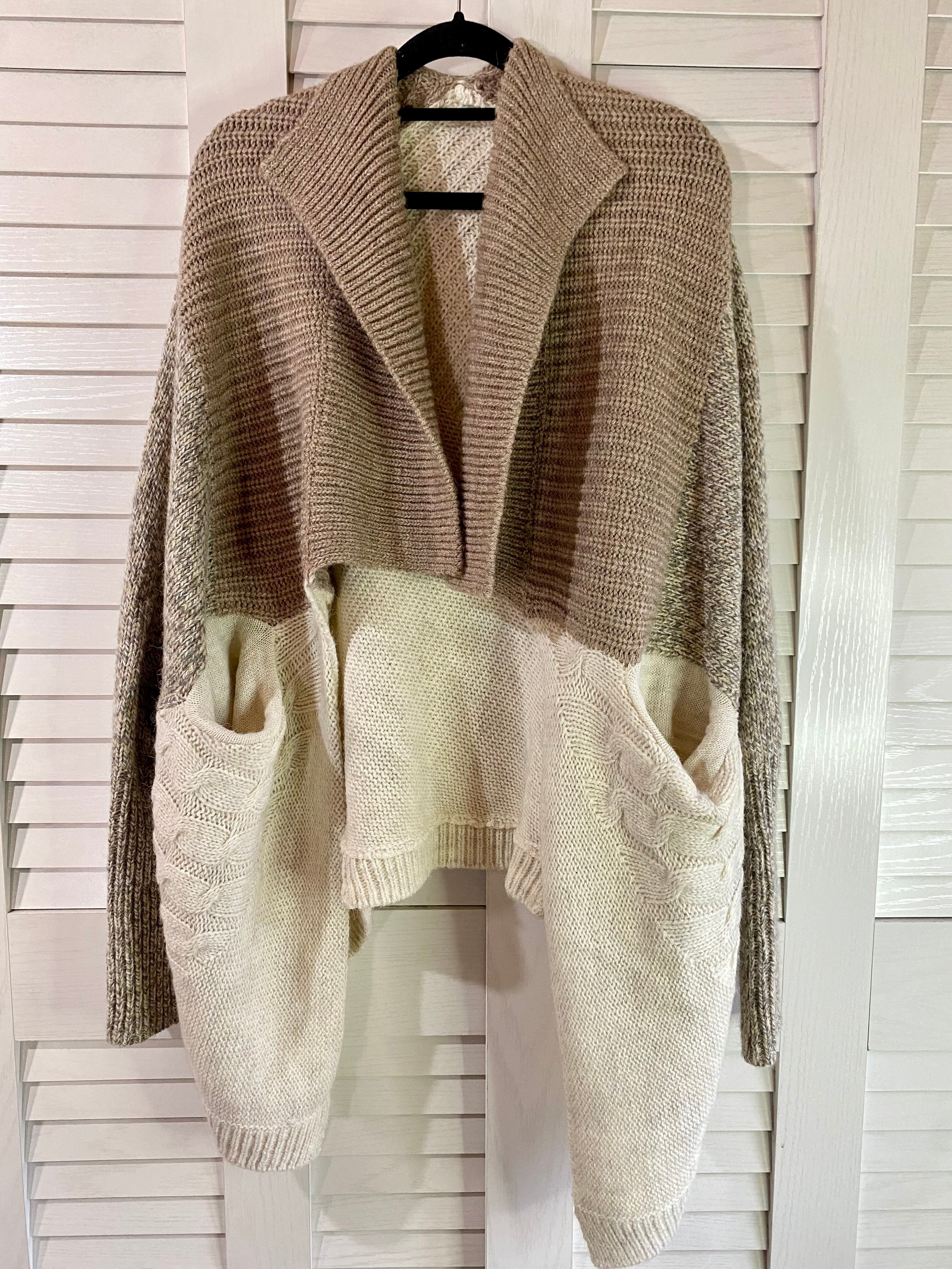 #122 OSMOSIS クレイジーパターン 変形ニットカーデオフホワイト×モカベージュ