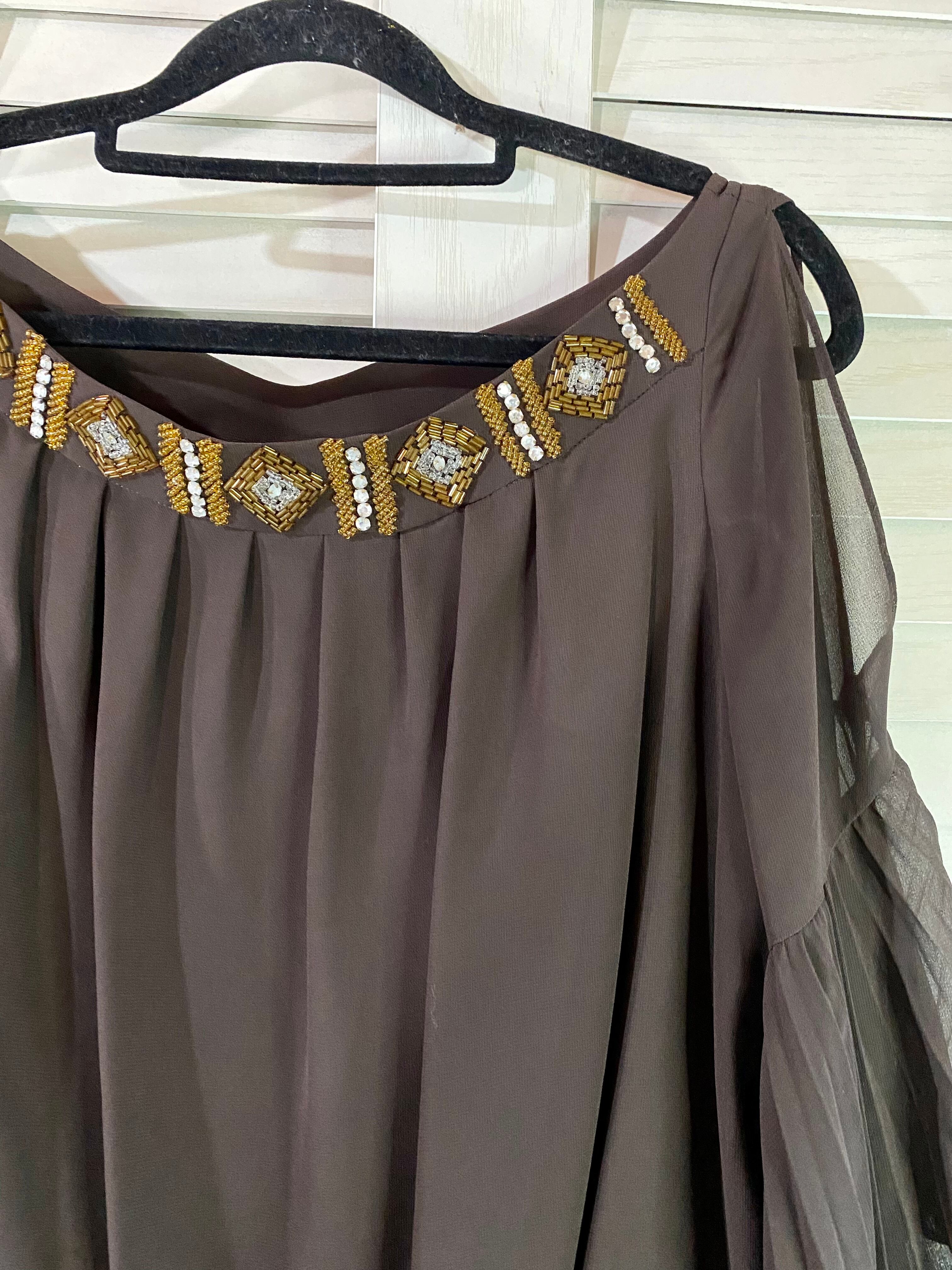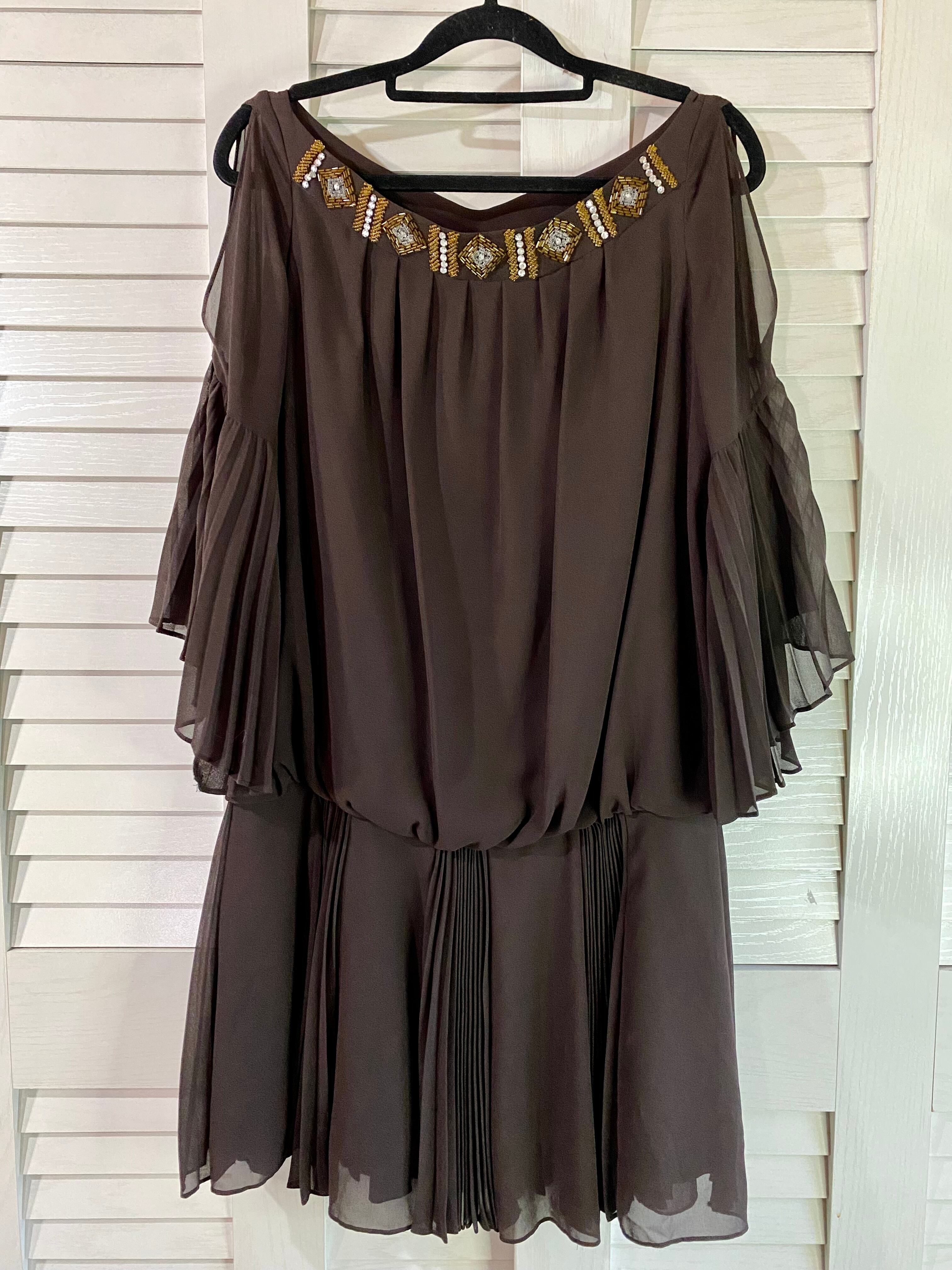 #122 GRACE CONTINENTAL ビジューカラー プリーツペプラム ジョーセットワンピ ブラウン