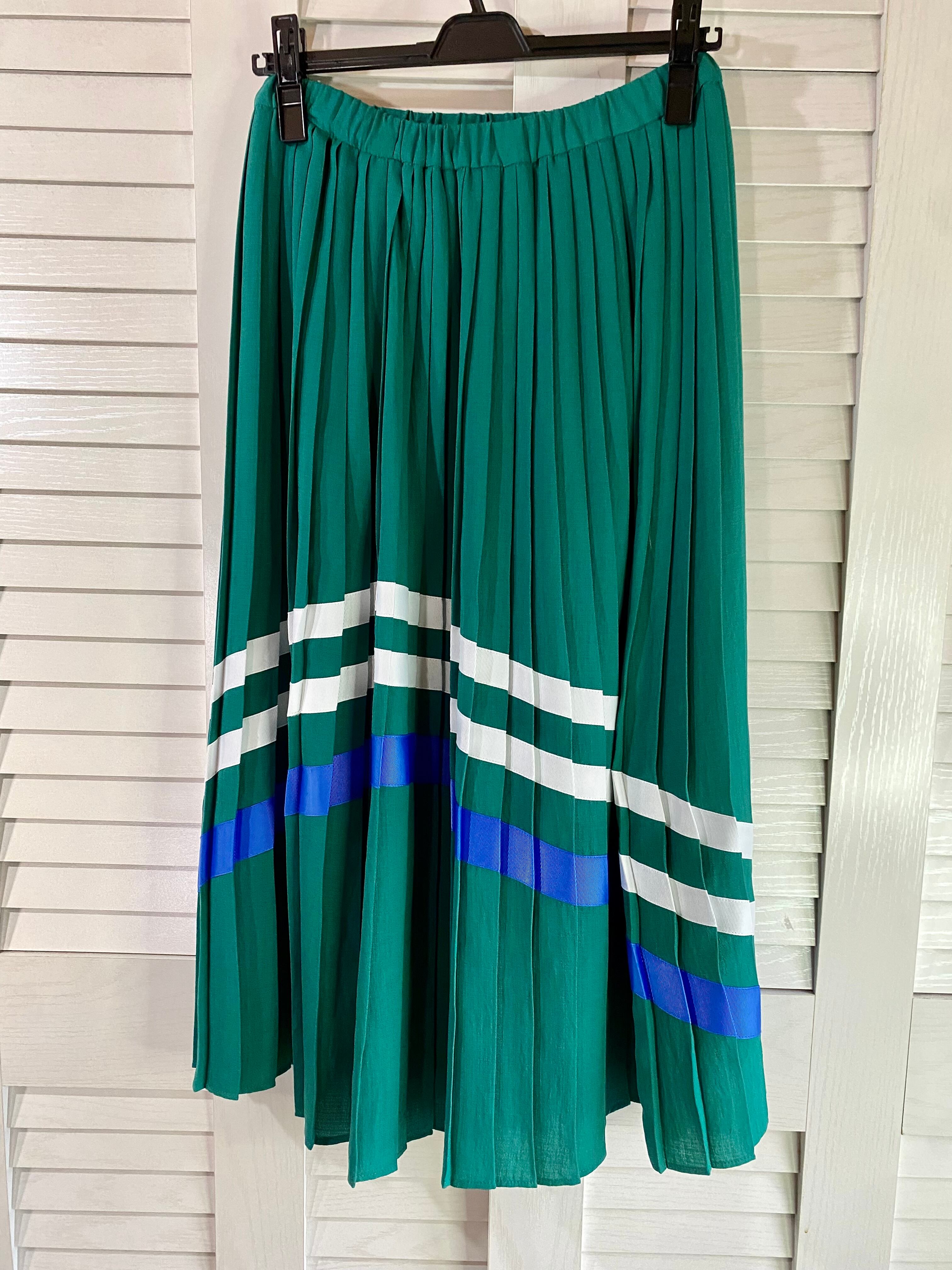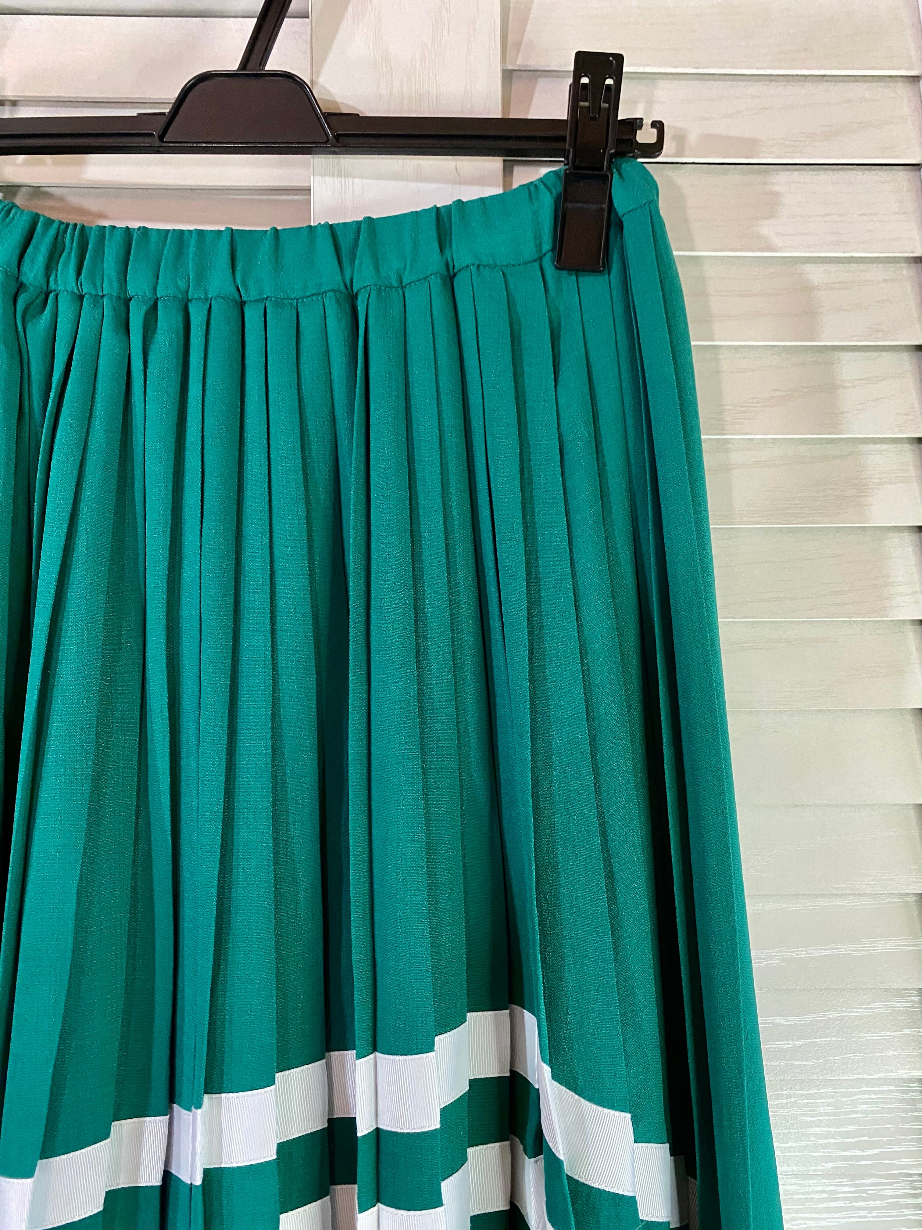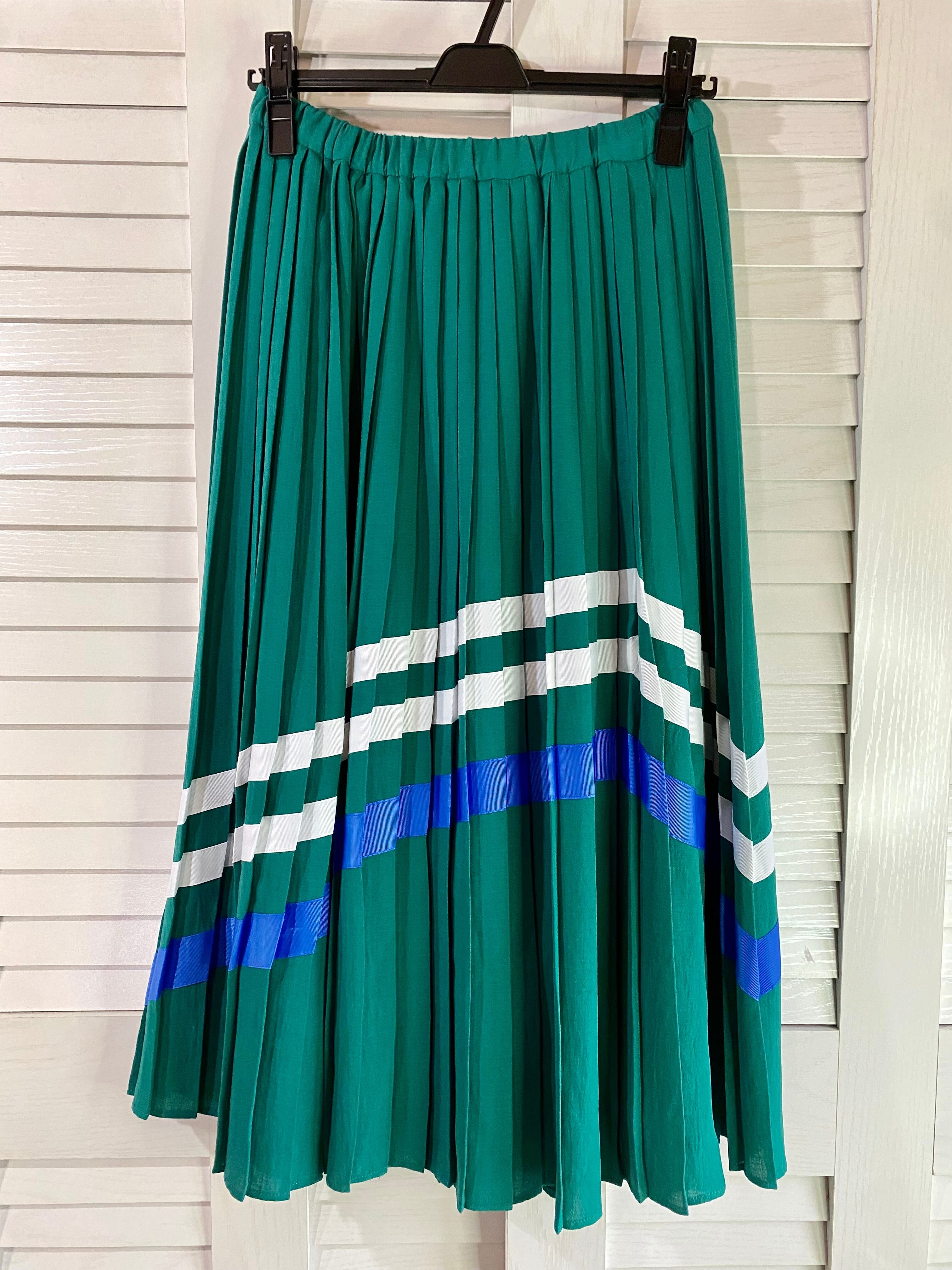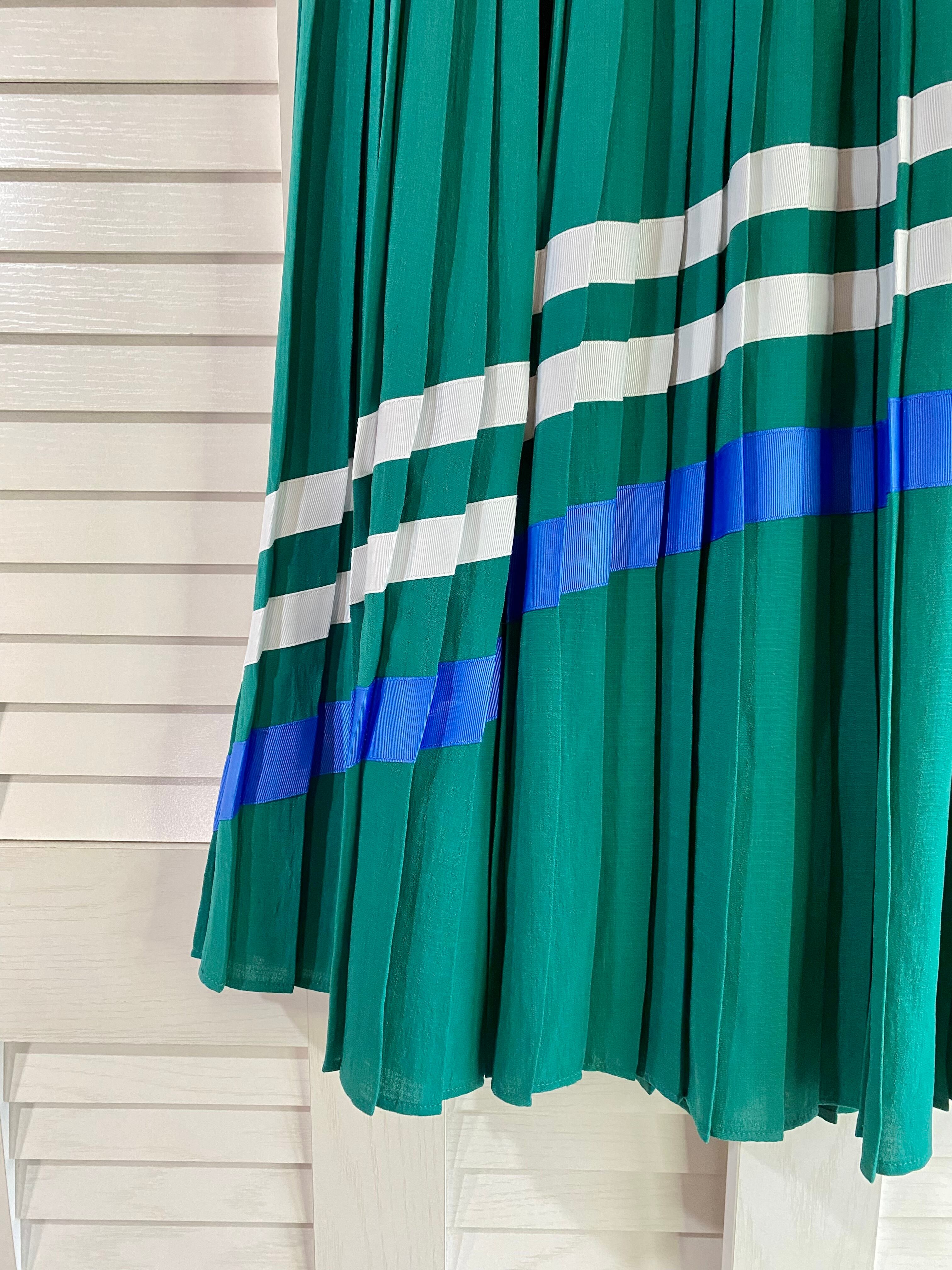 #122 ROSE BUD グログランライン ジョーゼットプリーツスカート エメラルドグリーン