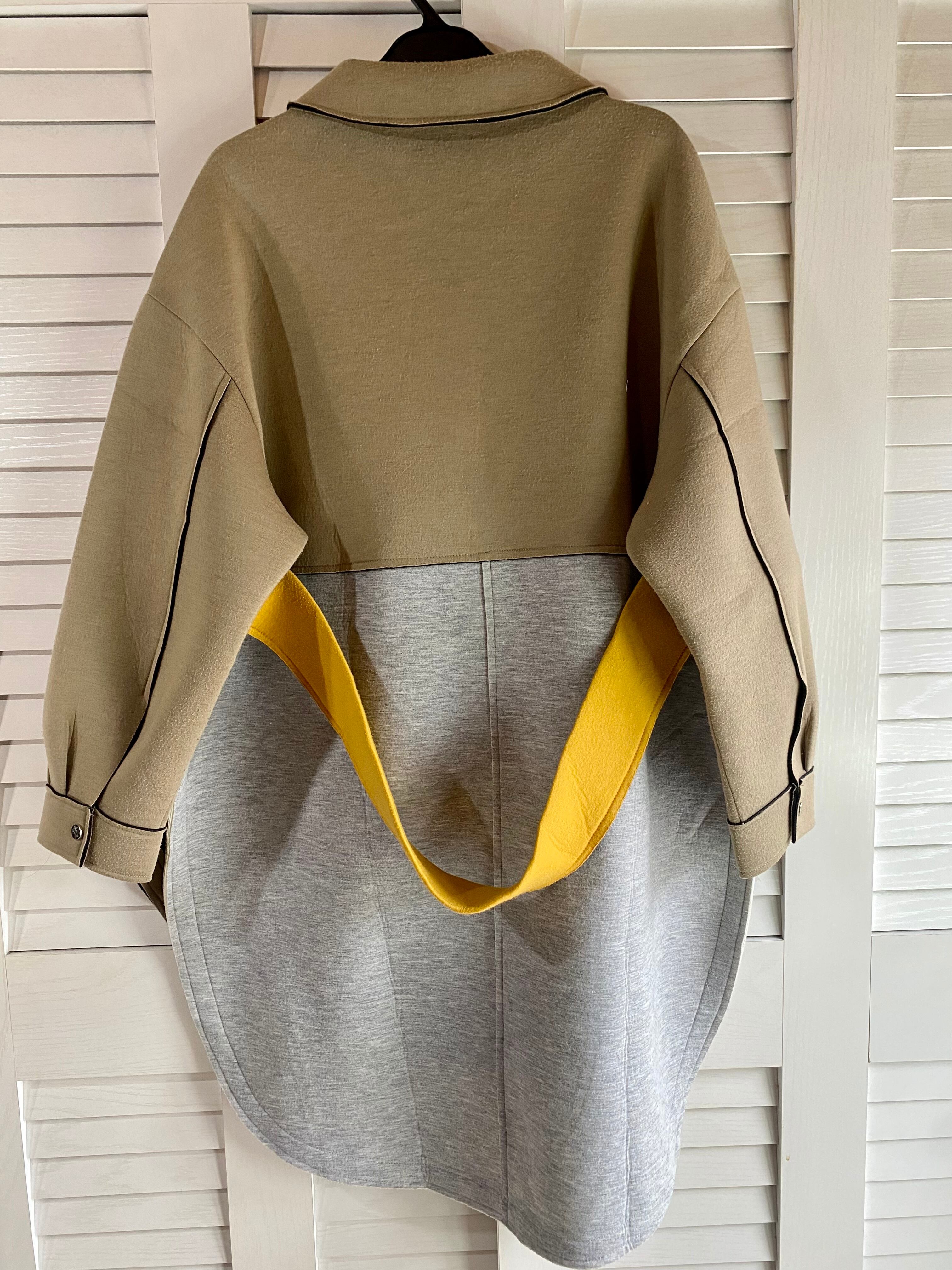#123 Eimee Law バイカラー ボンディングシャツコート ベージュ×ライトグレー
