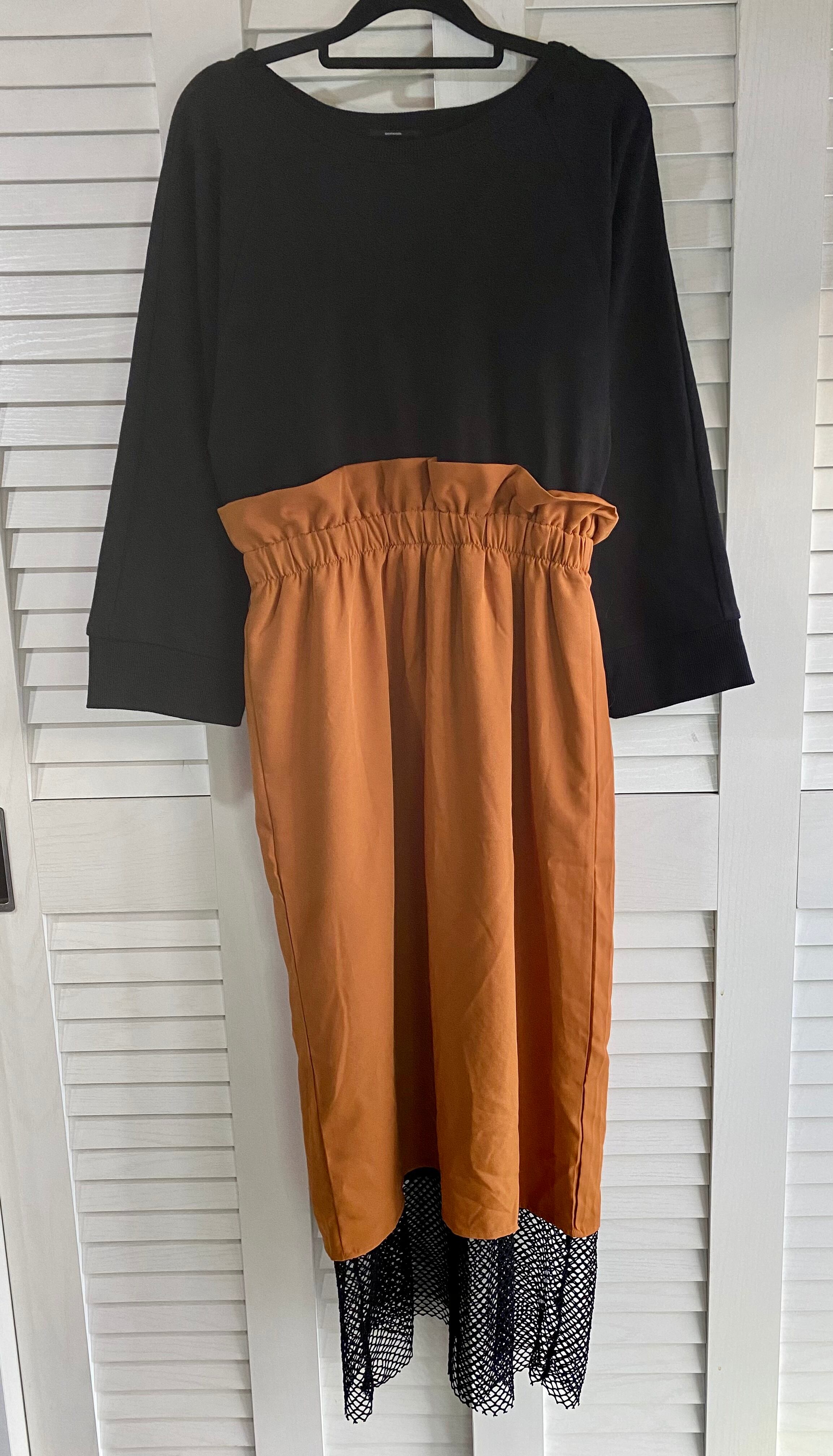 #124 OSMOSIS スウェットコンビ メッシュレイヤードスカートワンピ テラコッタ×ブラック