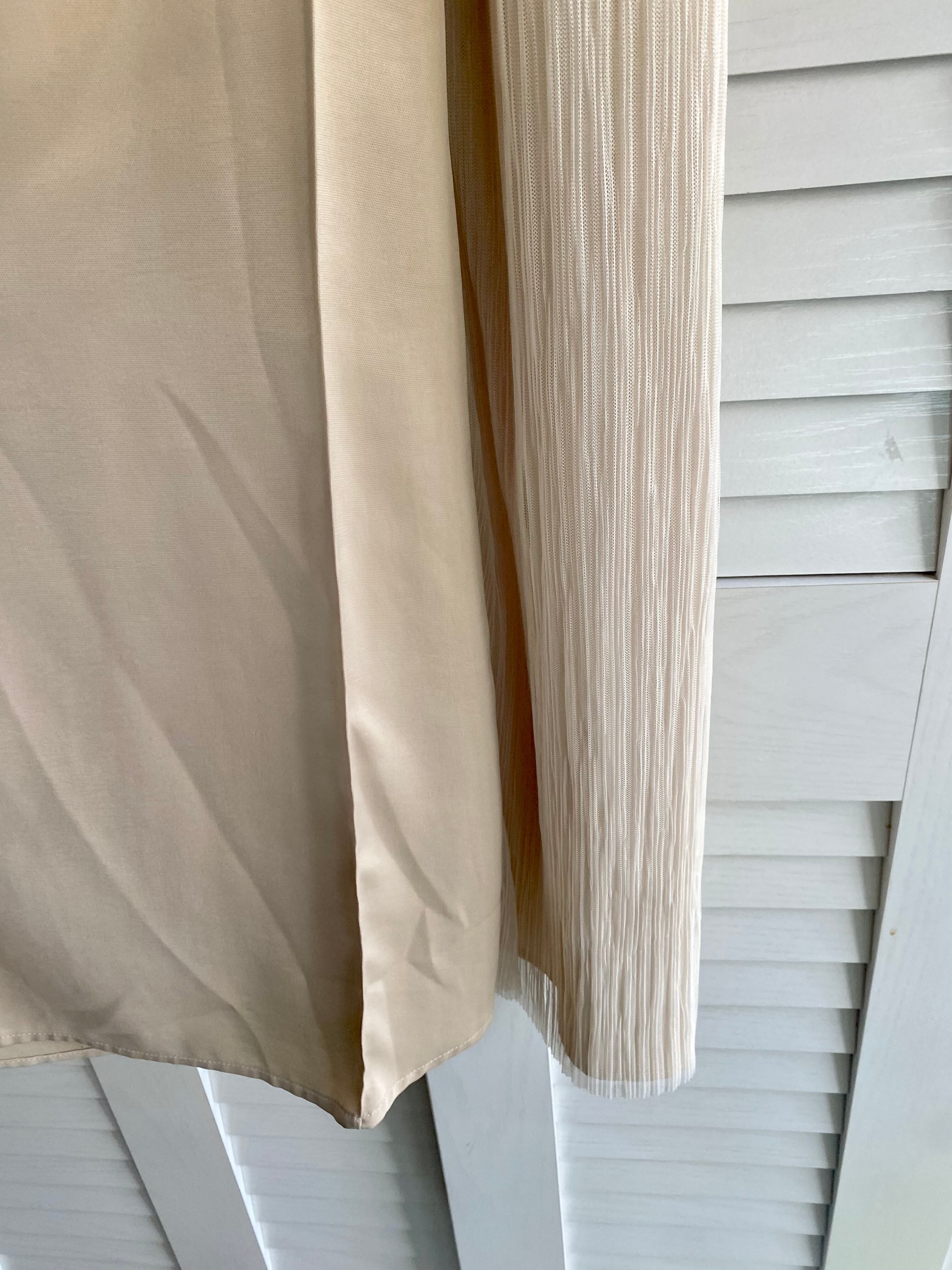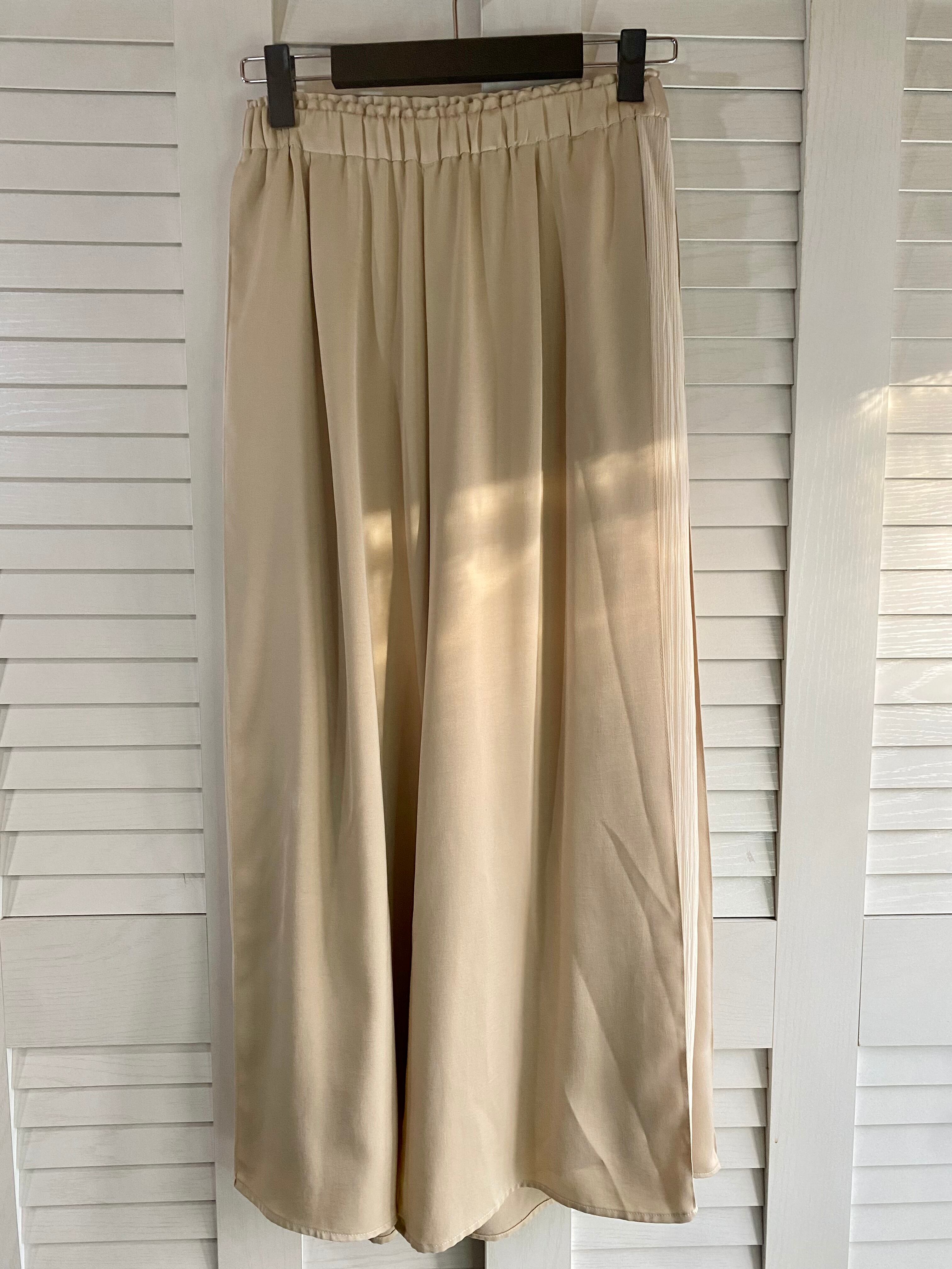 #124 Eimee law プリーツメッシュ切り替え ルーズワイドパンツ クリームベージュ