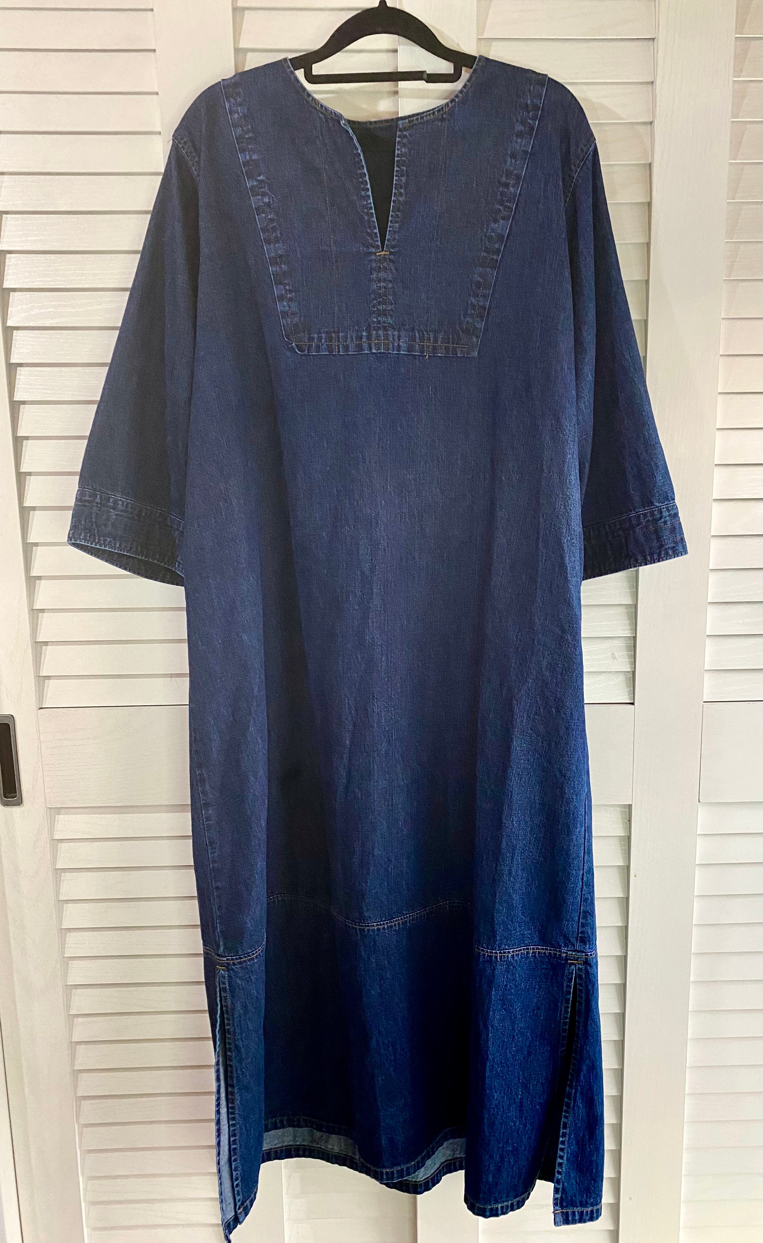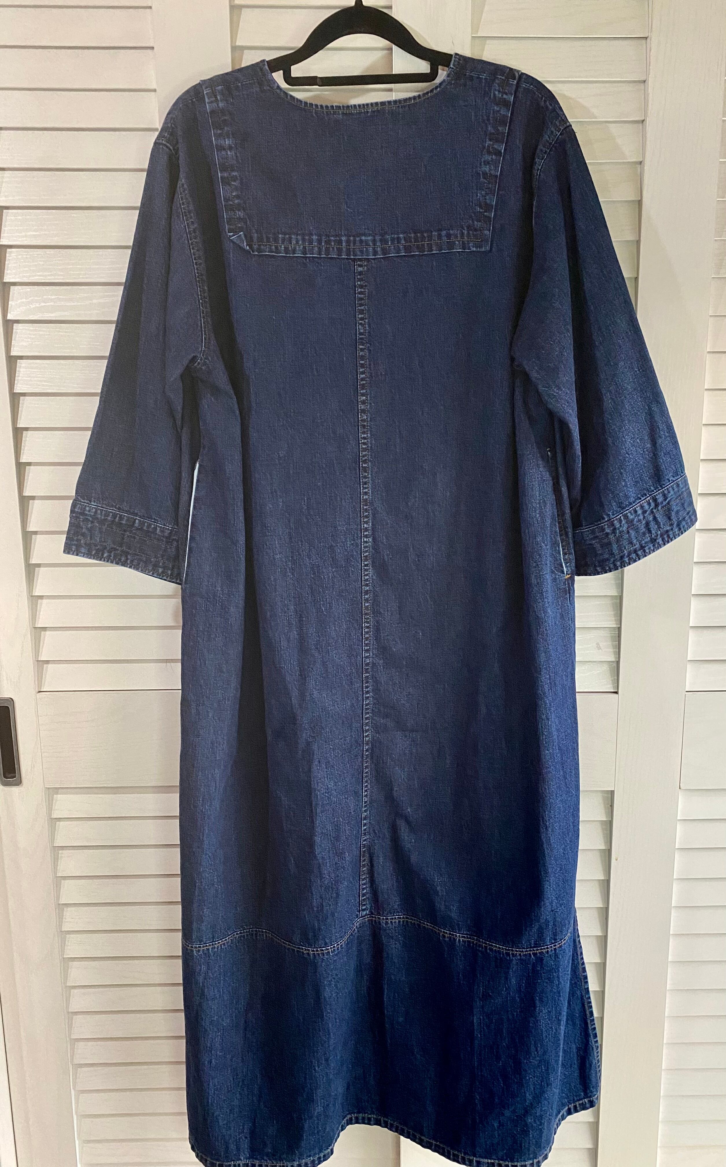 #125【デザインサンプル】インディゴデニム デザインオーバーサイズロングワンピ ネイビー