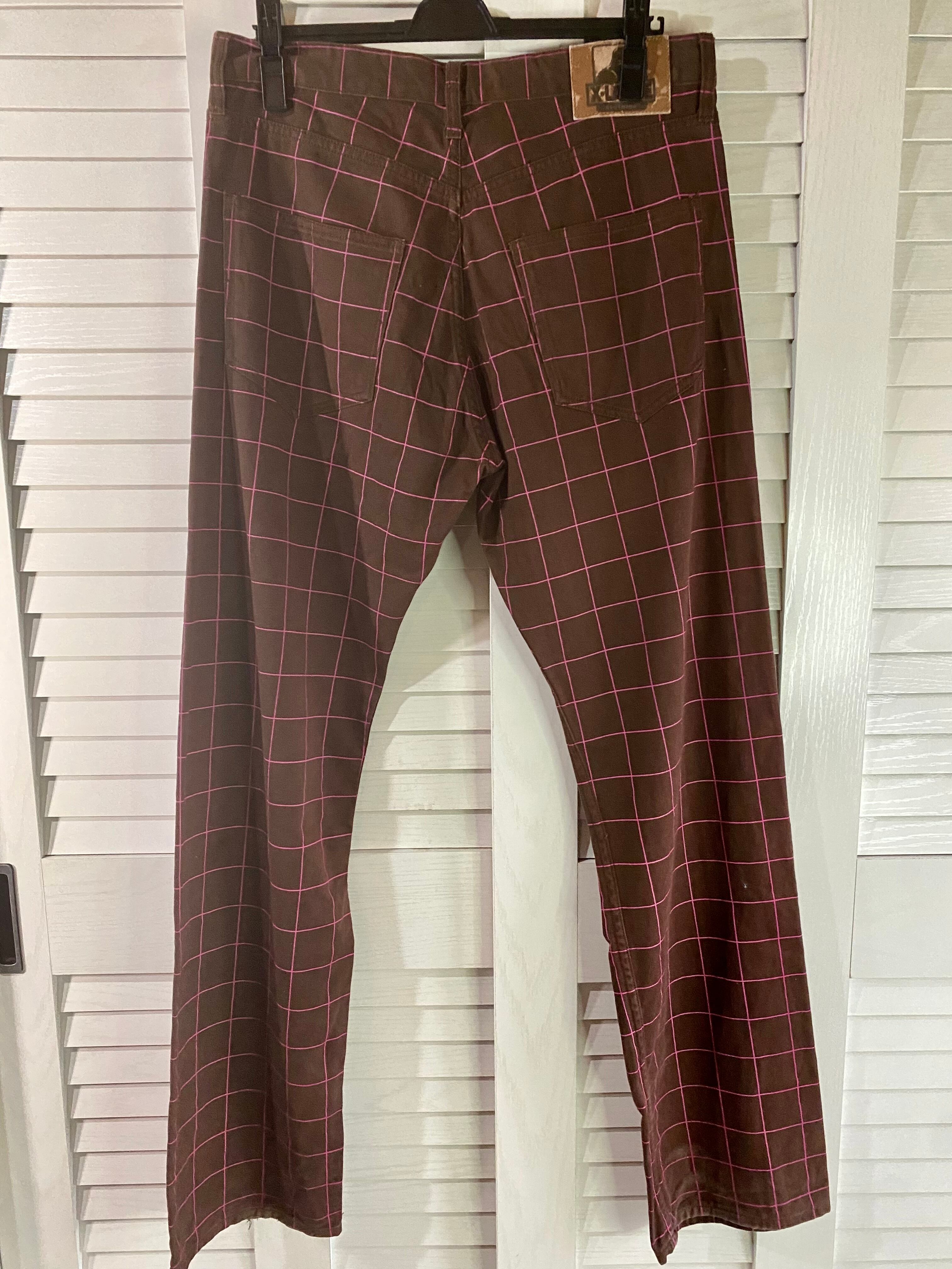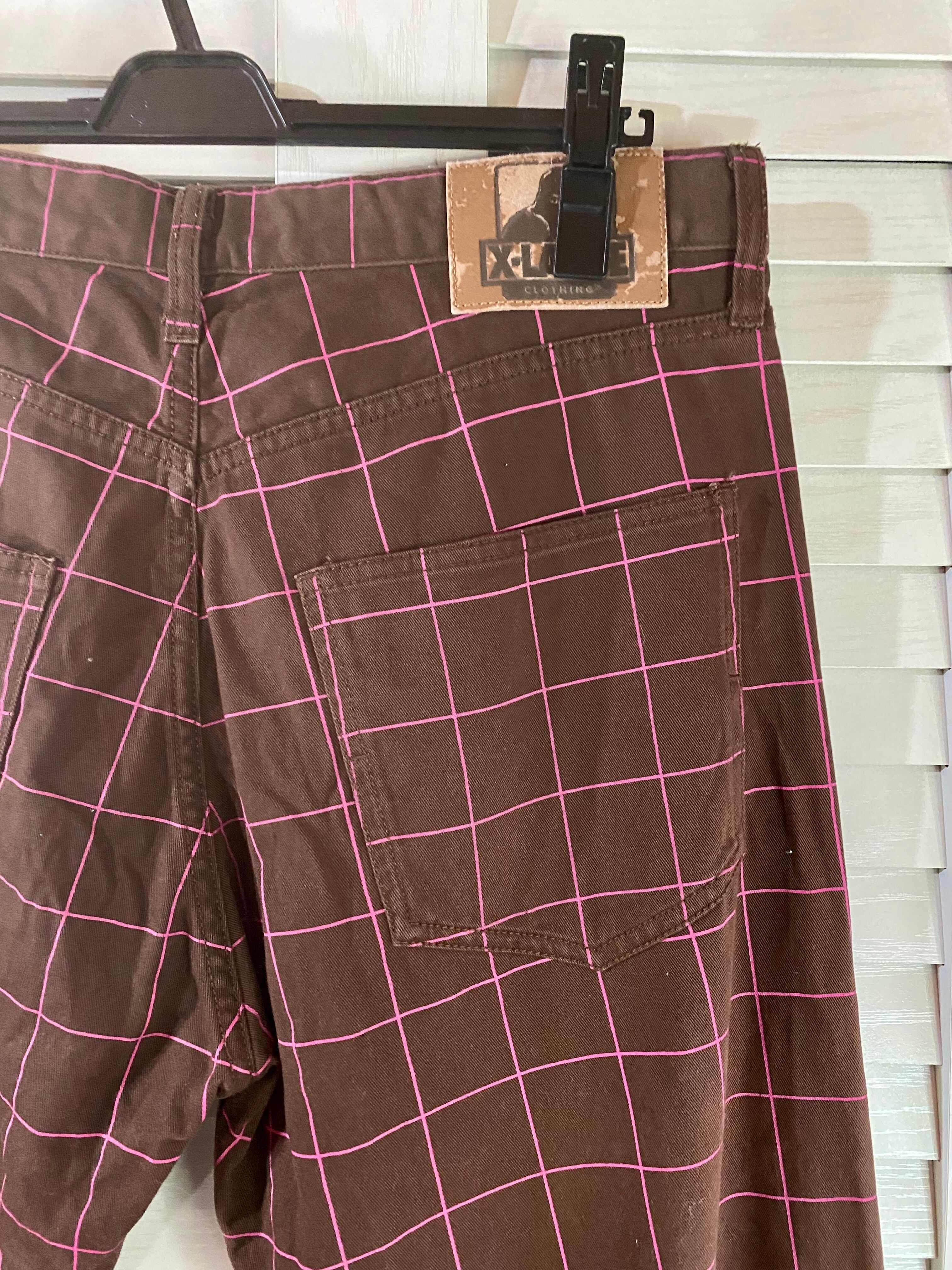 #126 X-LARGE ペンシルチェック ストレッチコットン ストレートパンツ ブラウン