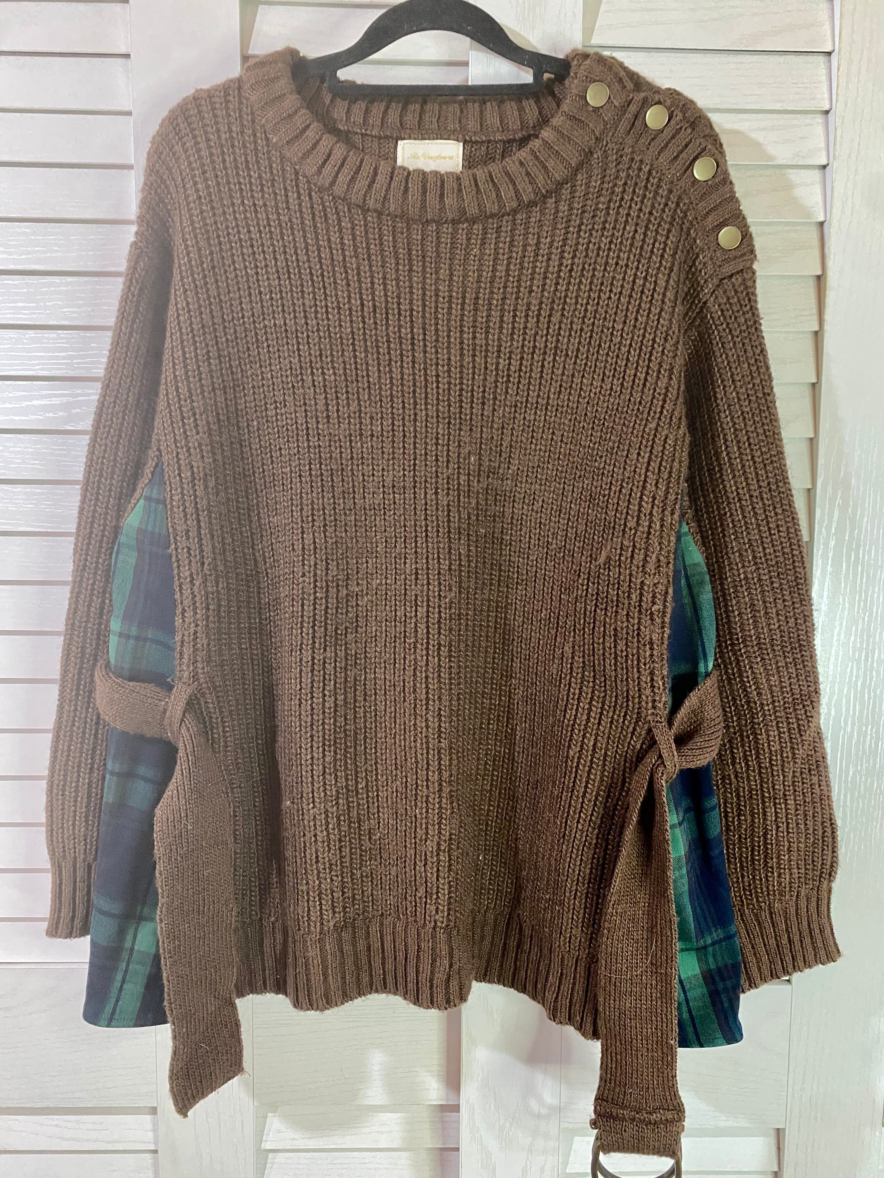 専用◎#126 Re.Verofonna フランネルチェックドッキング アクリルウールニットセーター ブラウン