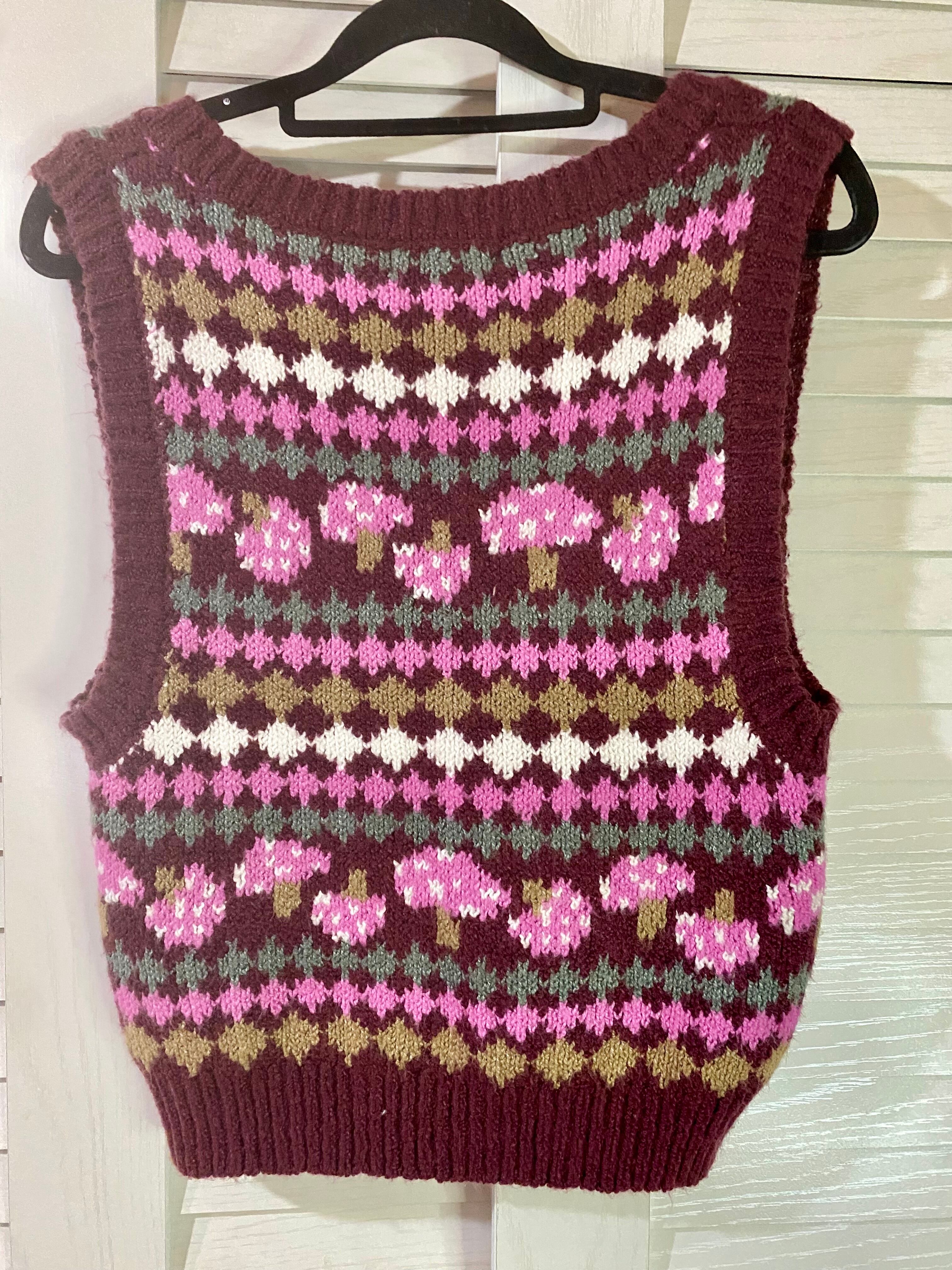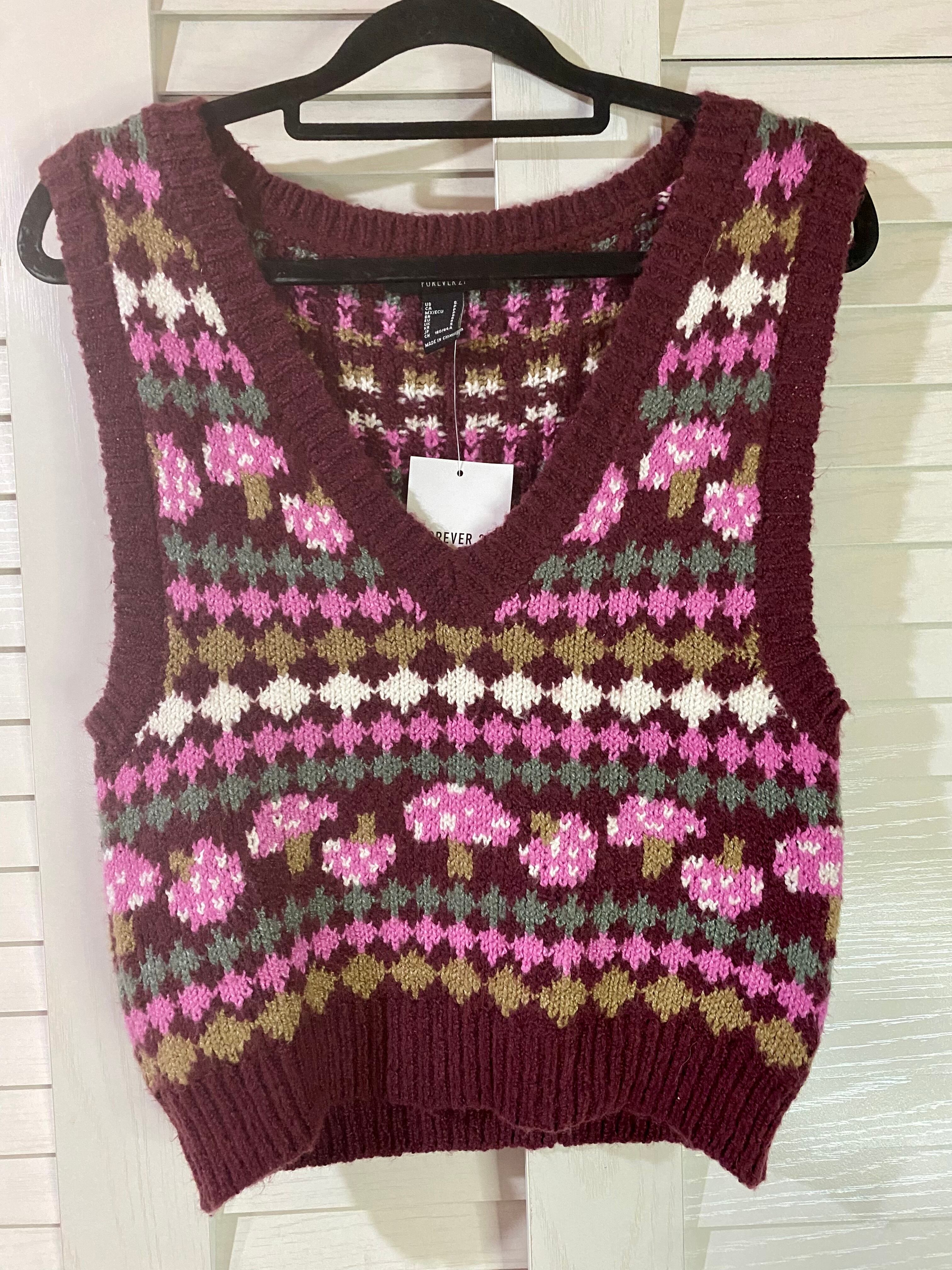 #127 Forever21 キノコジャガードニットベスト エンジ