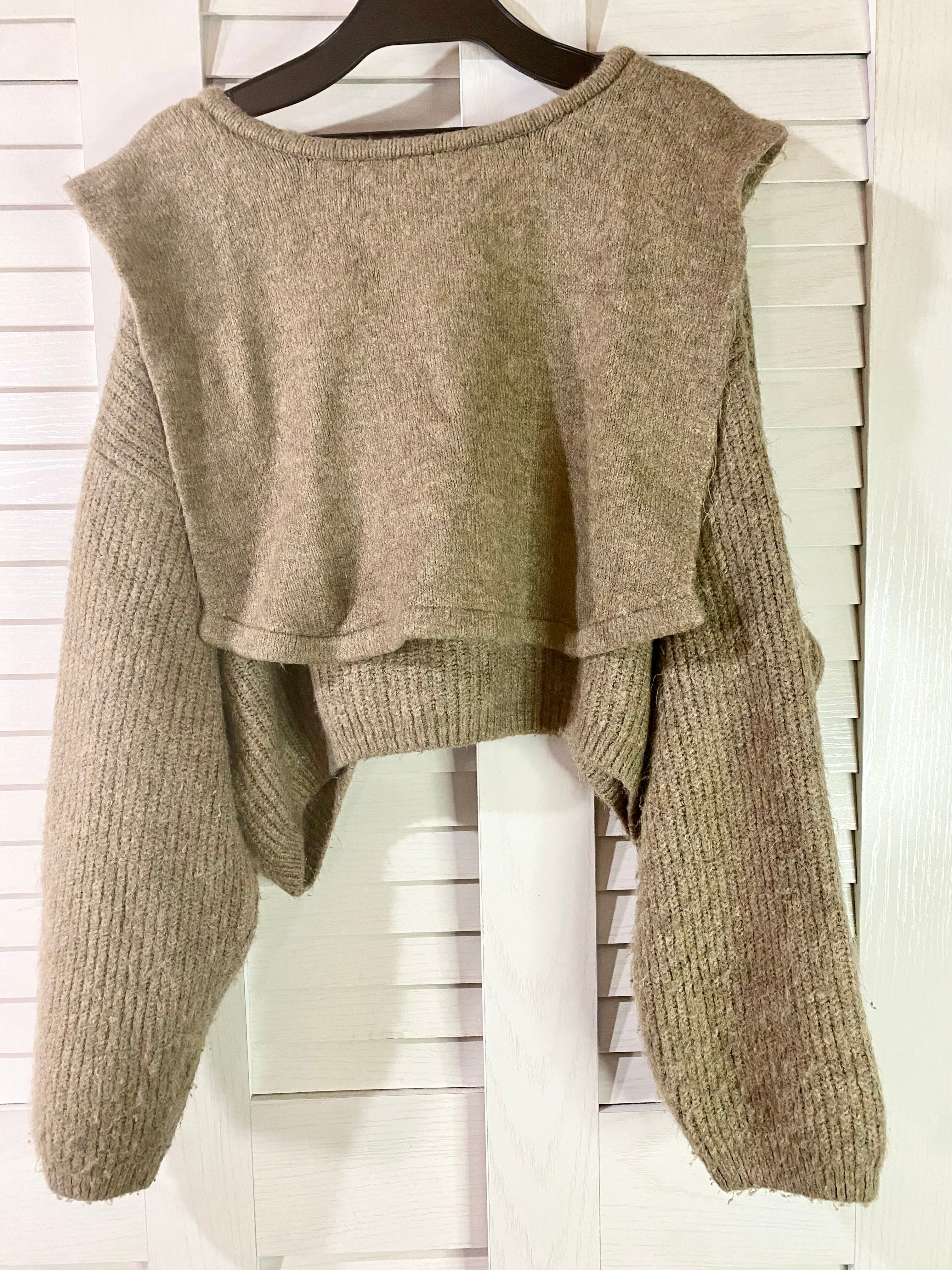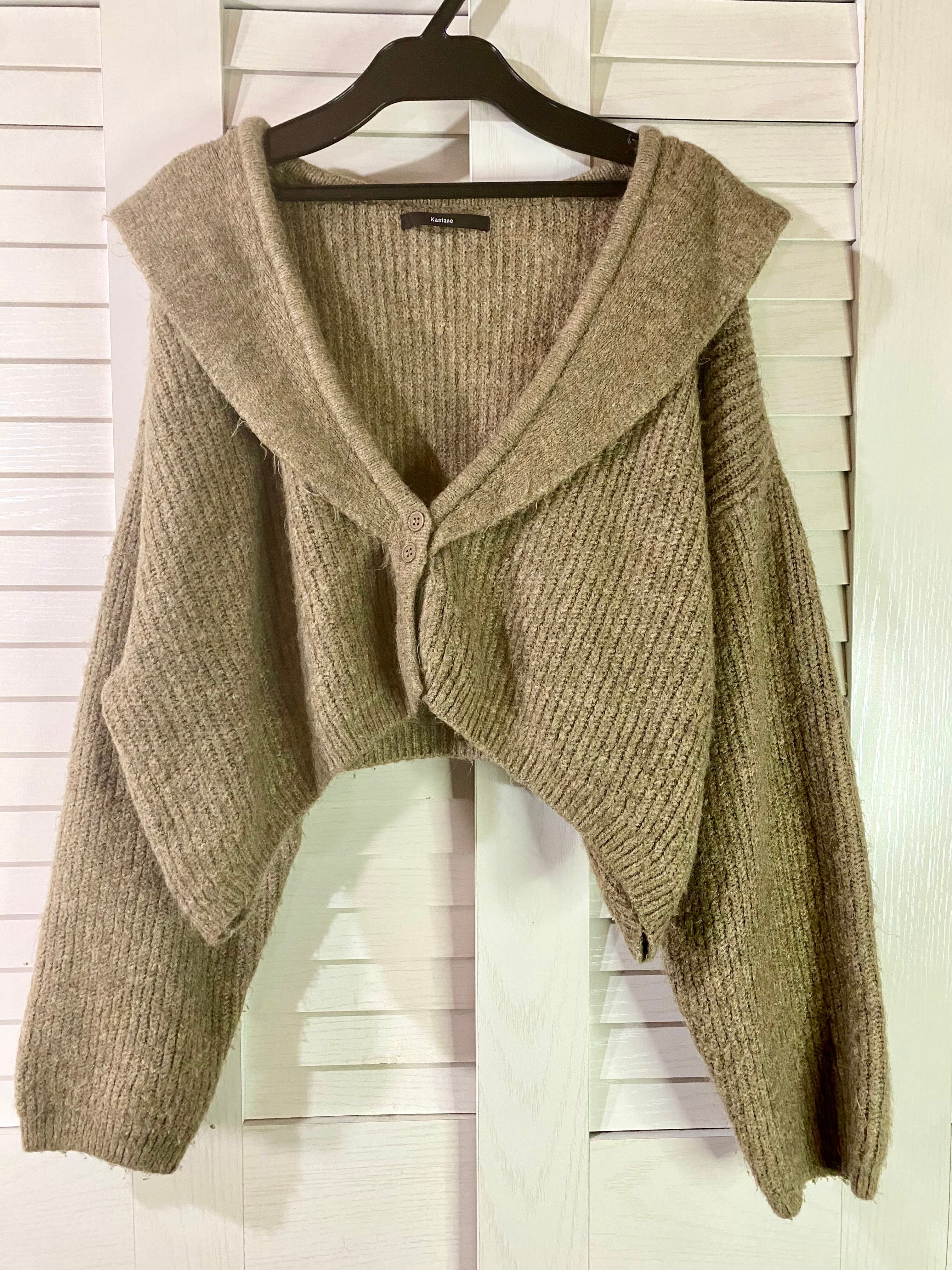 #128 kastane セーラーカラーオーバーサイズ アクリルニット ショート丈カーデ モカベージュ