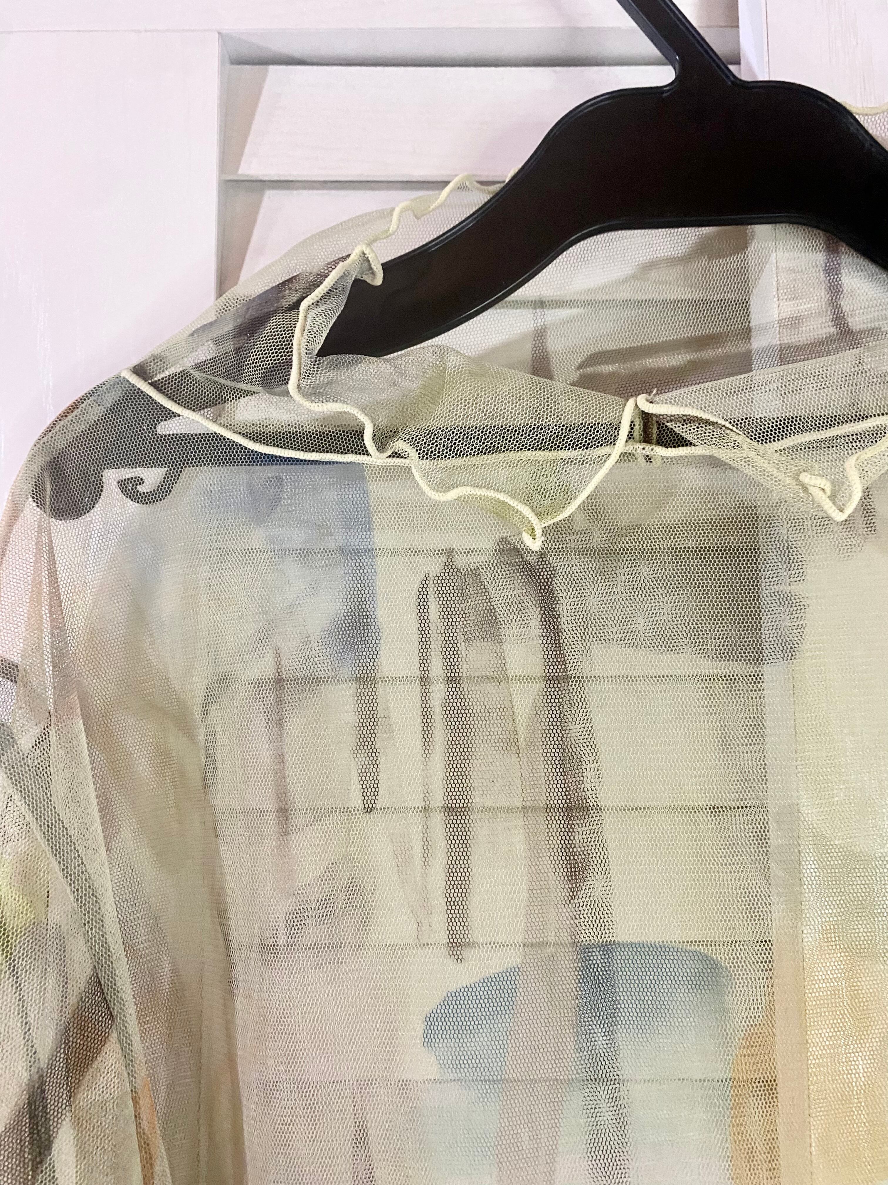 #131 Eimee Law メロウ加工メッシュジオメトリックプルオーバーブラウス モスグリーン