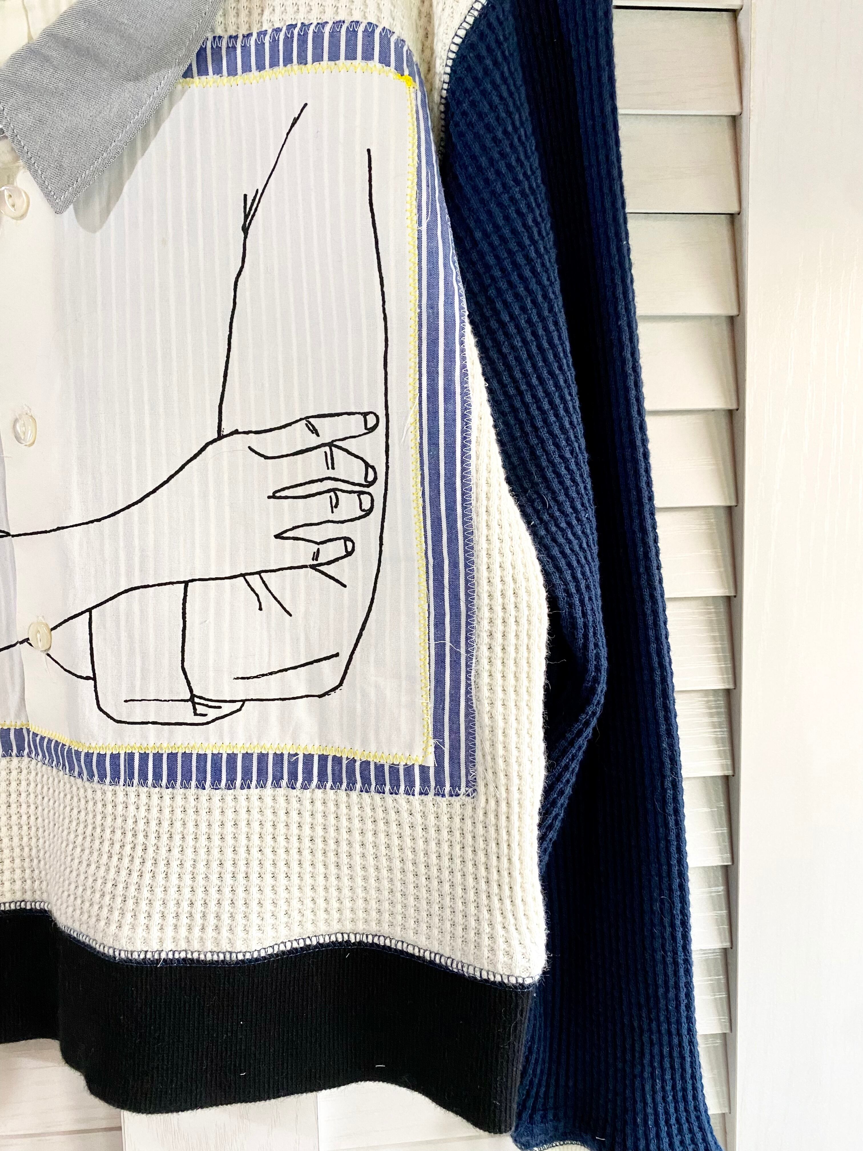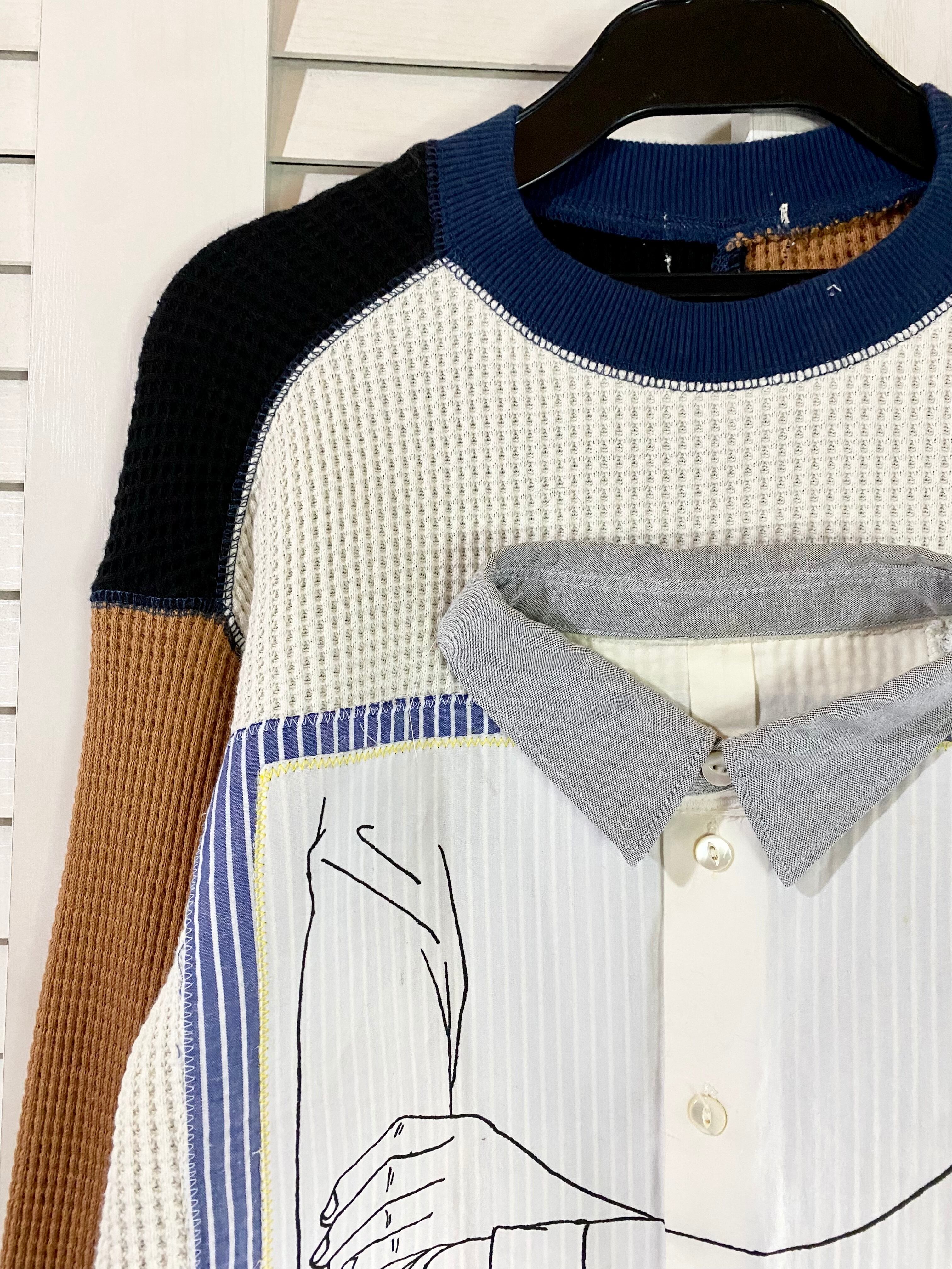 #132【リメイク祭り第五弾】リメイク一点物 ミニシャツパッチド プルオーバートップス マルチ