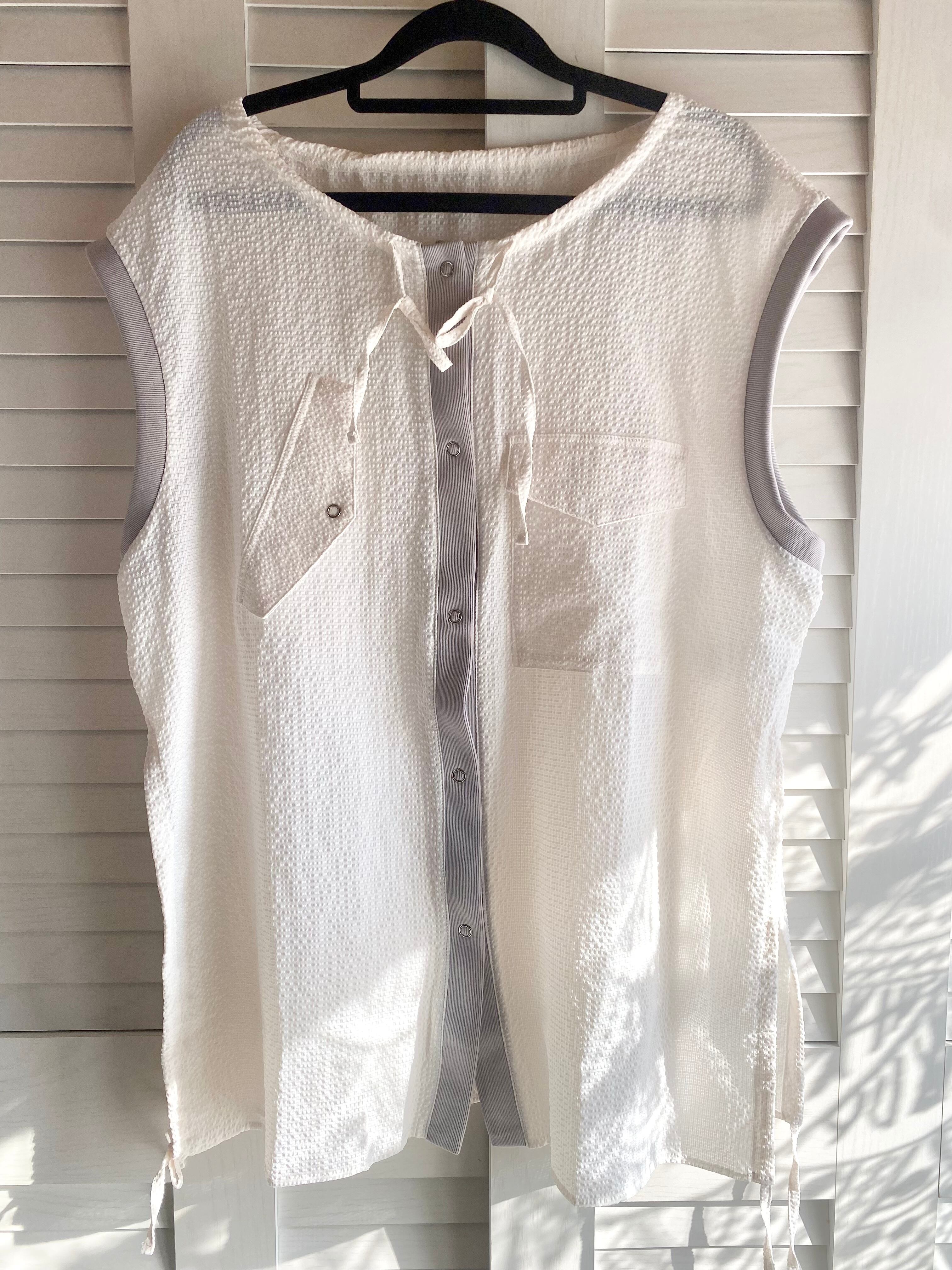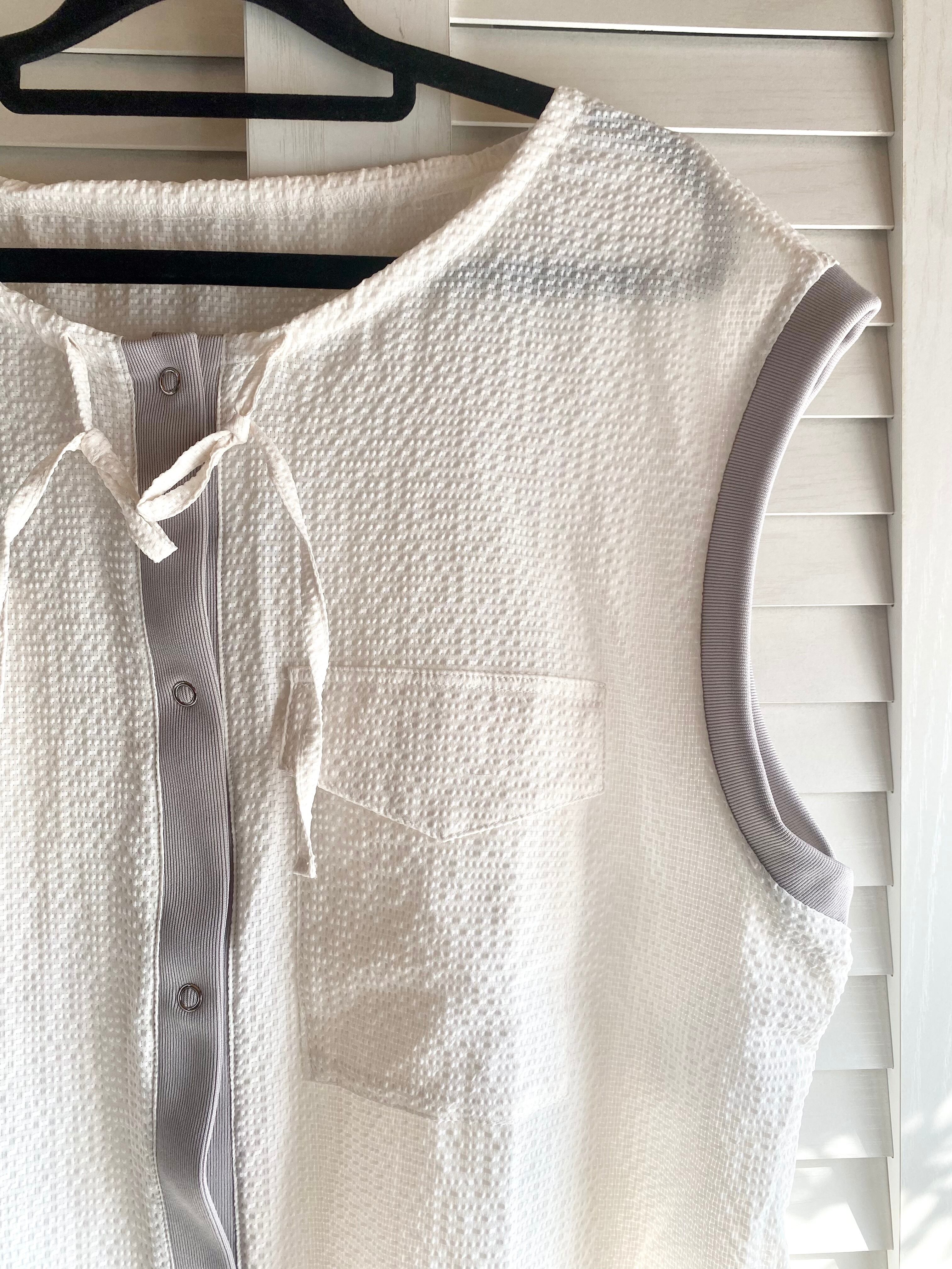 #133 Eimee Law フクレジャガードチェック ノースリーブデザインブラウスベスト アイボリー