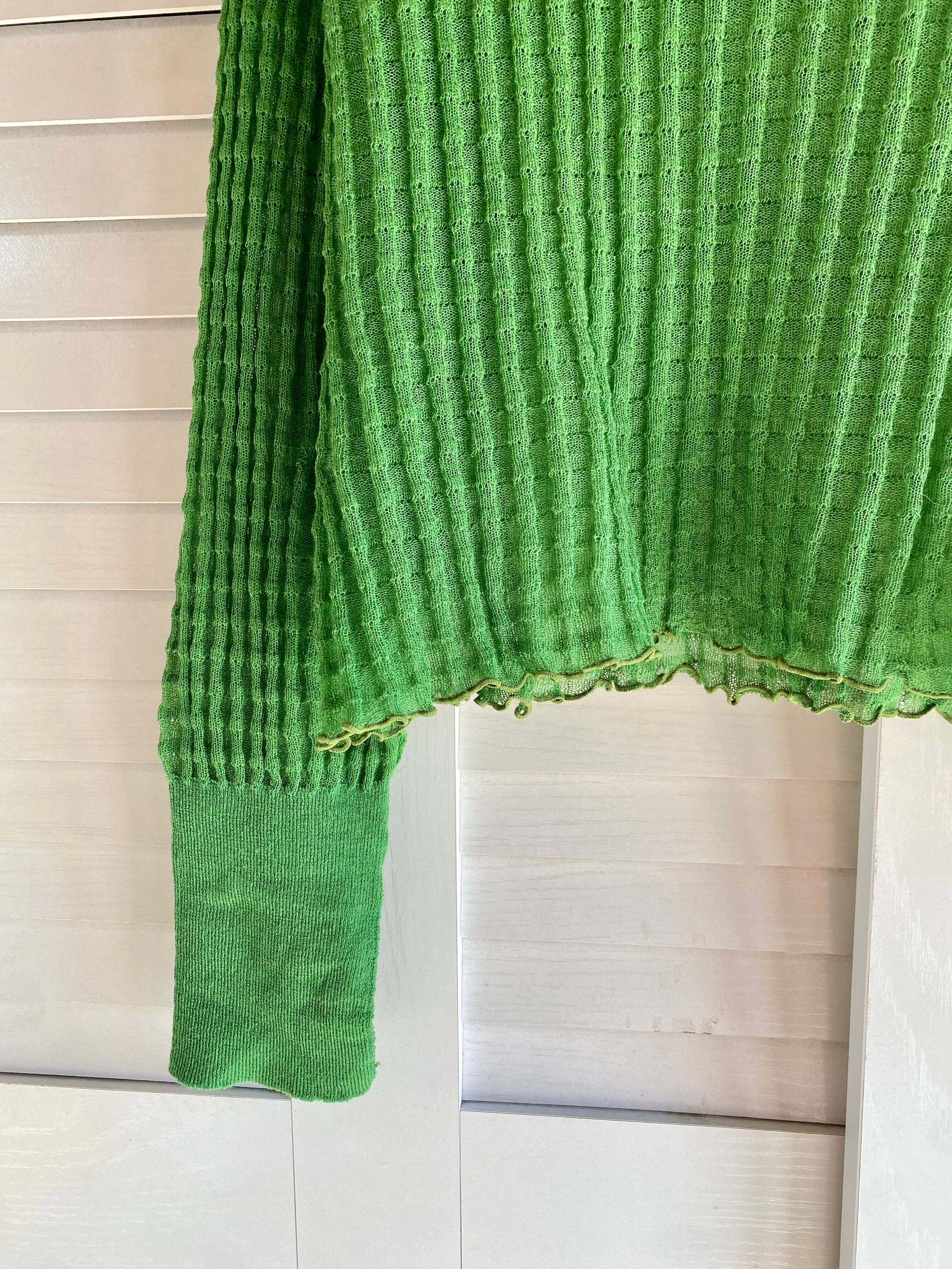 #134 kastane メロウ加工 チェック織柄シアーニット キミドリ | お洋服屋さん 『GOKKO』
