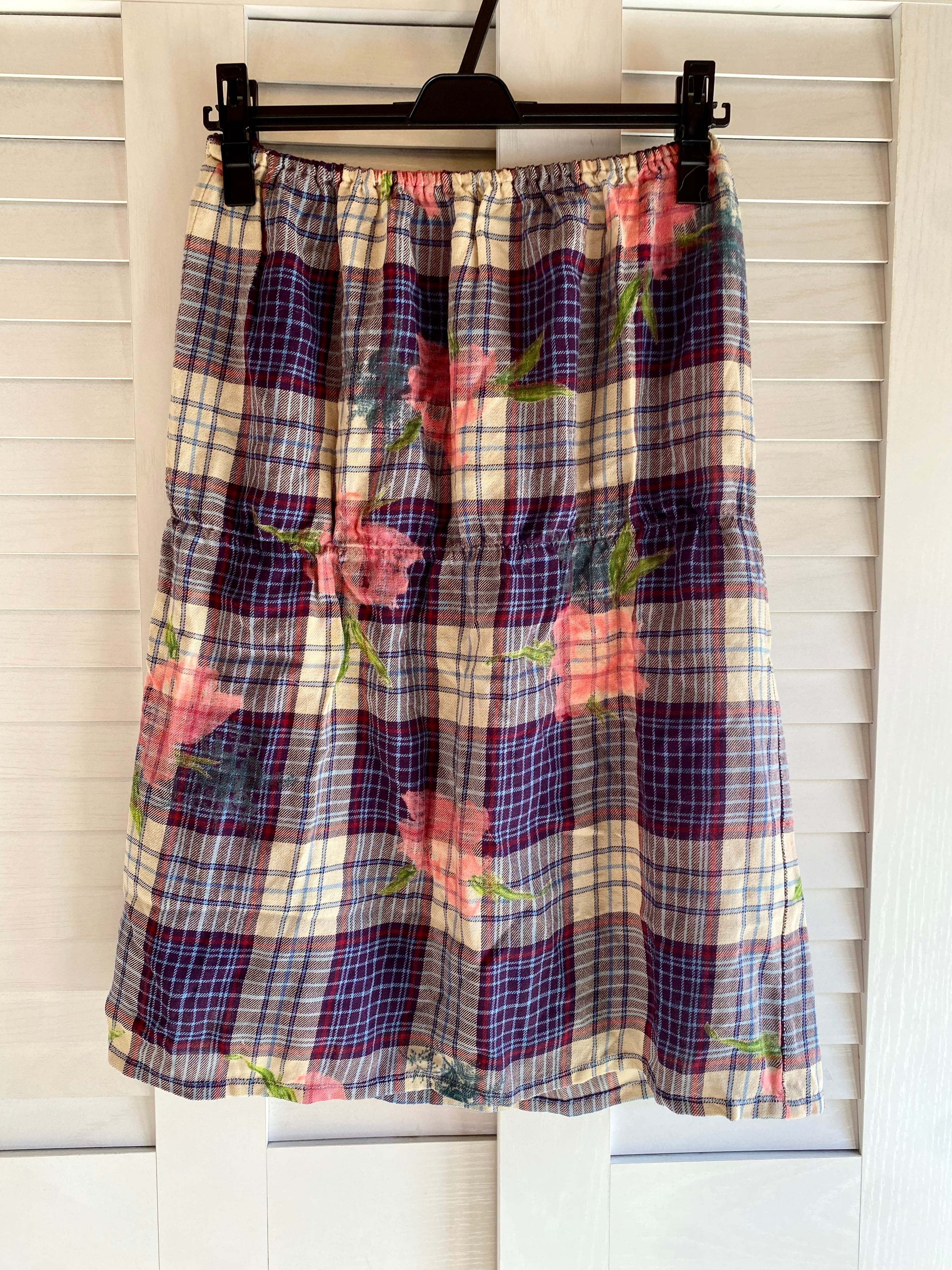 #134 SUNAOKUWAHARA フラワープリントタータンチェック ウールオーバースカート ライトベージュ