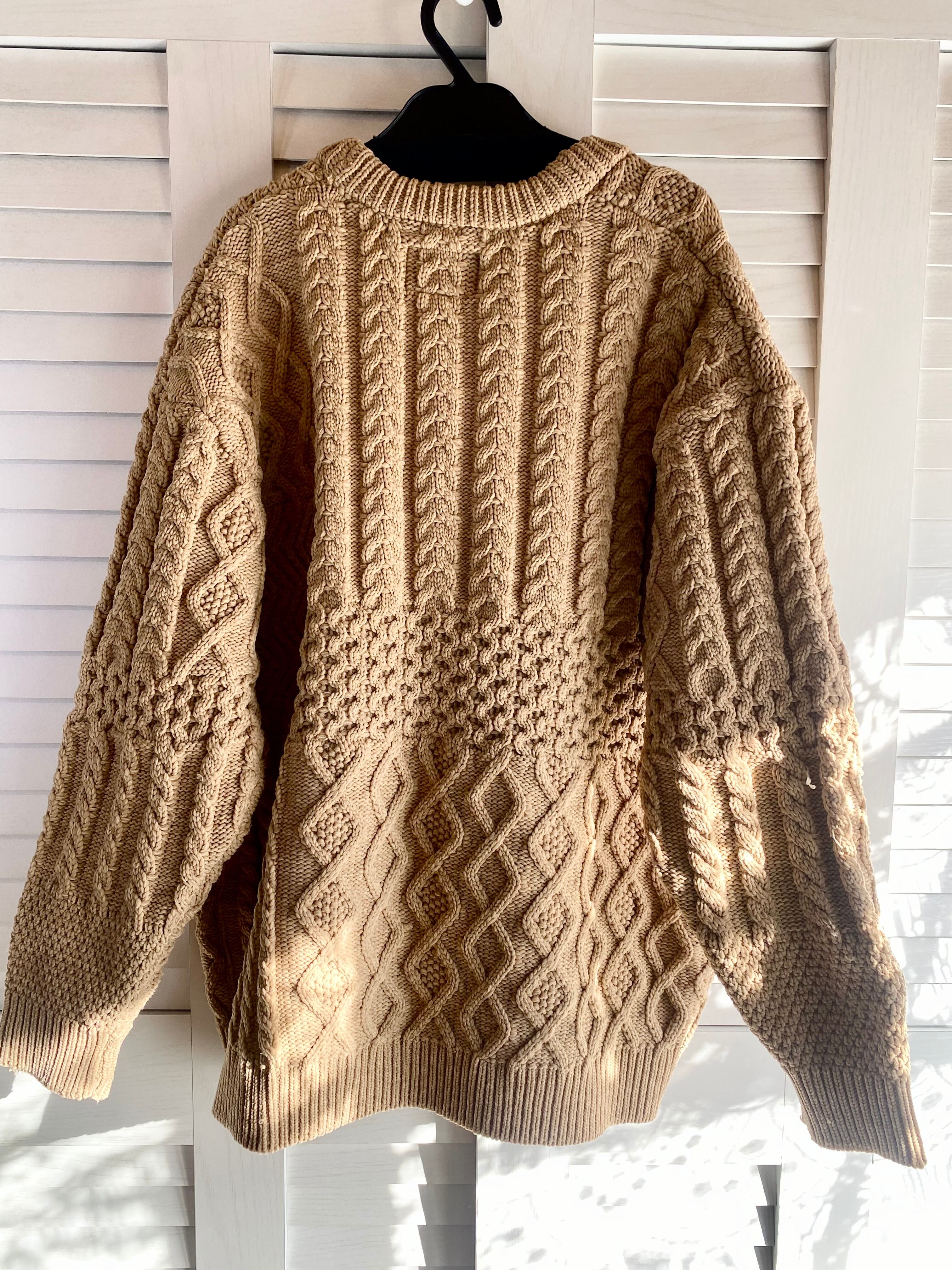 #135 ANTIBAL オーバーサイズ パターンパッチワークアラン模様ニットカーデ ベージュ