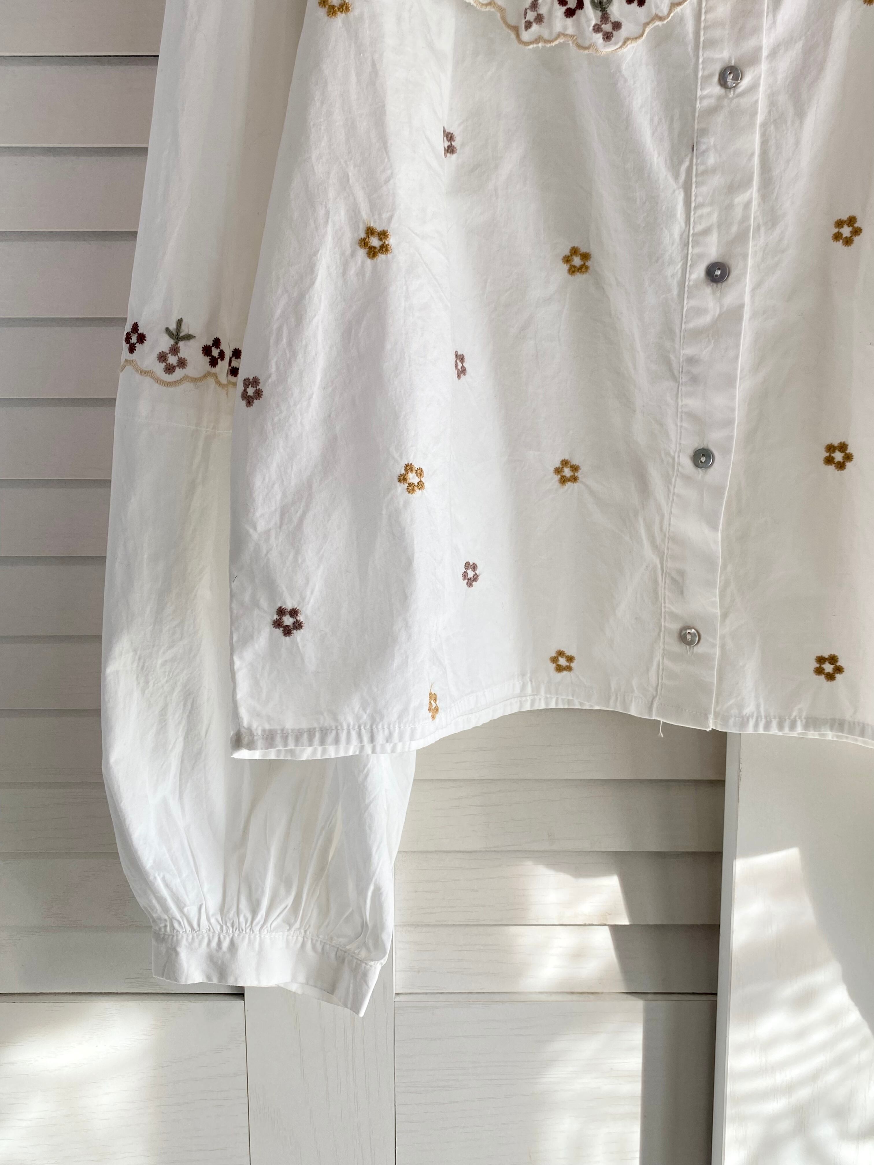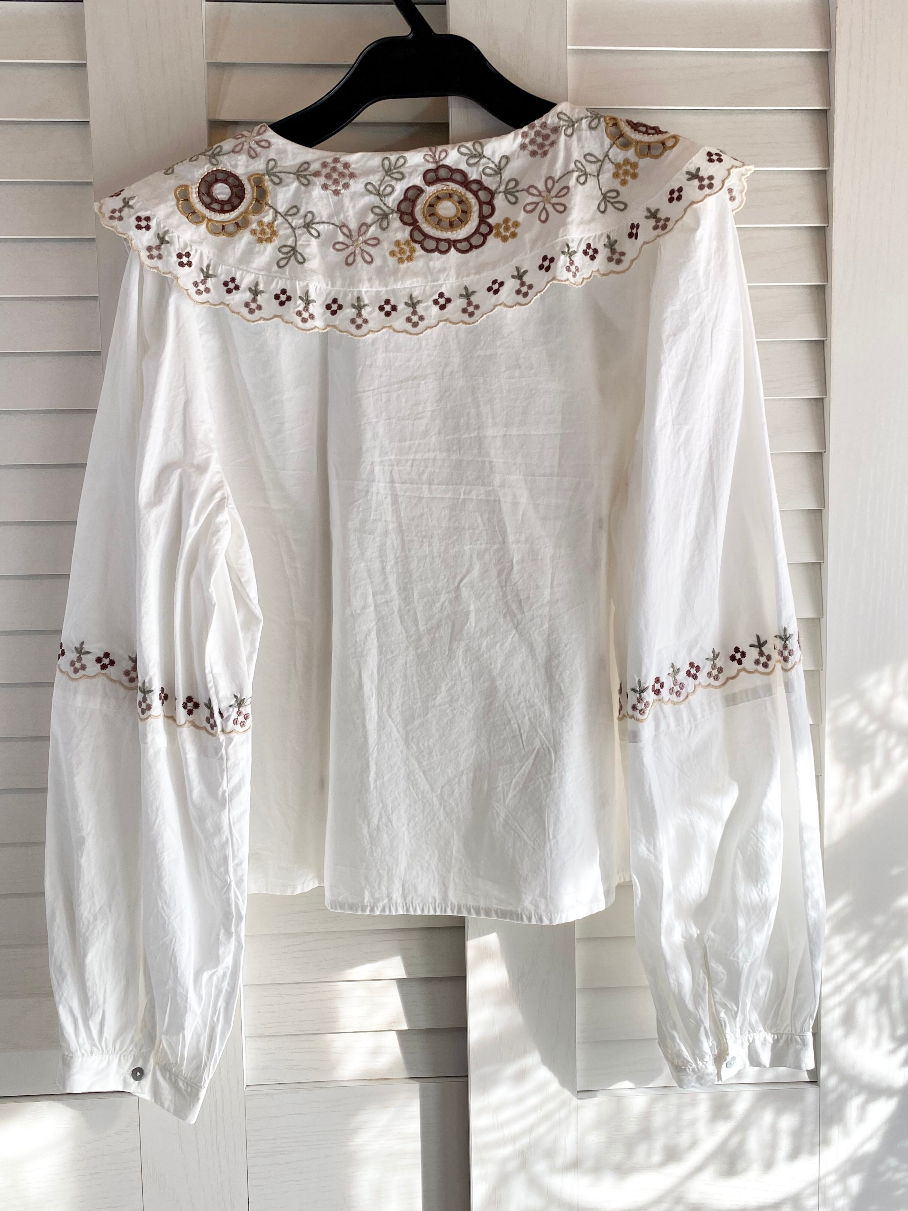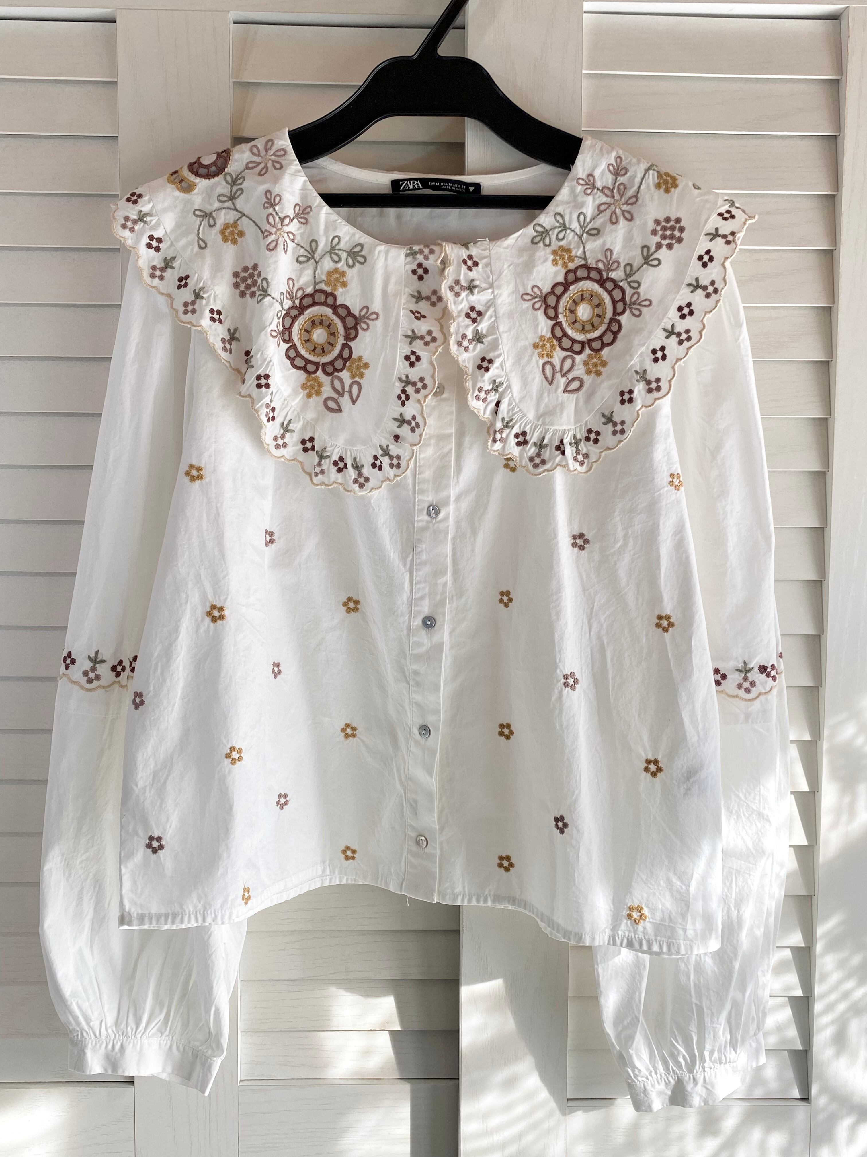 専用◎#137 ZARA BIGカラー 刺繍ボリュームスリーブショート丈ブラウス オフホワイト