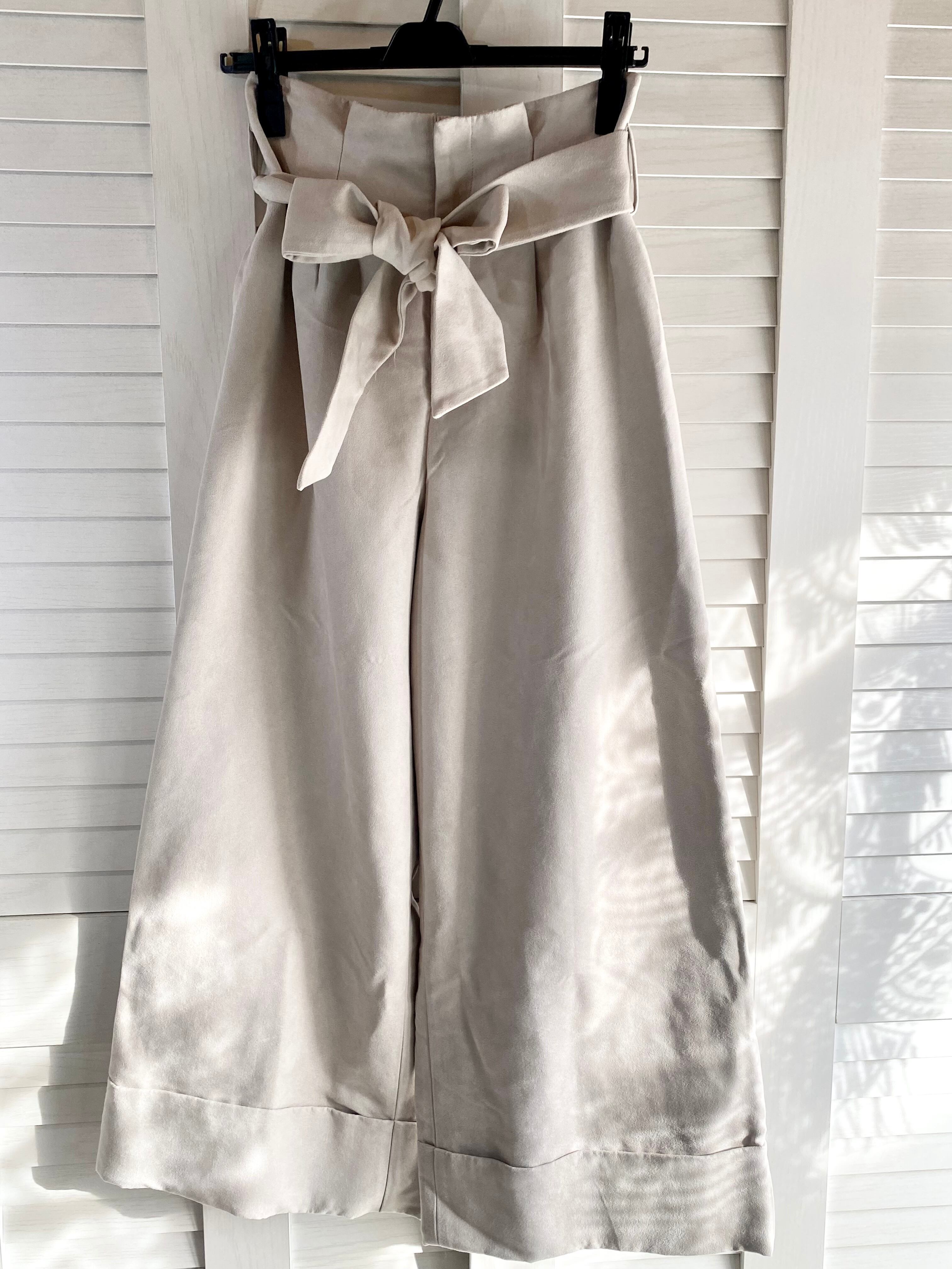 専用◎#137 SLY エコスウェード ハイウエスト ワンタックワイドパンツ ライトグレー