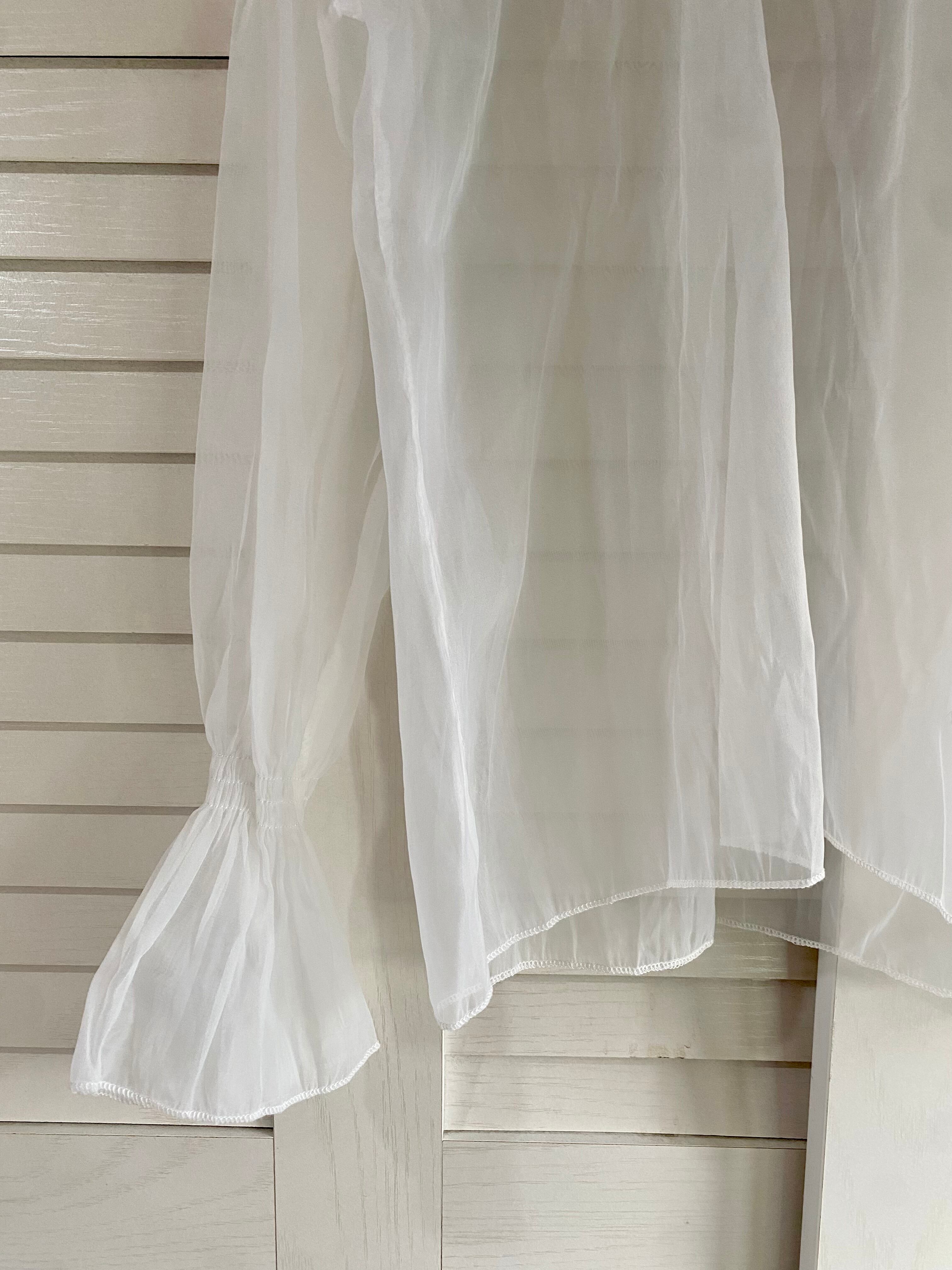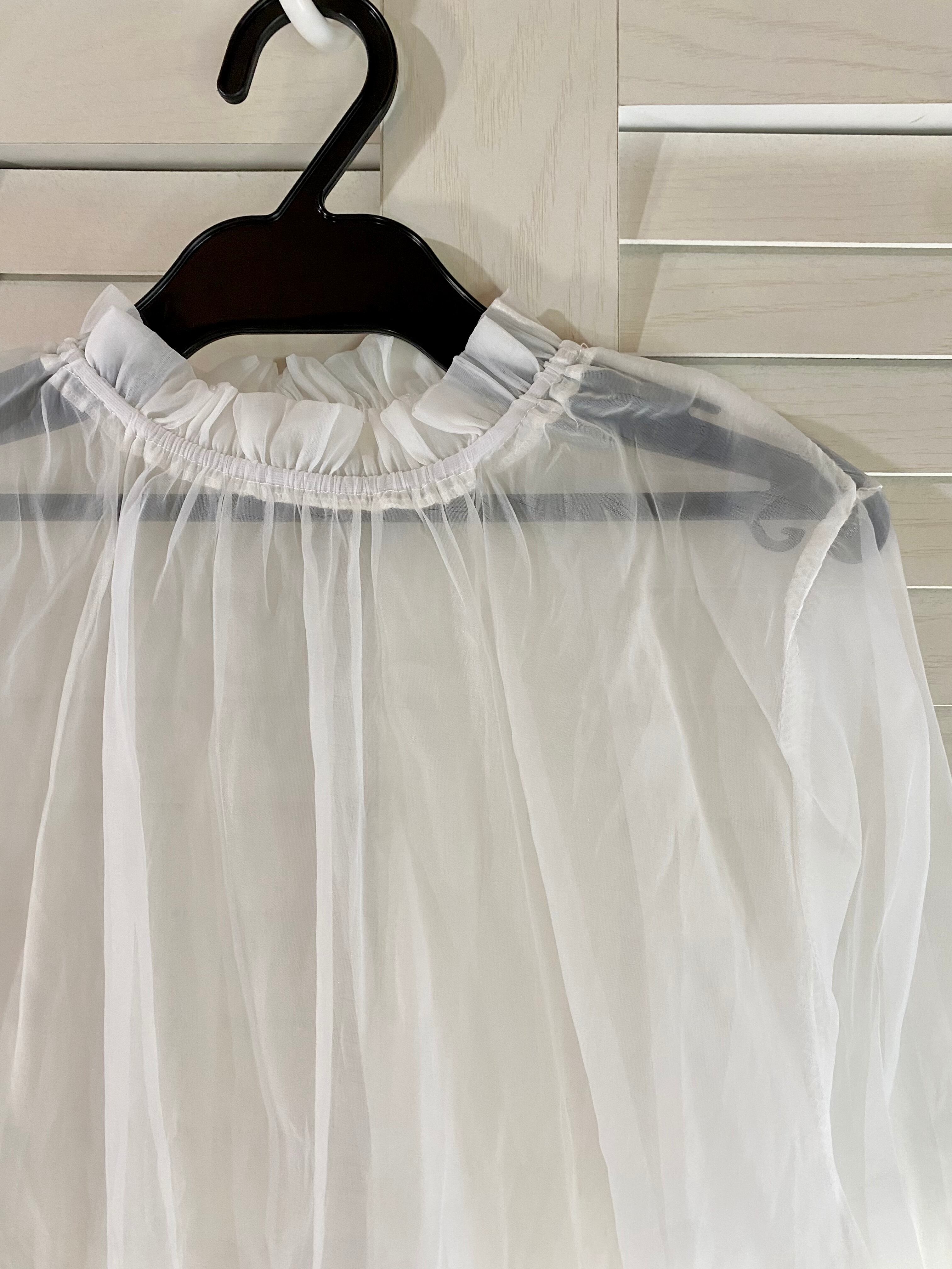 #142 DIAVEL シフォンオーガンジー フリルカラー キャンディースリーブシアーブラウス オフホワイト