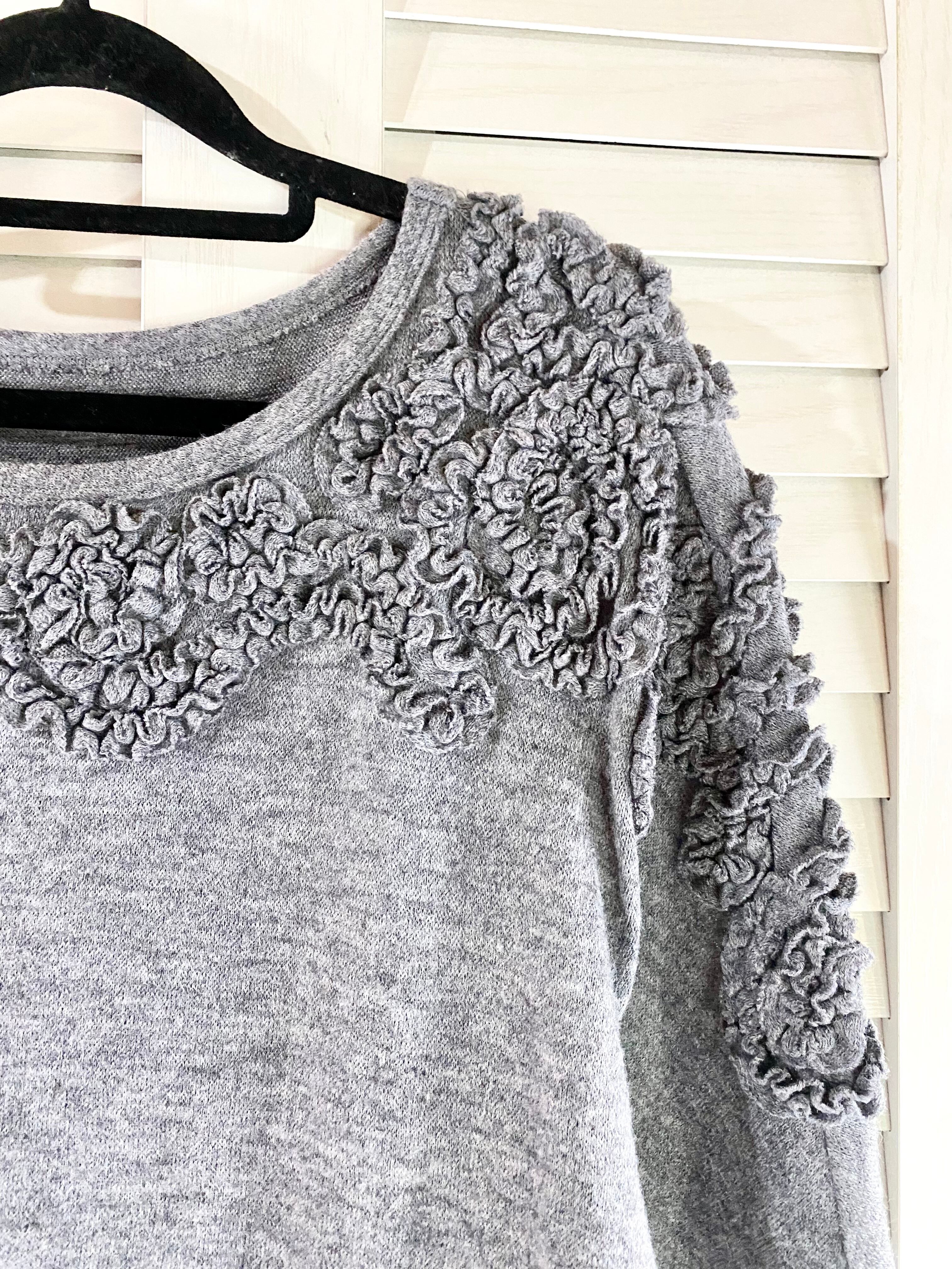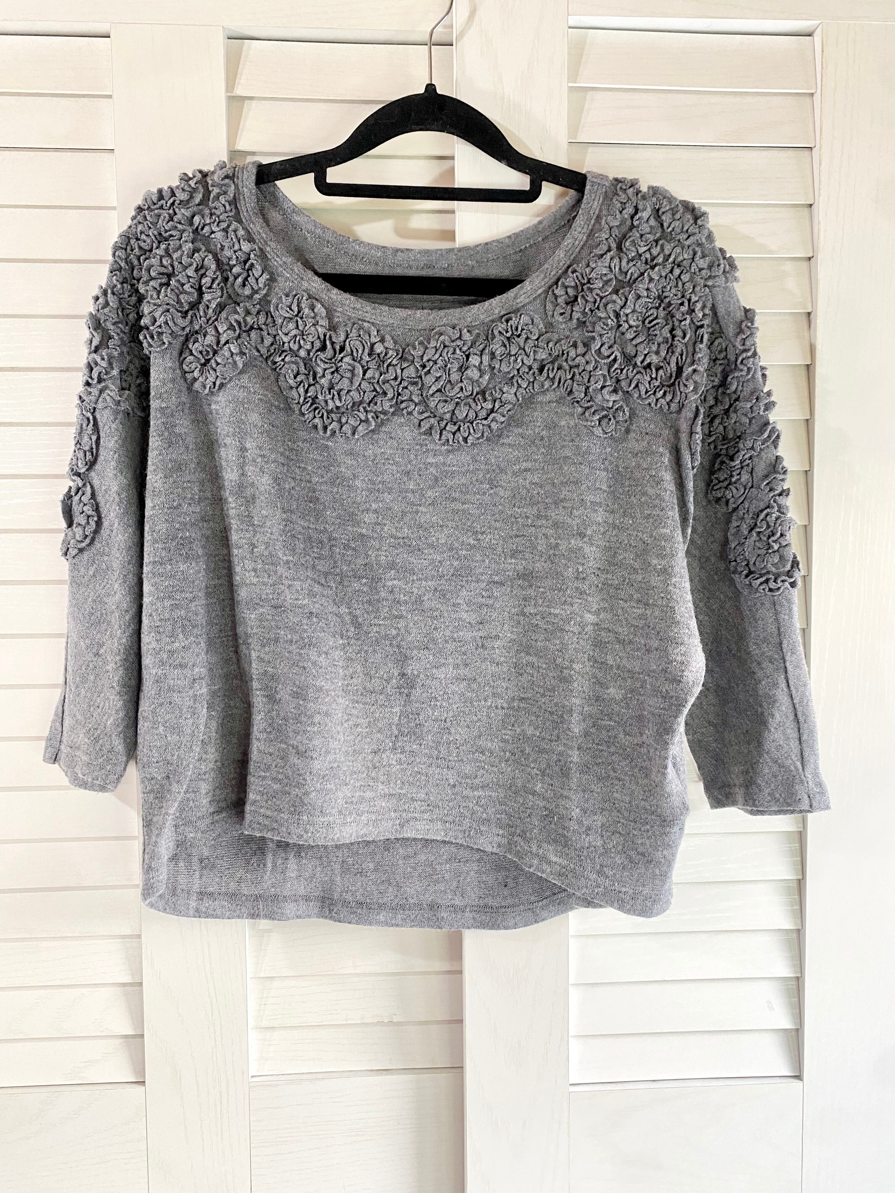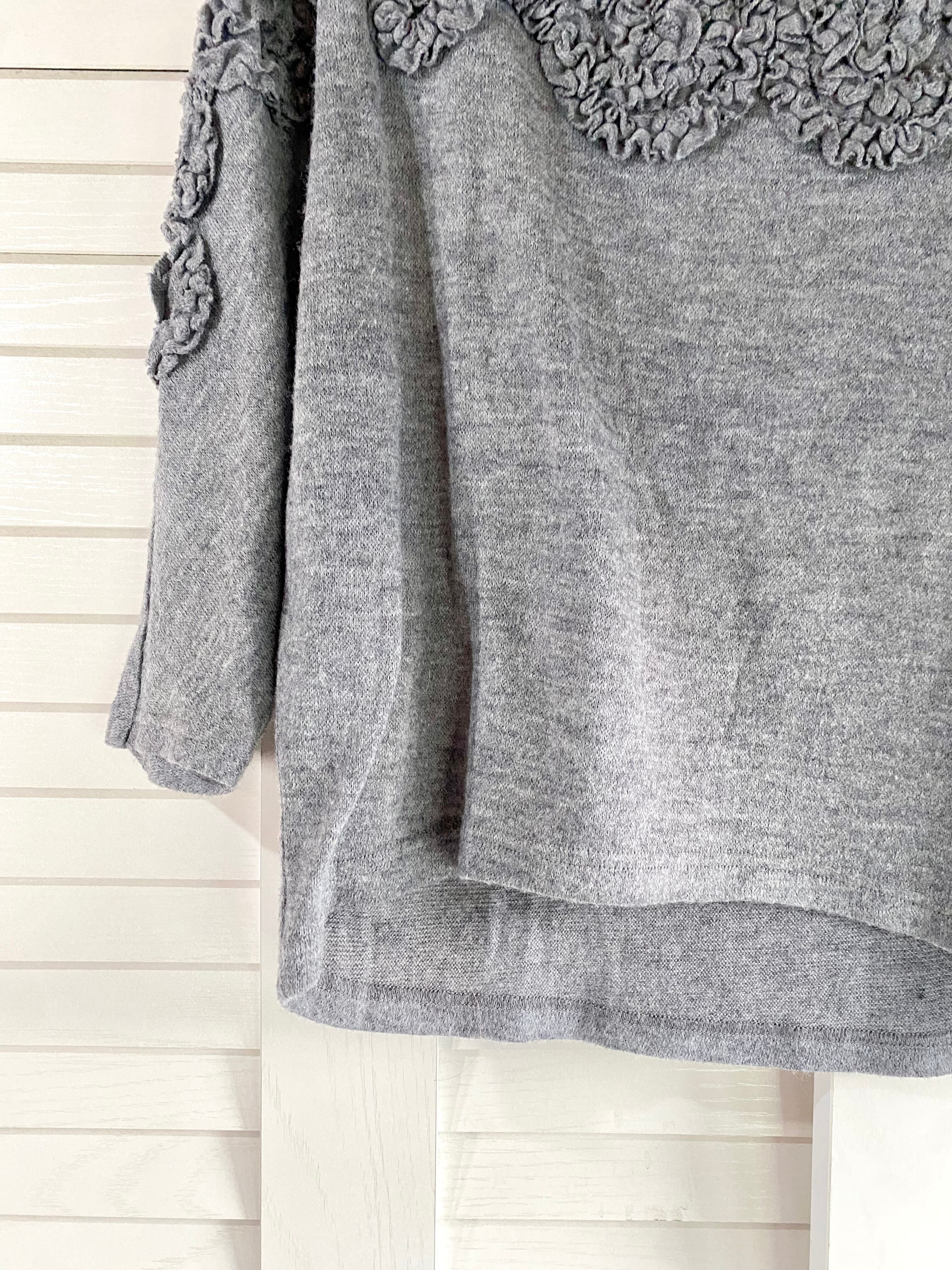 #142 GRACE CONTINENTAL スパゲッティフラワー ニットソープルオーバートップス グレー