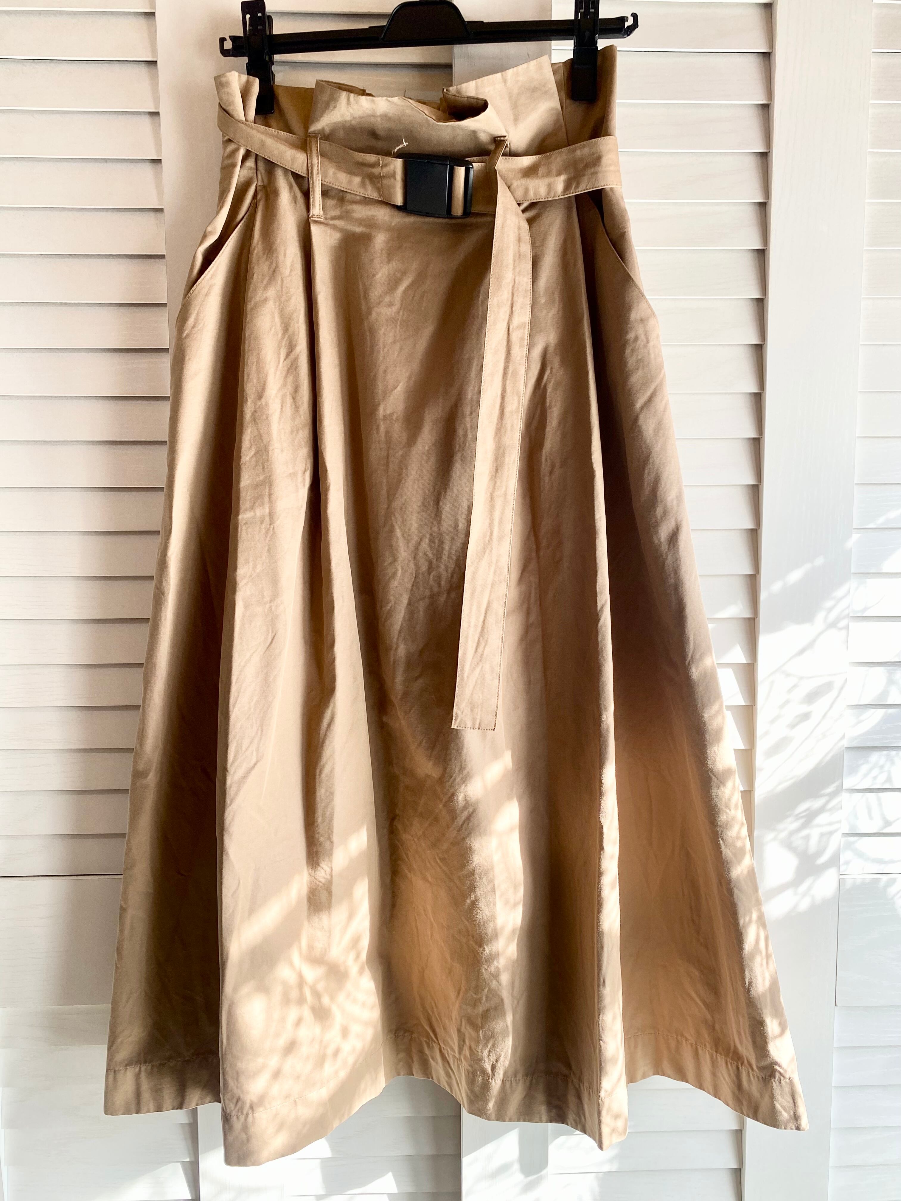 #142 JEANASIS ハイウェスト ガチャベル付き ツータックフレアースカート ベージュ