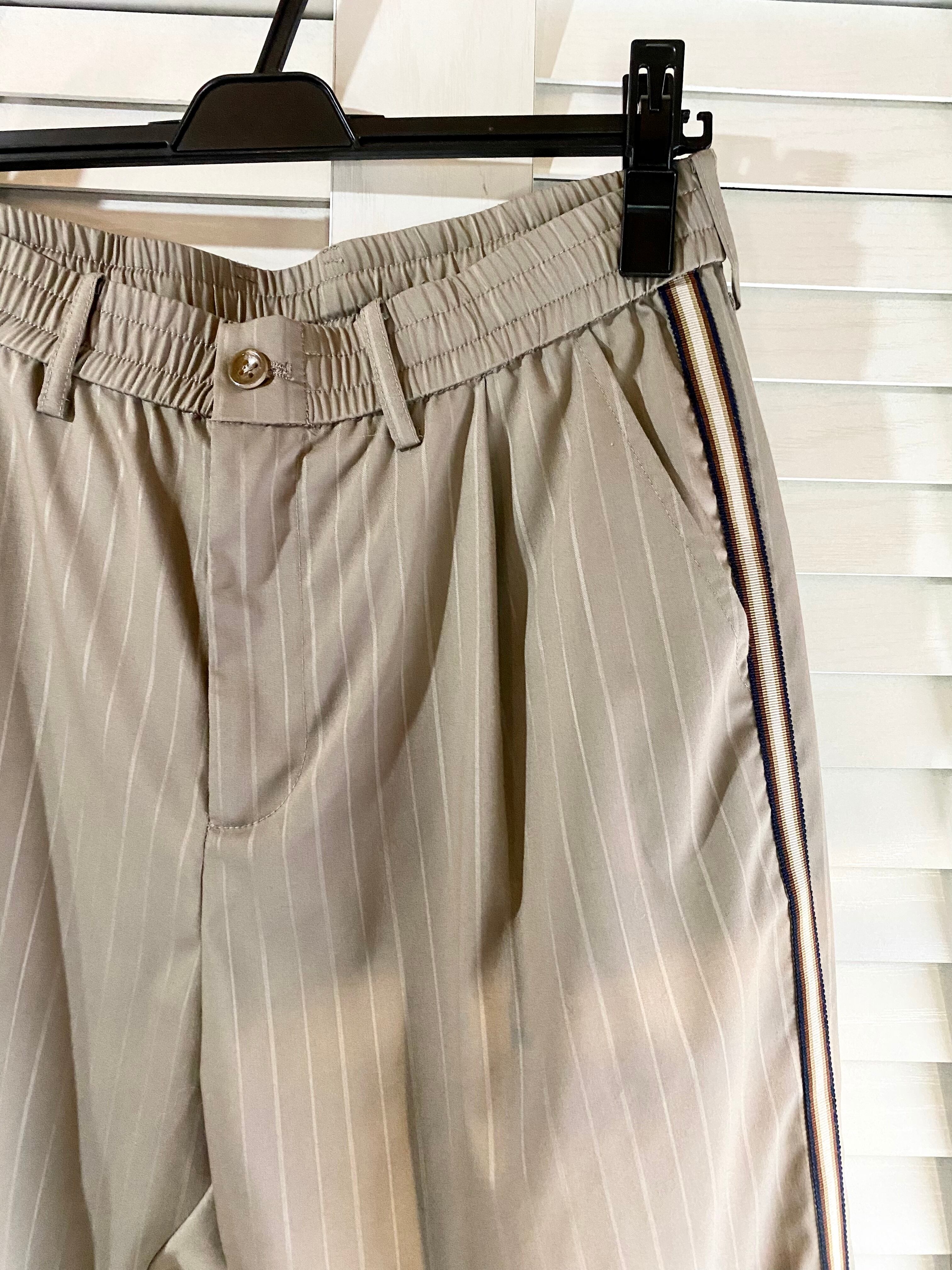 #143 CALL & RESPONS ペンシルストライプ グログランサイドライン ワンタック ルーズテーパードパンツ グレーベージュ
