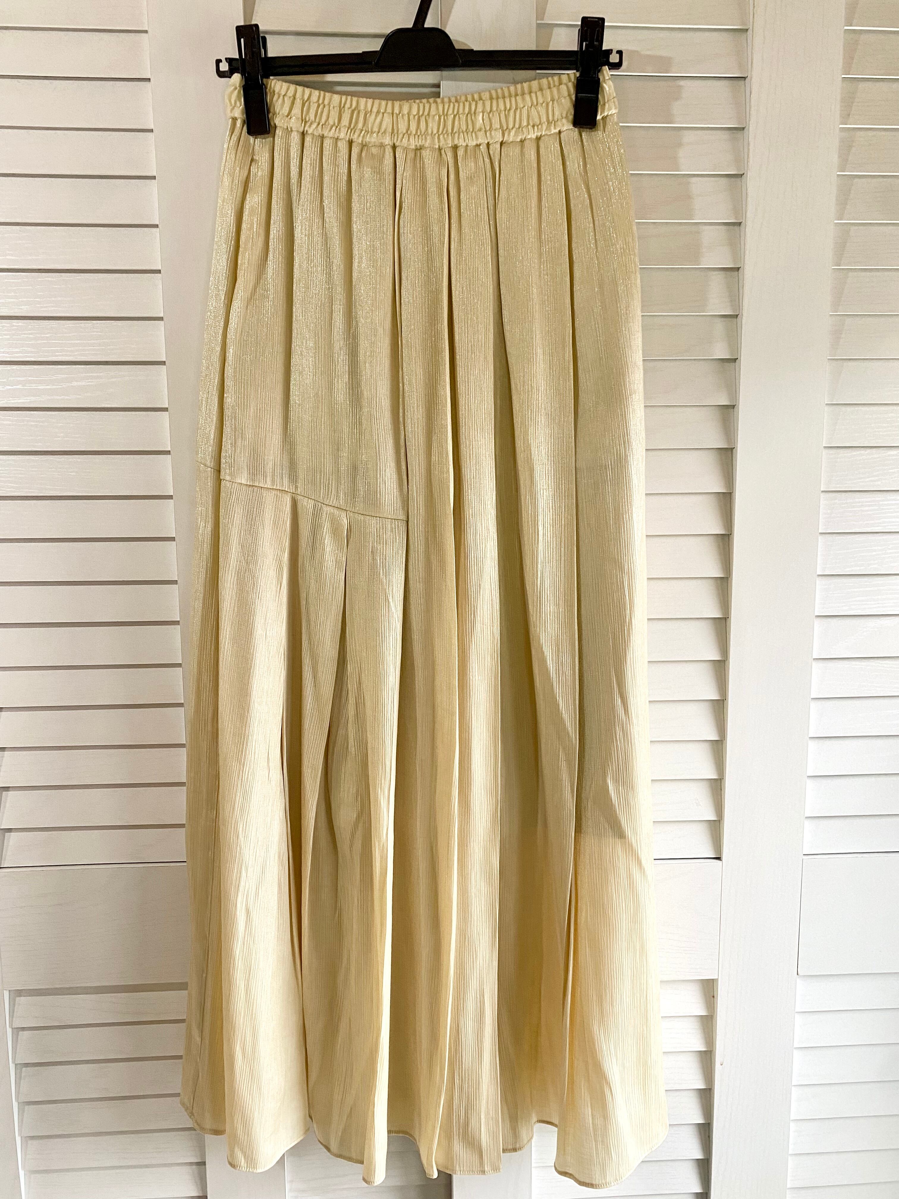 #143 JEANASIS 楊柳シャイニーサテン 切替プリーツボリュームスカート ゴールドベージュ