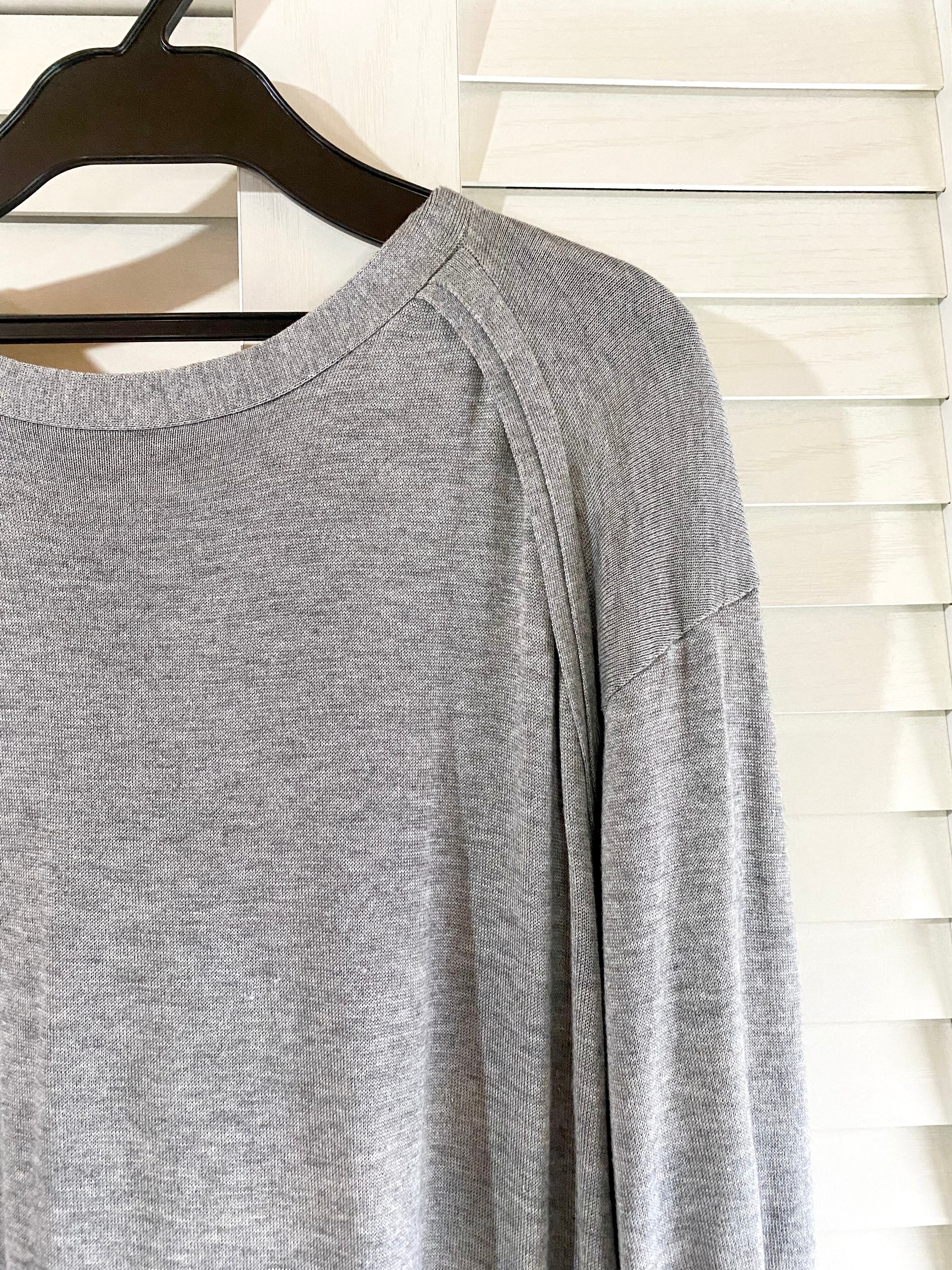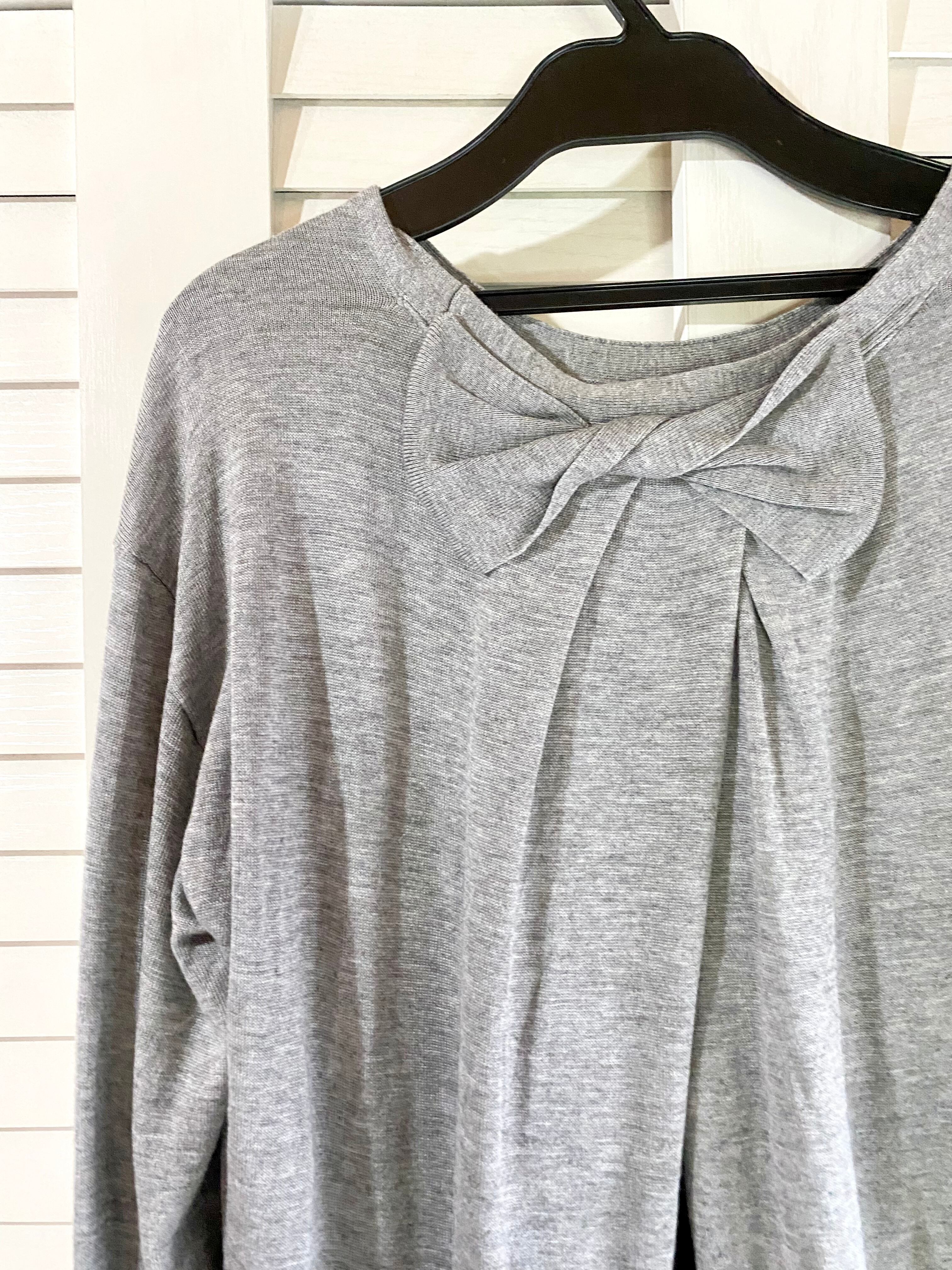 #143 LANVIN ツイストリボン バックレース切替 ニットワンピ グレー