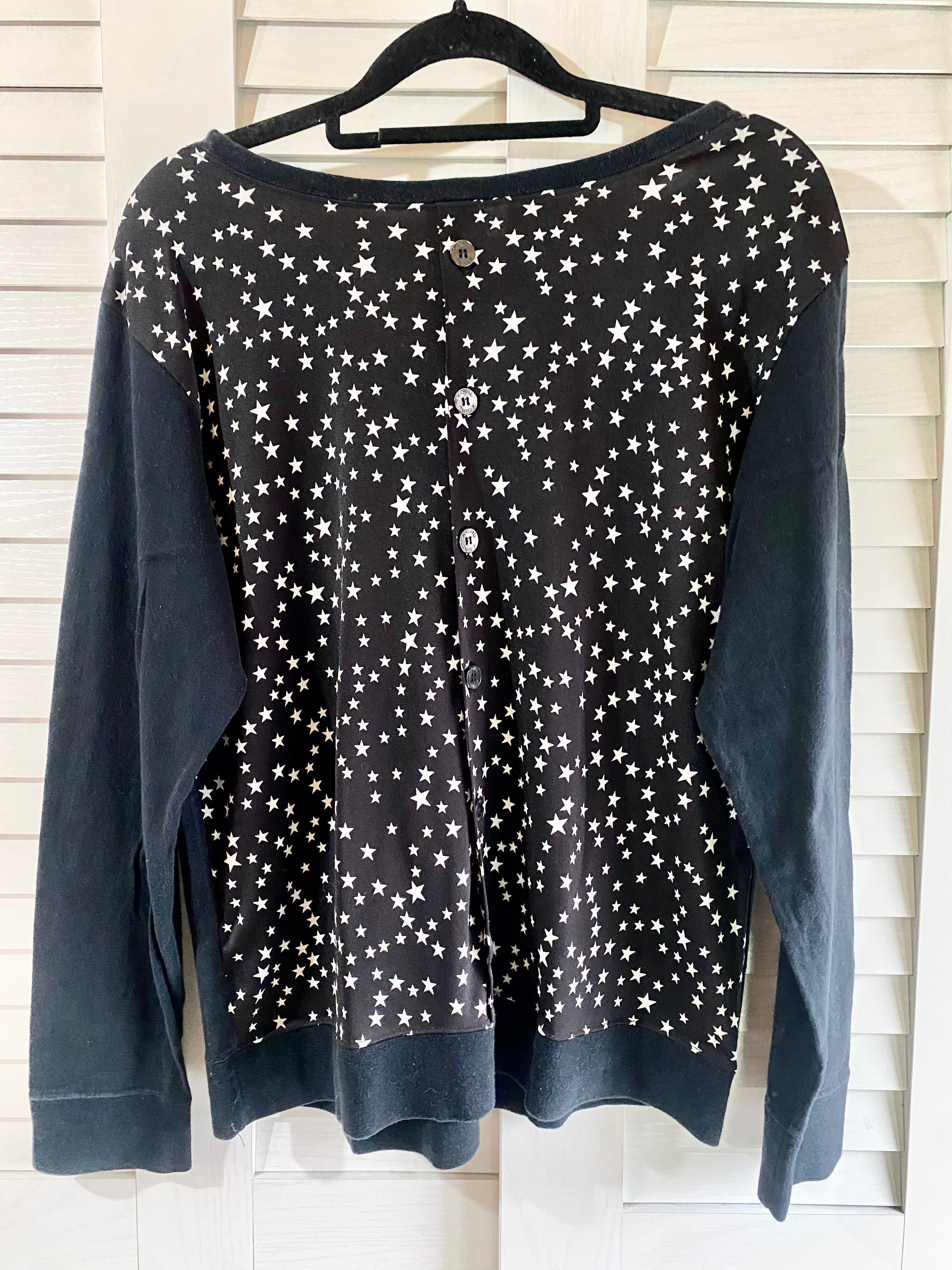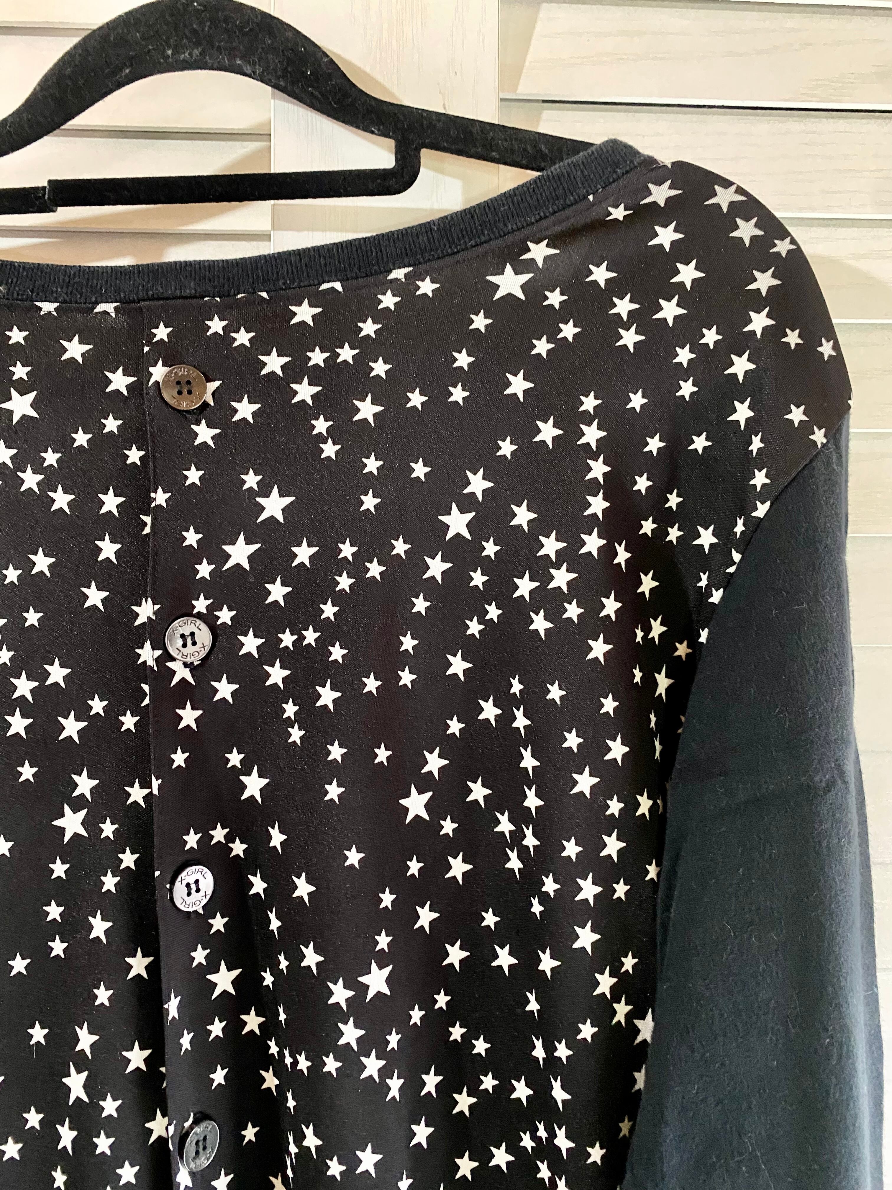 #143 X-girl チェーン刺繍ロゴ スター柄ストレッチジョーゼット切替プルオーバーカットソートップス ブラック