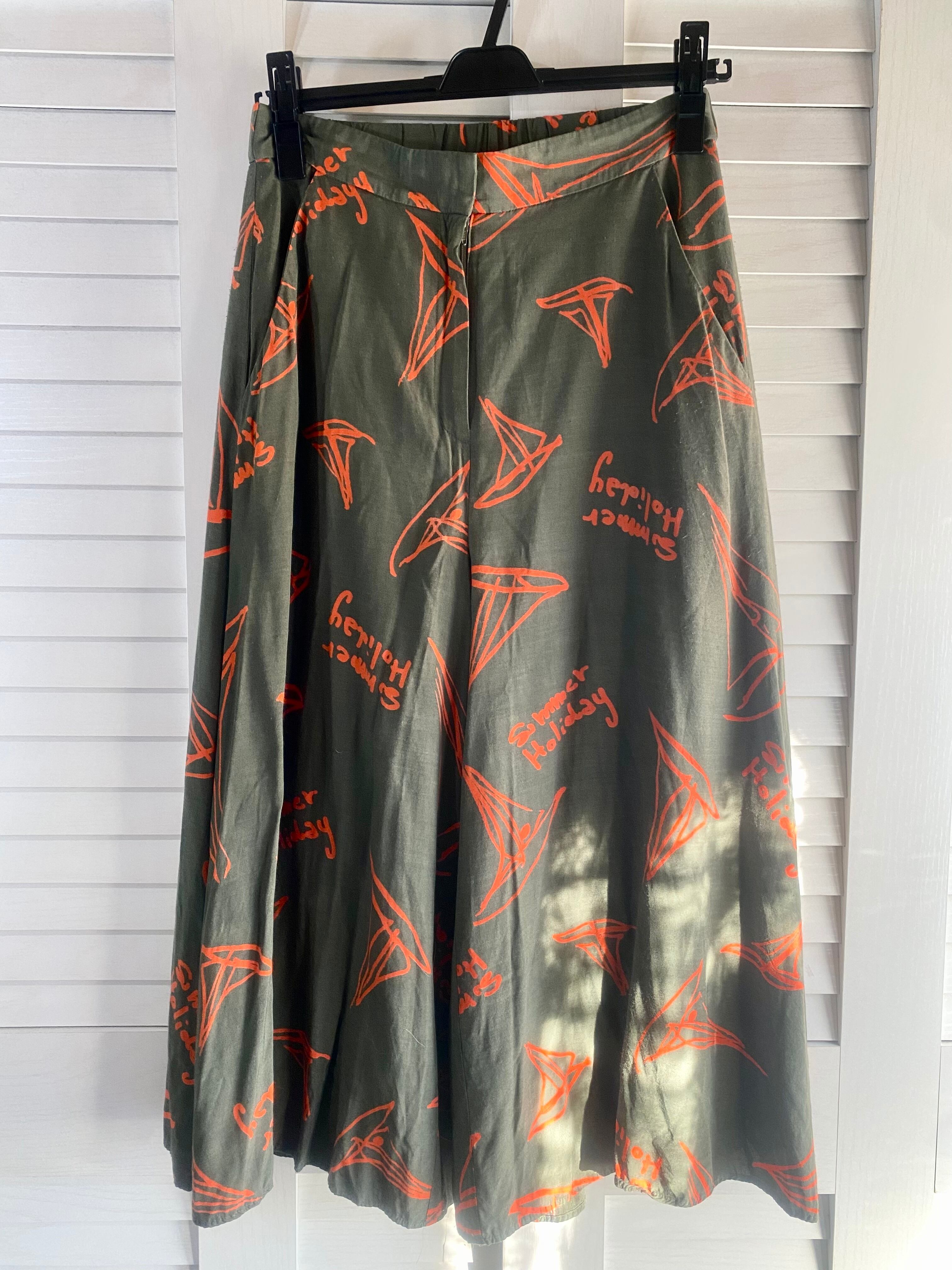 #146 GRACE CONTINENTAL 手描きヨットプリント ノータック レーヨンワイドパンツ カーキ