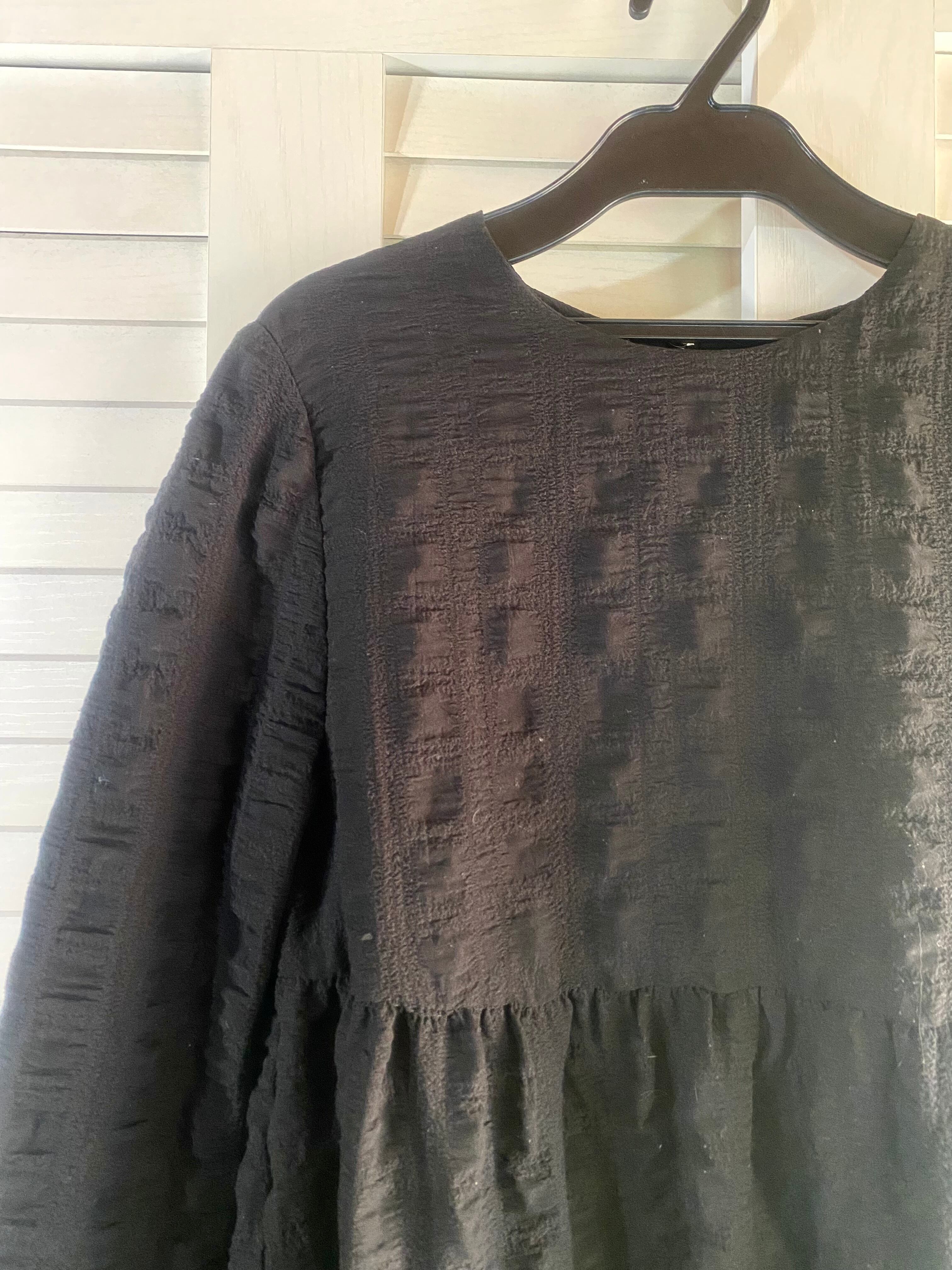 #146 ZARA リップル加工 ティアードオーバーチュニックブラウス ブラック