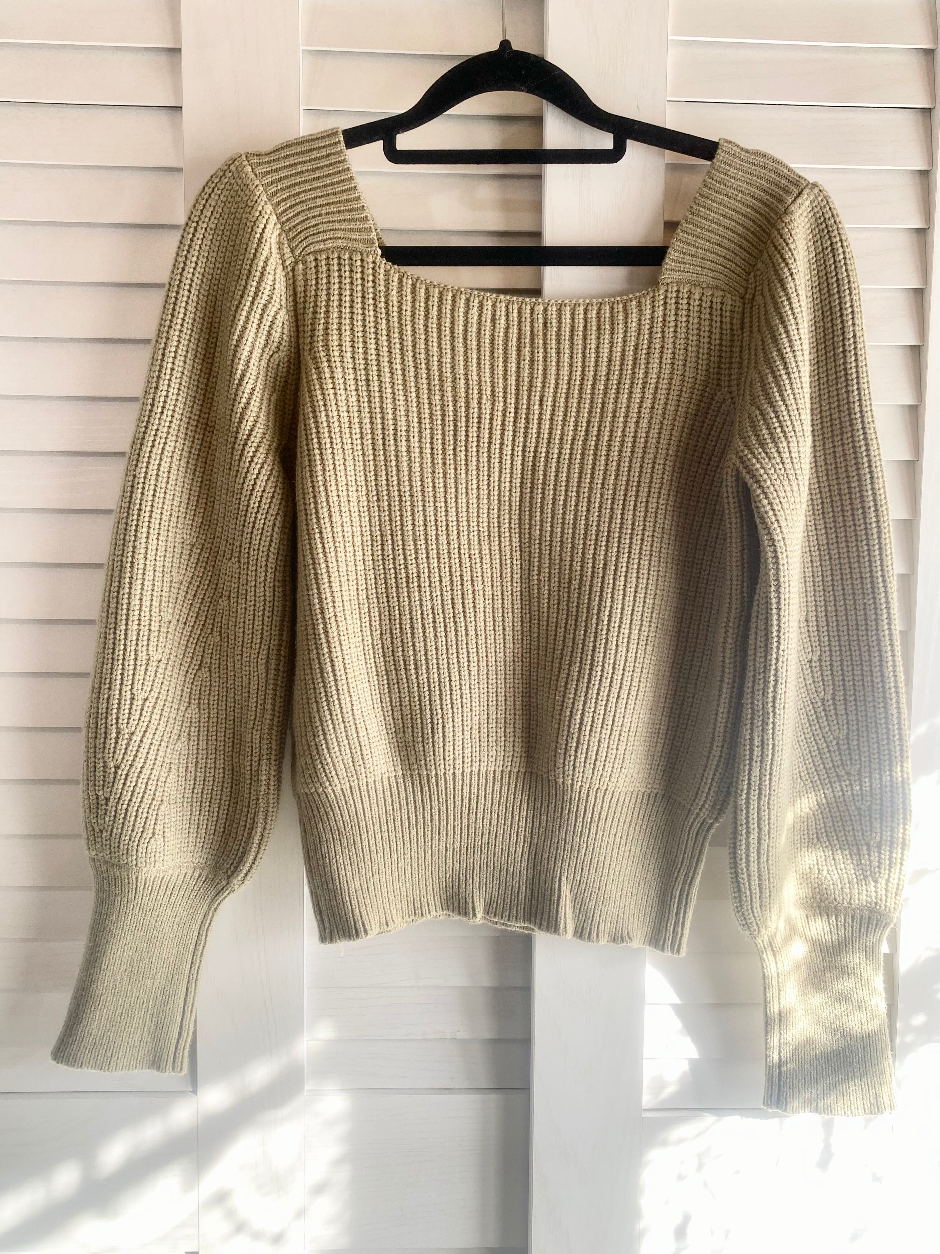#147 kastane スクエアカラー ボリュームスリーブ アクリルナイロンニットセーター オリーブ