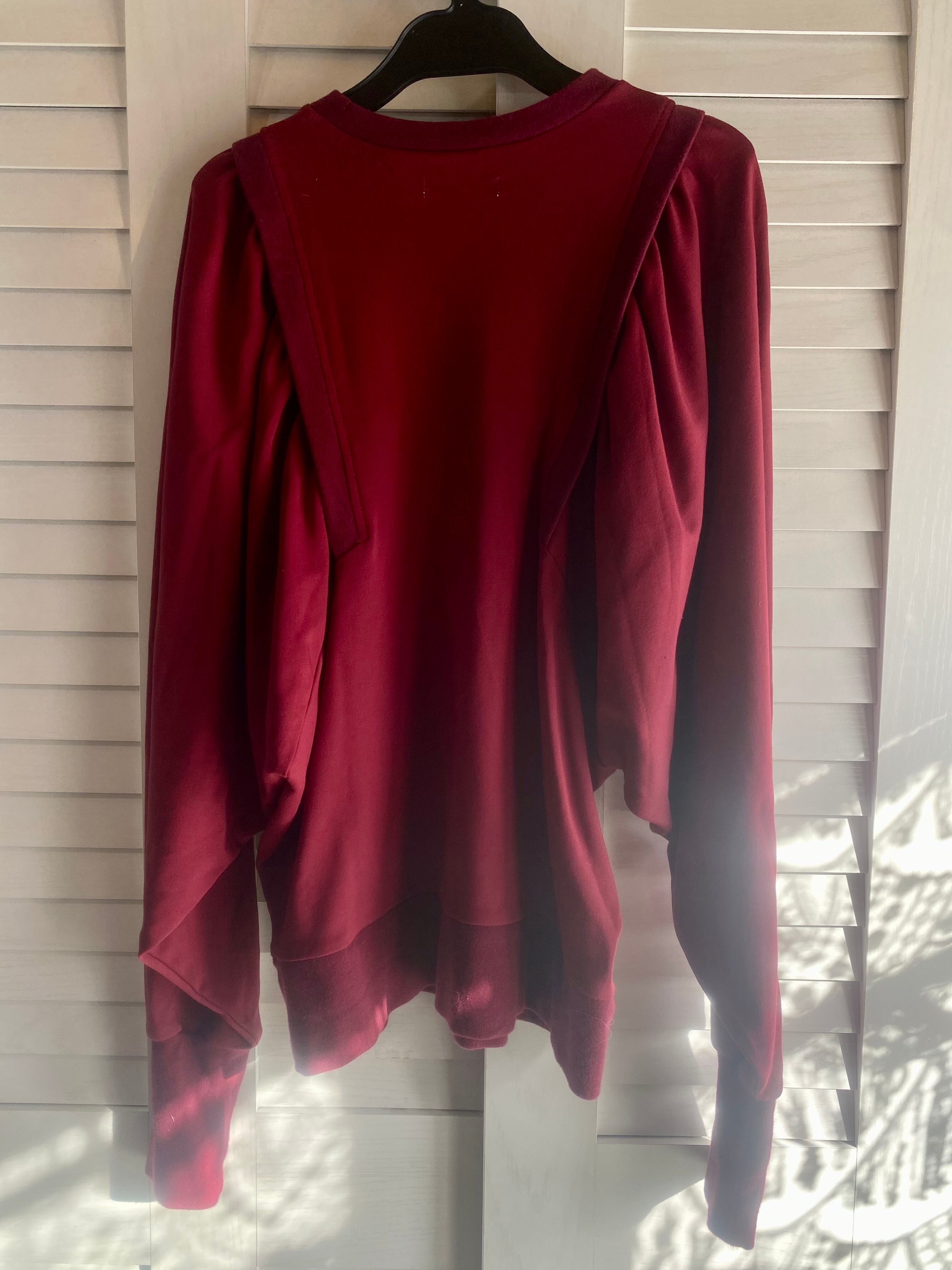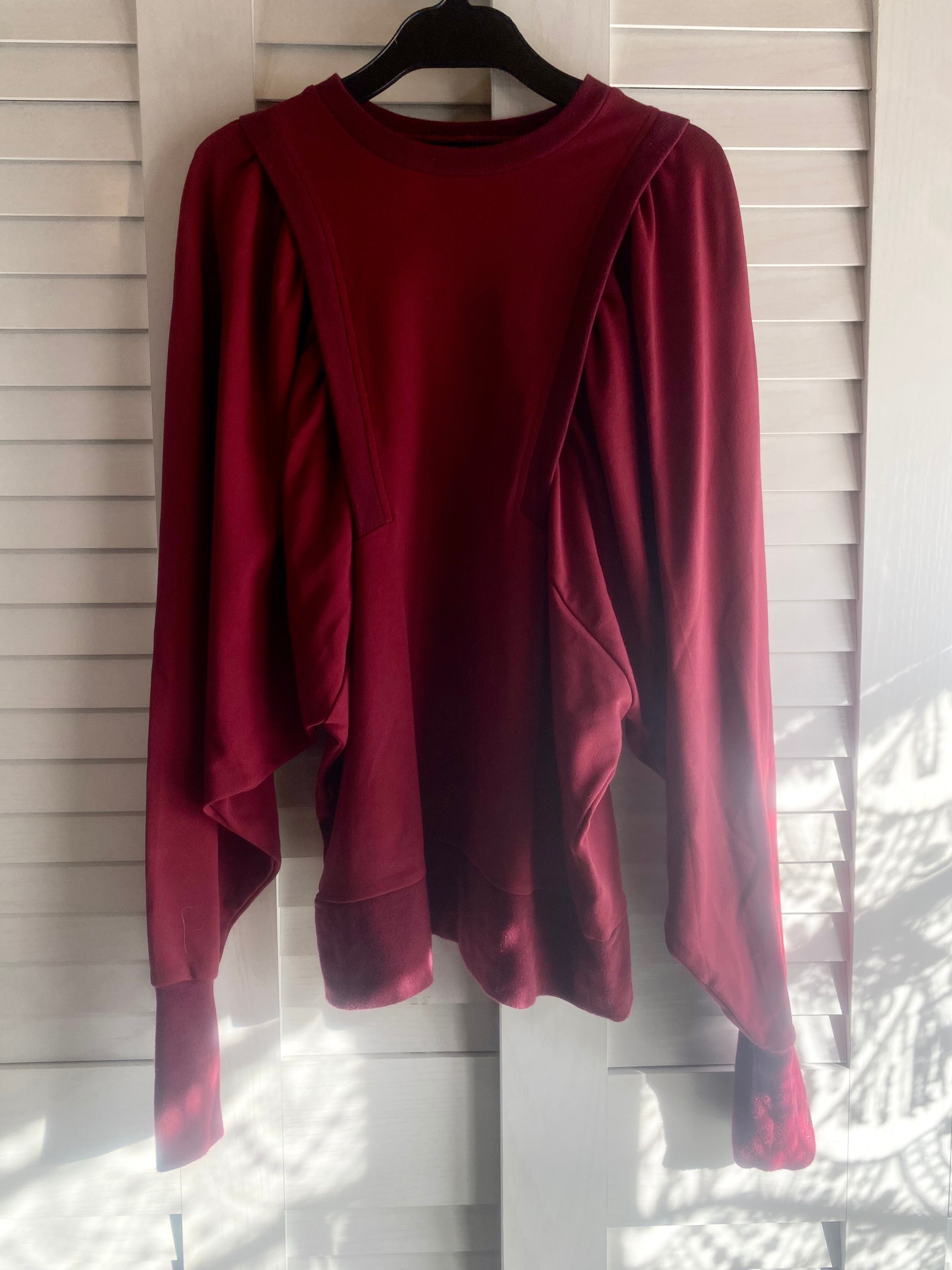 #147 ROSE BUD カッティングボリュームスリーブ レーヨンスムースデザインプルオーバートップス ピンクレッド