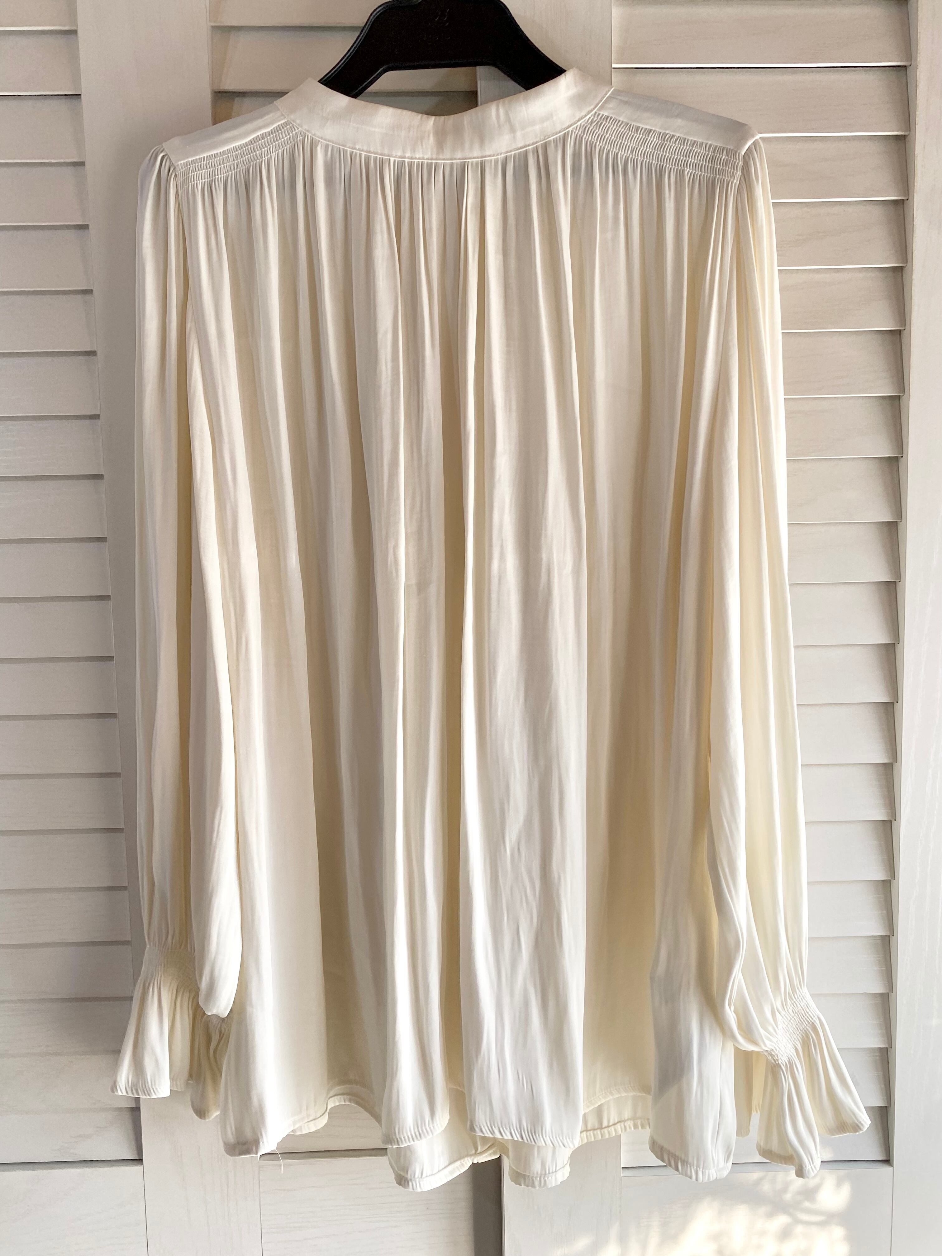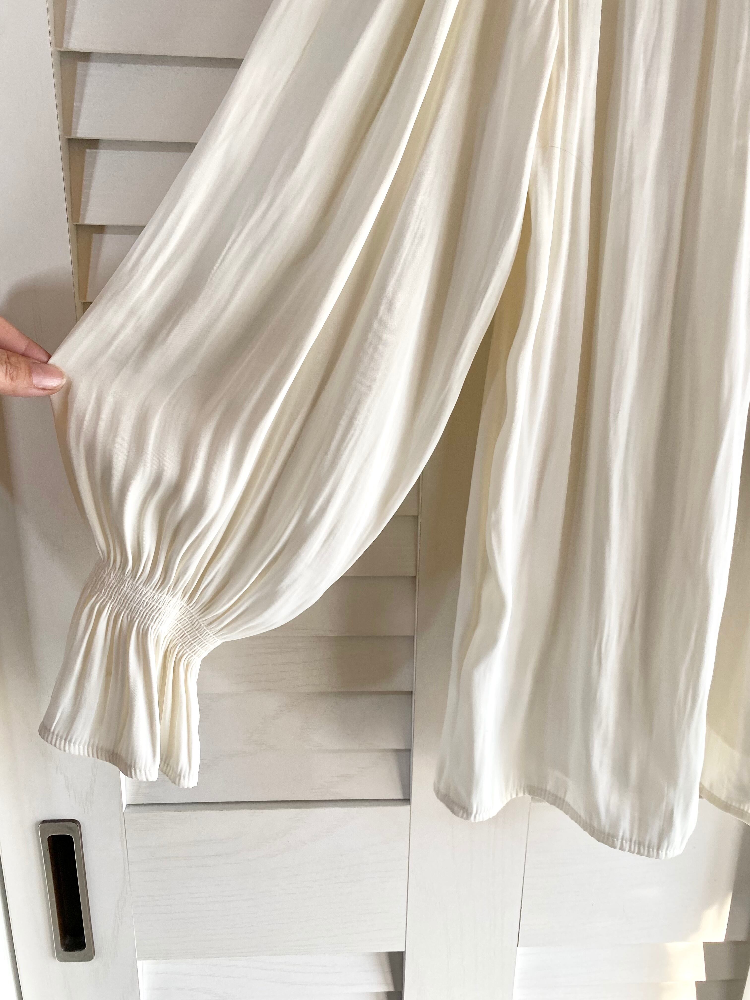 #151 VIS ヴィンテージサテン キャンディースリーブ シャーリング オーバーサイズブラウス アイボリー