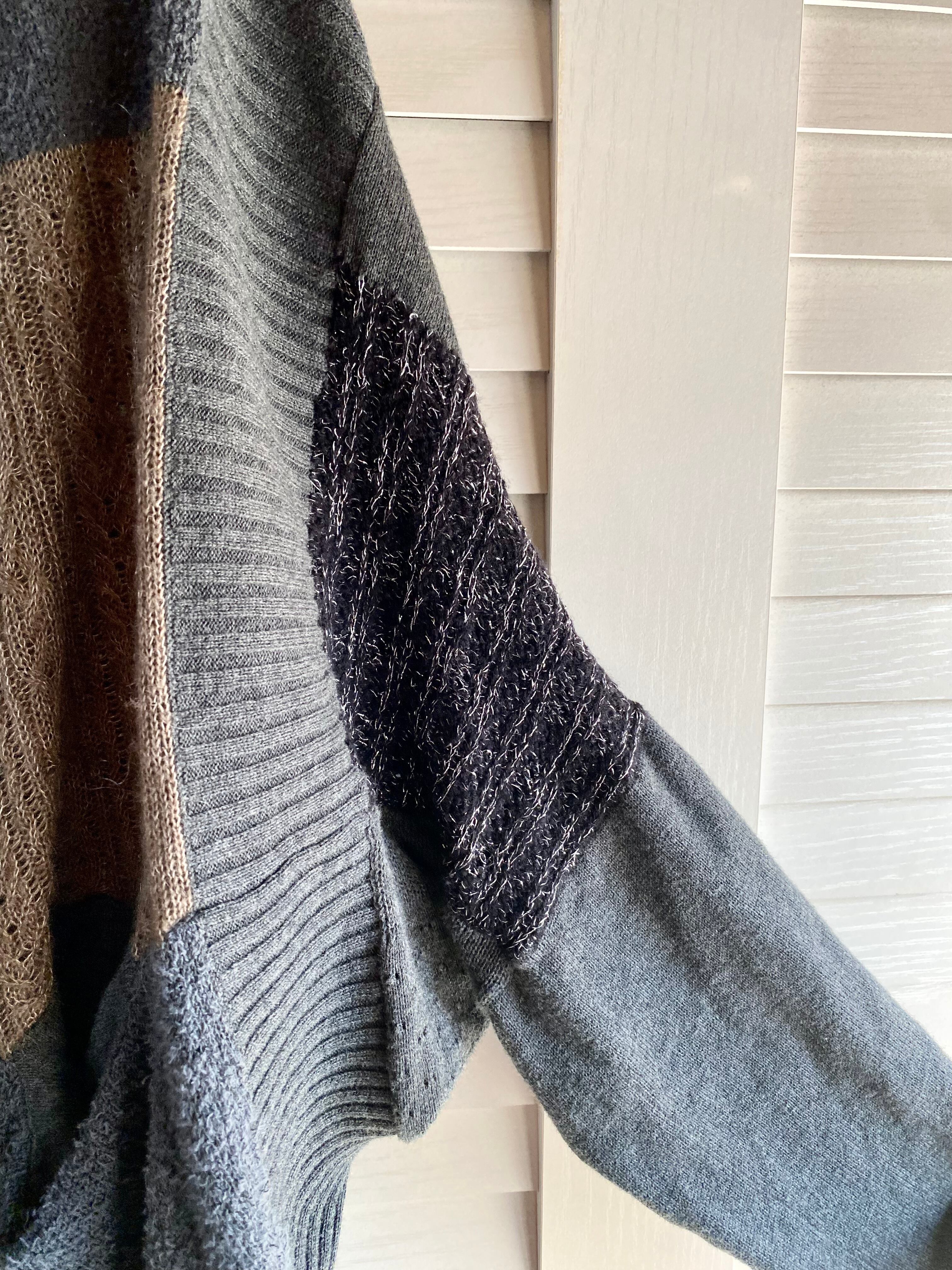 #151 FRAPBOIS パッチワーク変形コットンニットカーデ チャコールグレー