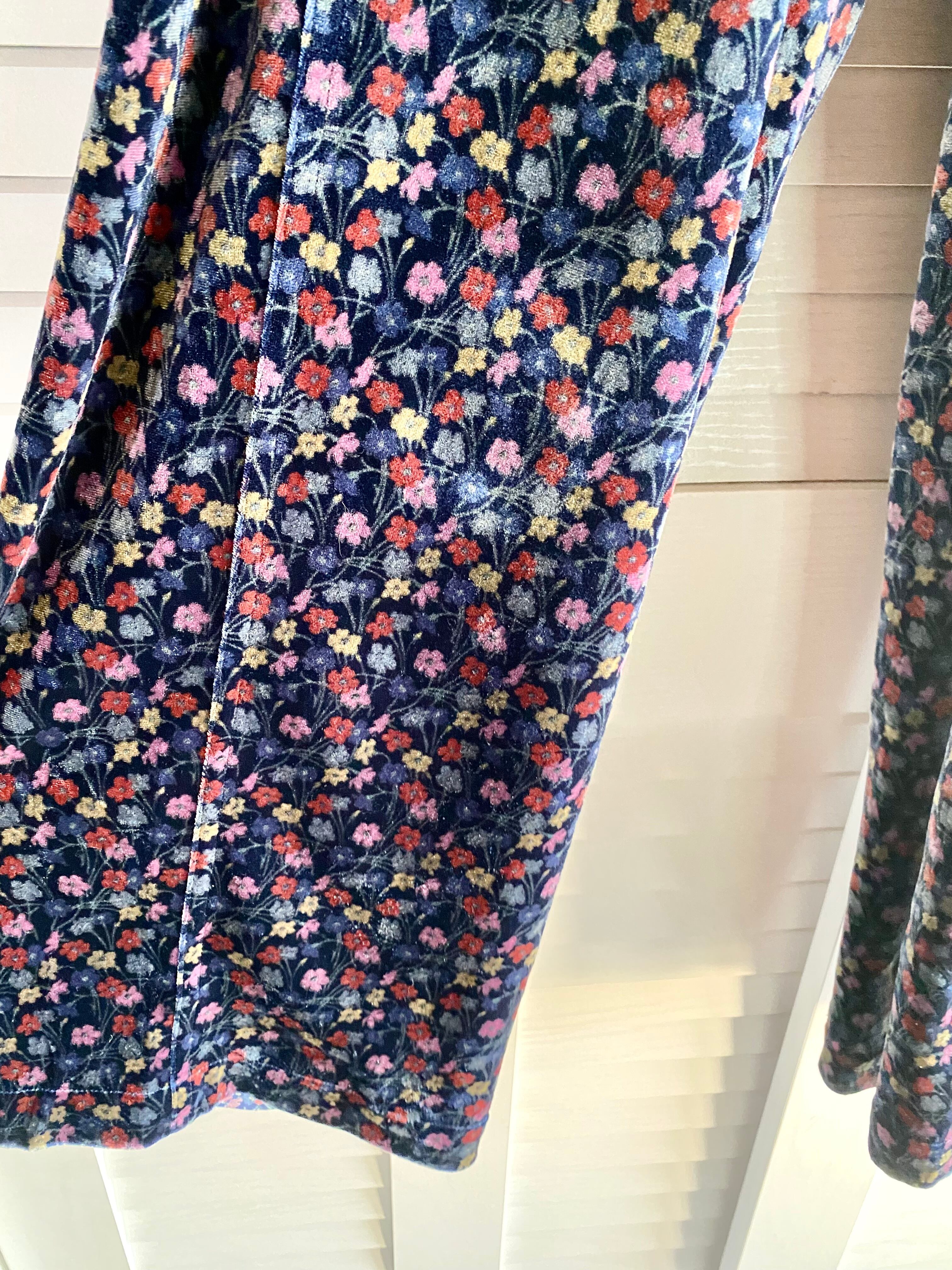 #151 BEAMS BOY 小花柄ストレッチベロア ウエストリボン ルーズワイドパンツ ネイビー
