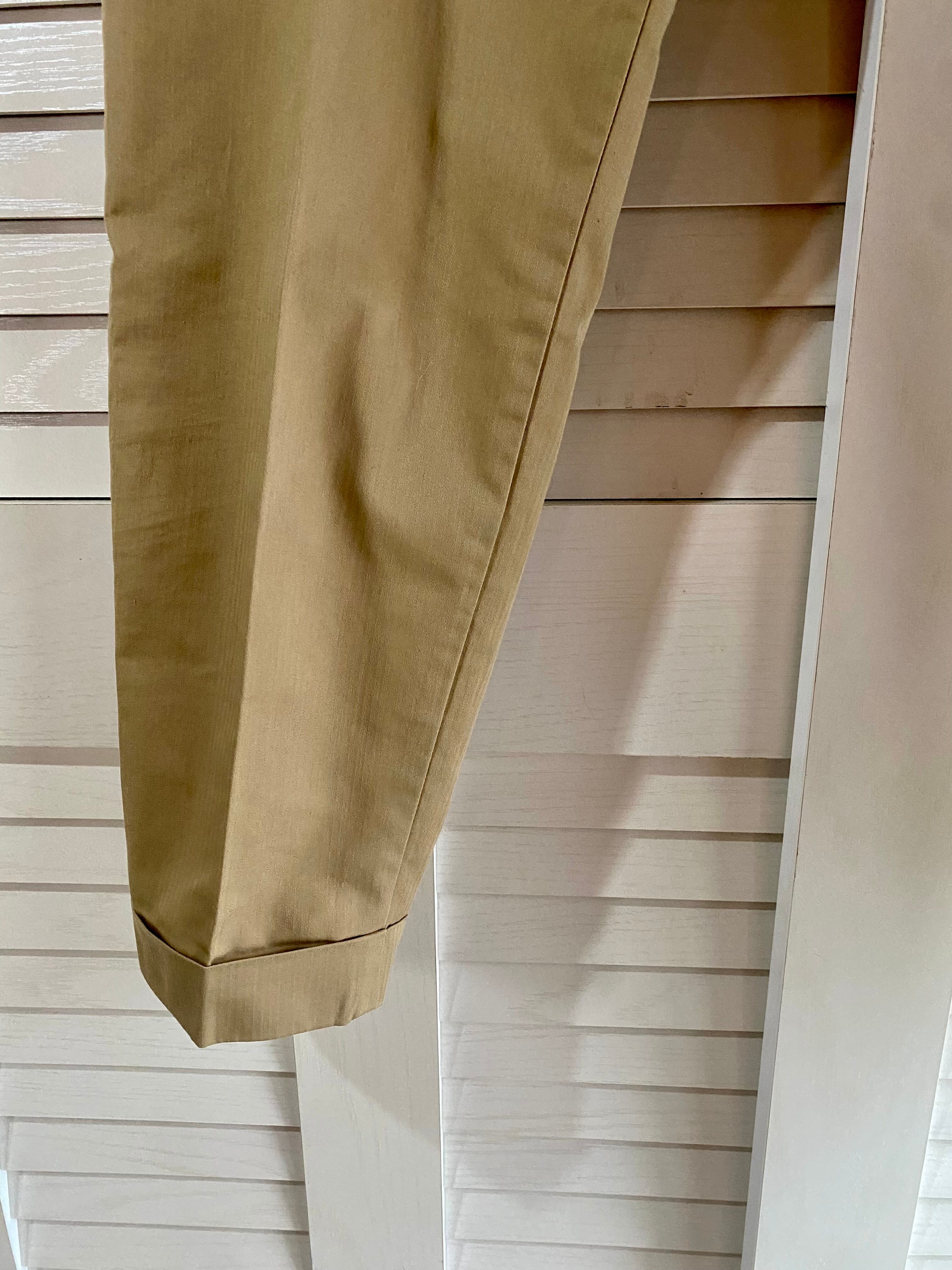 #152 LANVIN ストライプ織柄 チノクロス ノータックテーパードパンツ ベージュ