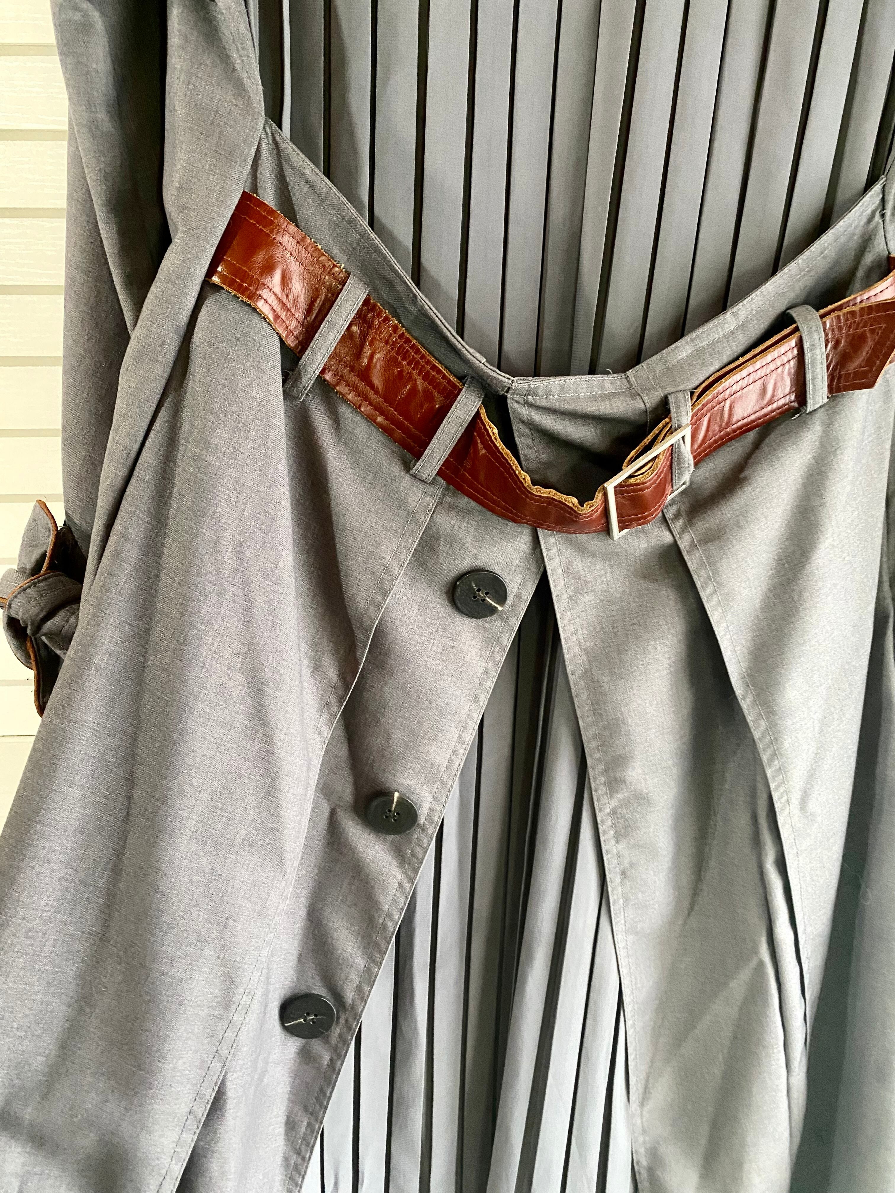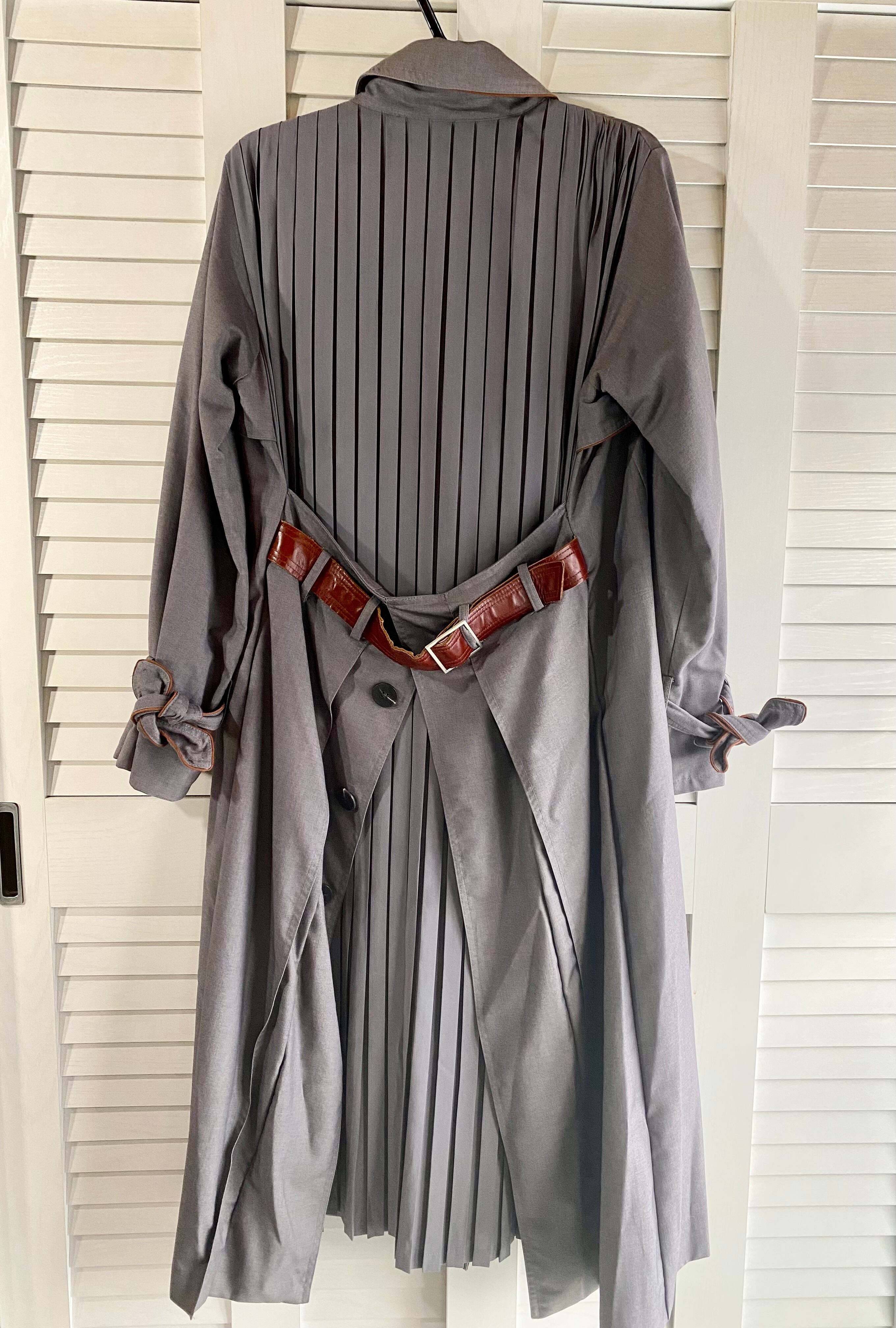 #154 AMERI バックプリーツ リアルレザーベルト 裏地つきデザイントレンチコート グレー