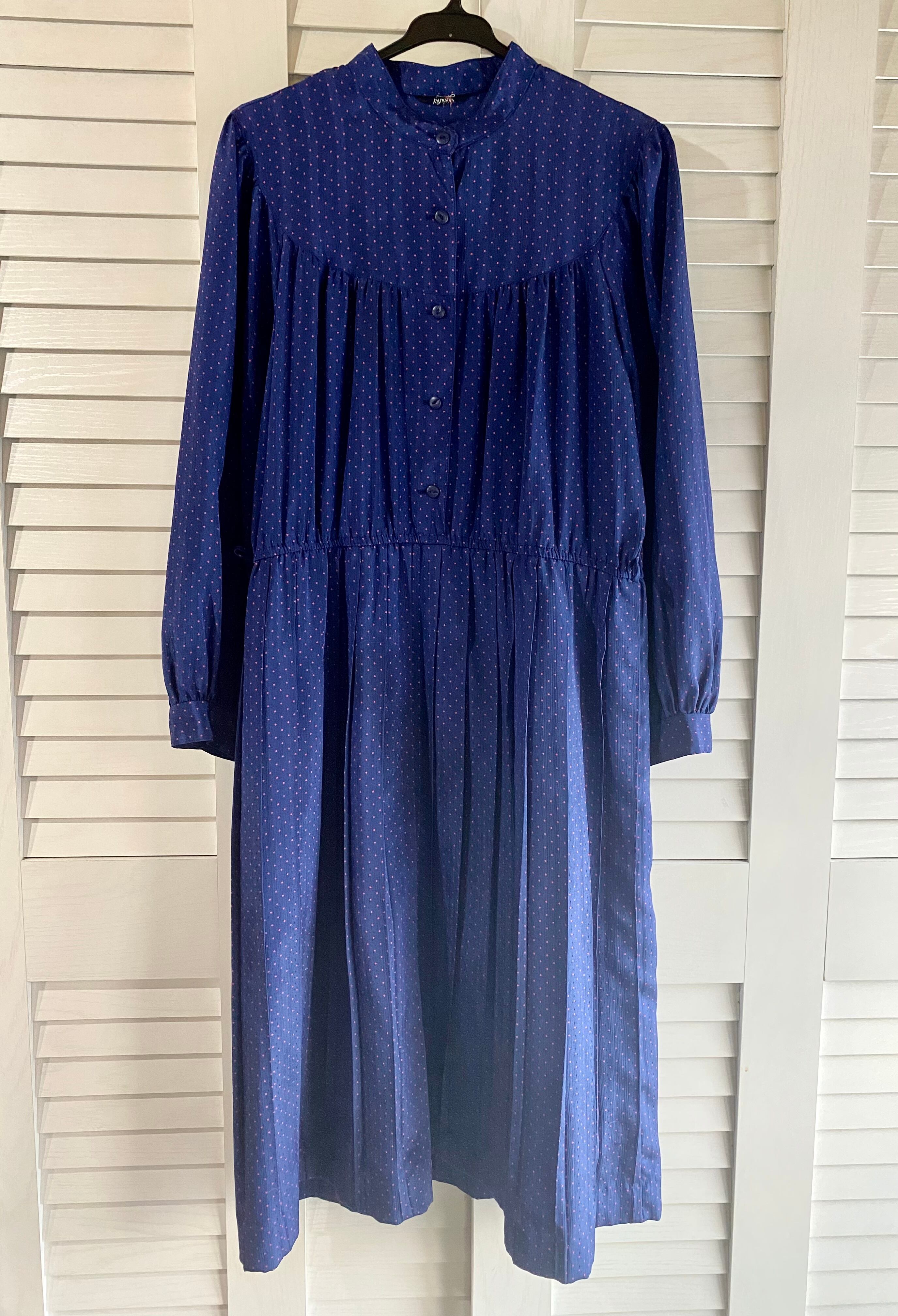 #154 70Sデッドストック ドットジャガードサテン プリーツシャツワンピ ネイビー
