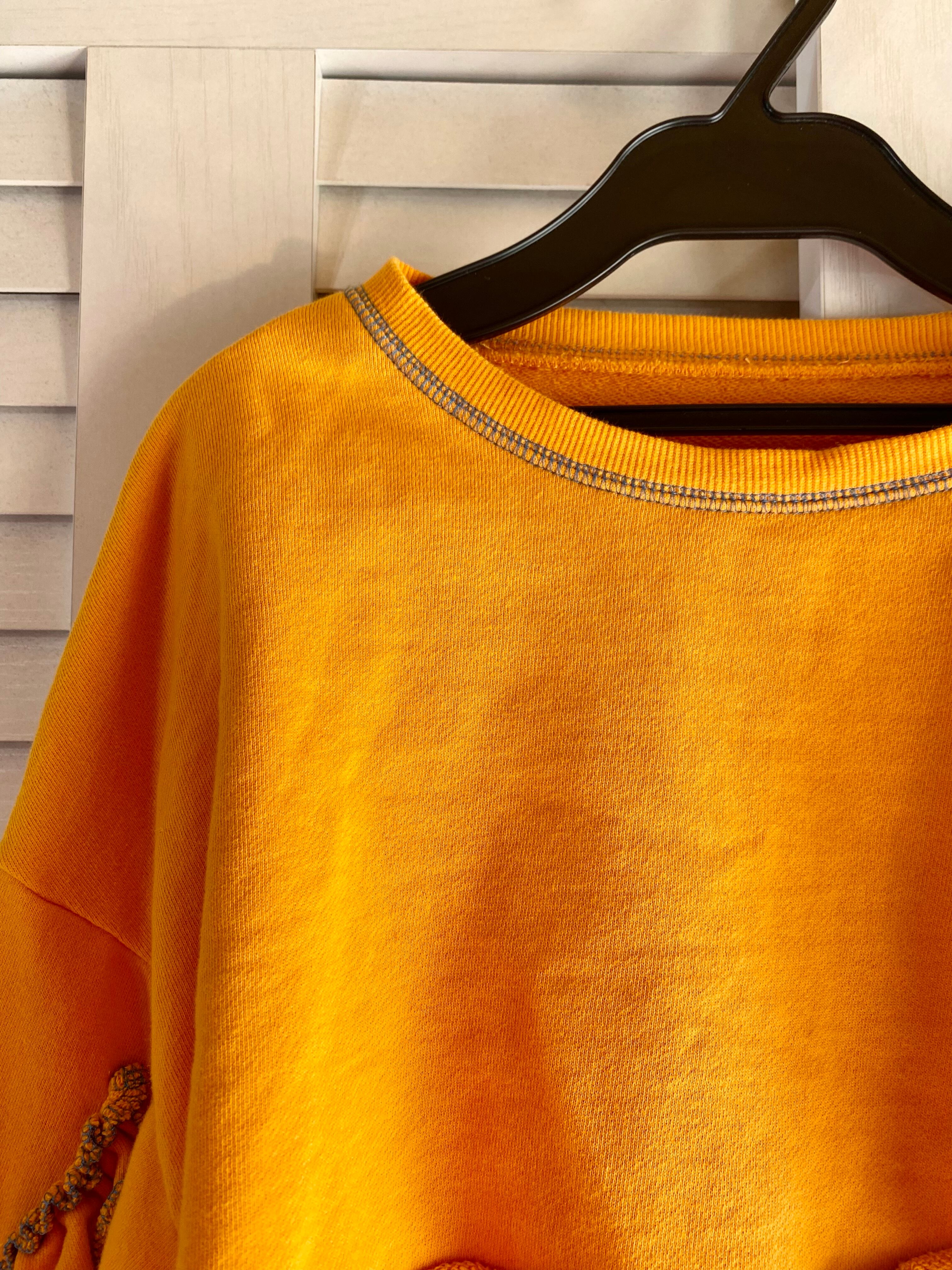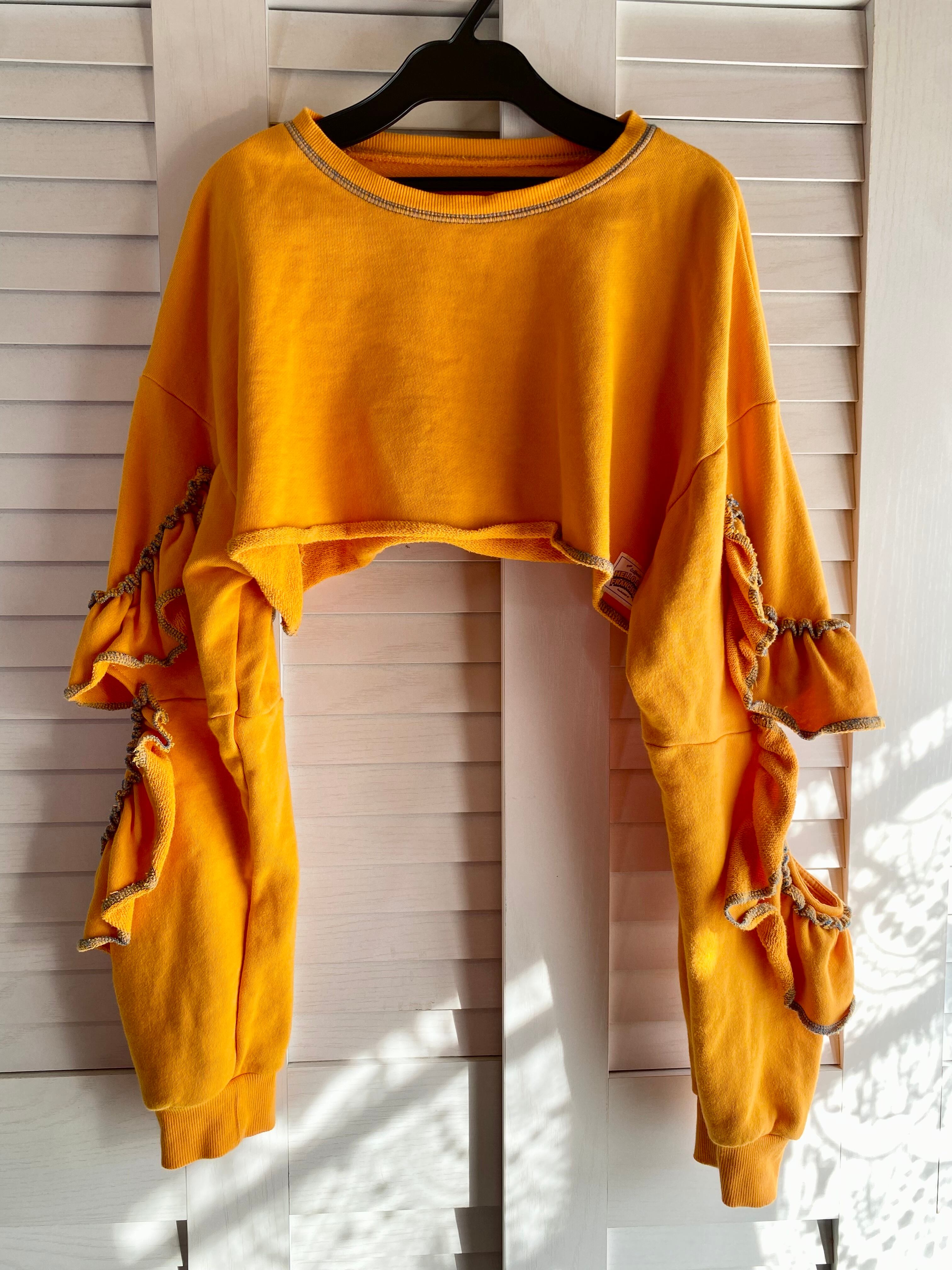 #156 HELLO.SANFRANCISCO フリル&ステッチデザイン ショート丈スウェットトップス ゴールデンイエロー