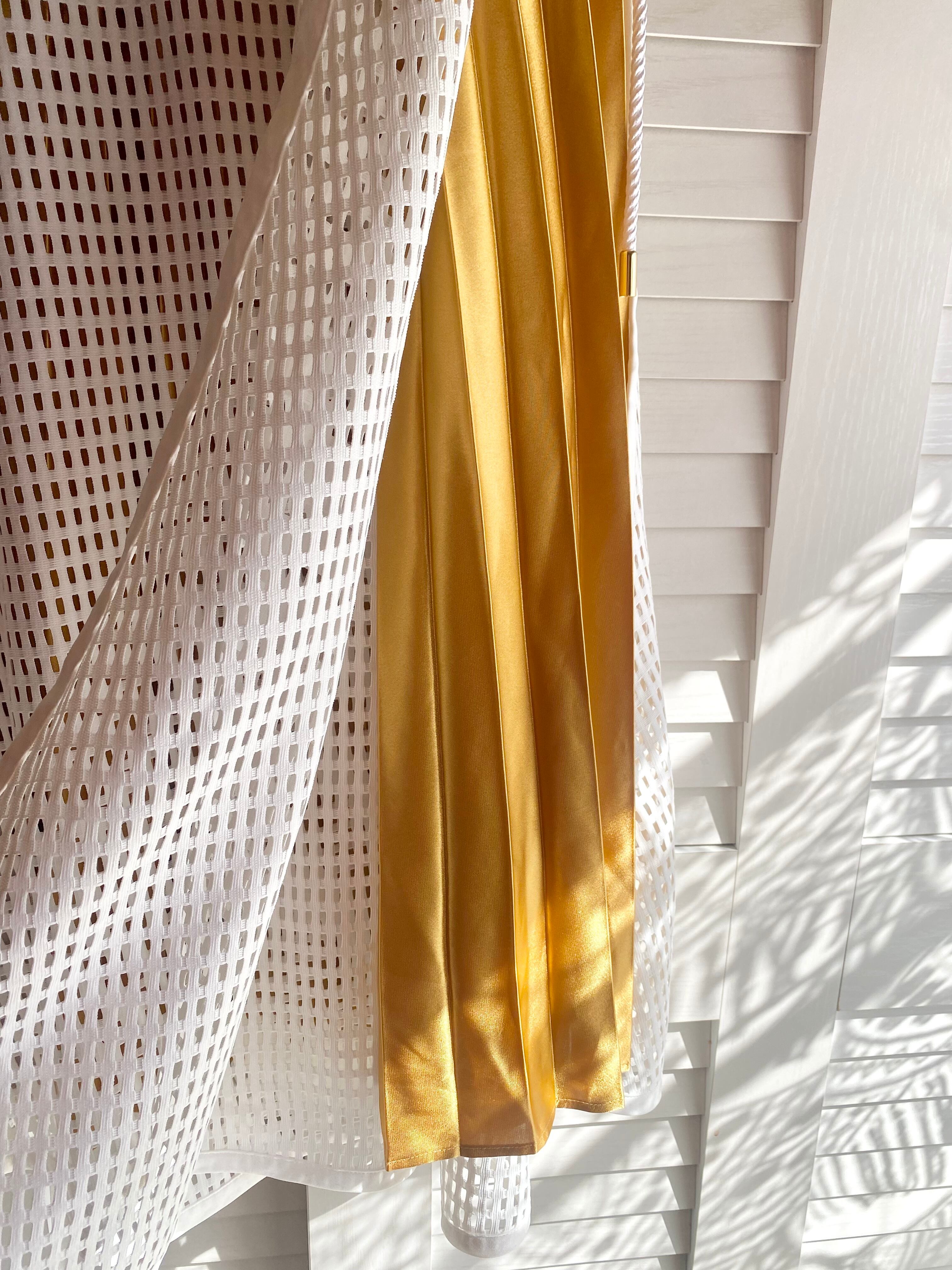 #158 LOVELESS メッシュレースラップオーバースカート付きバイカラープリーツスカート マスタード×ライトベージュ×オフホワイト