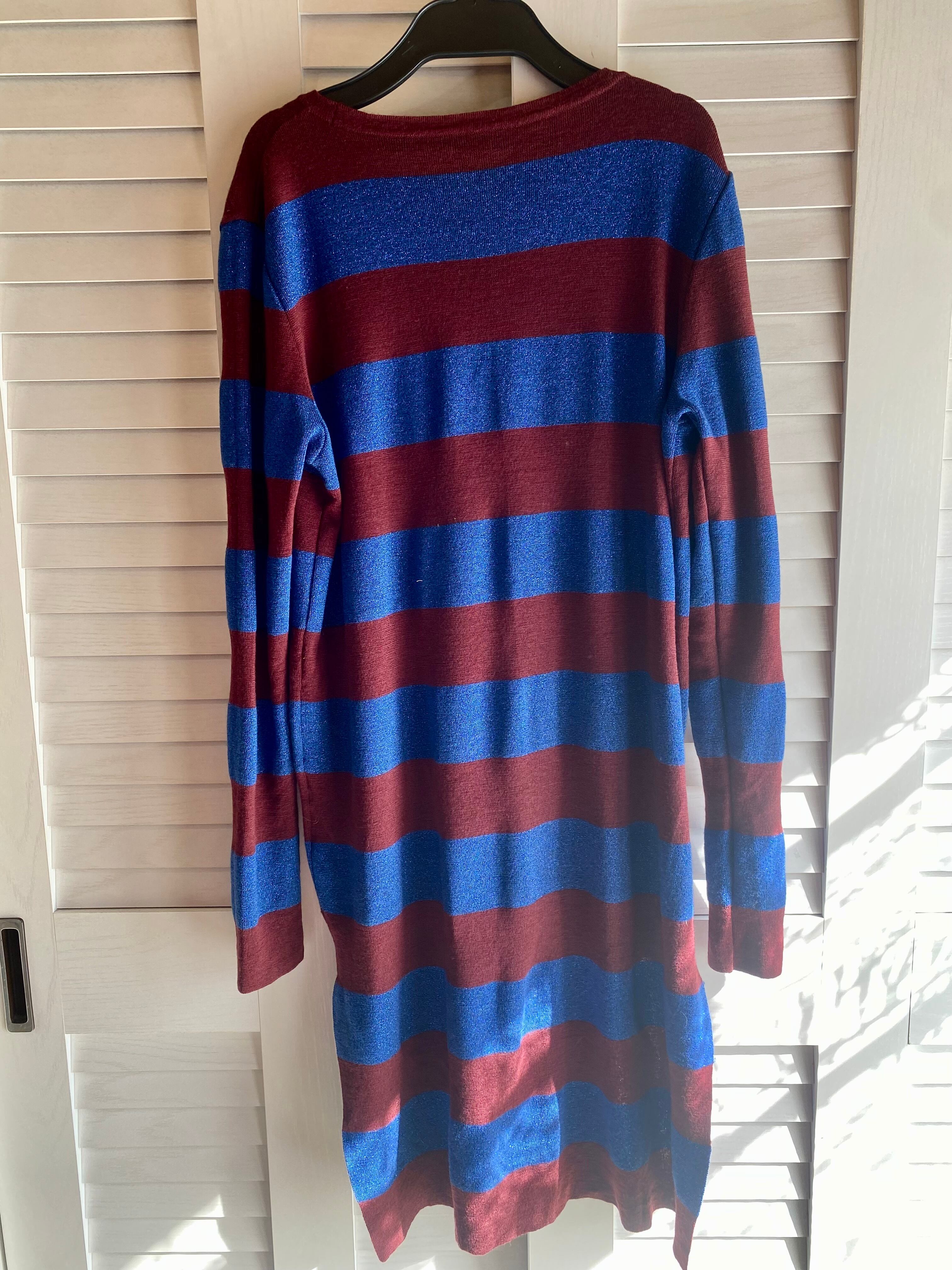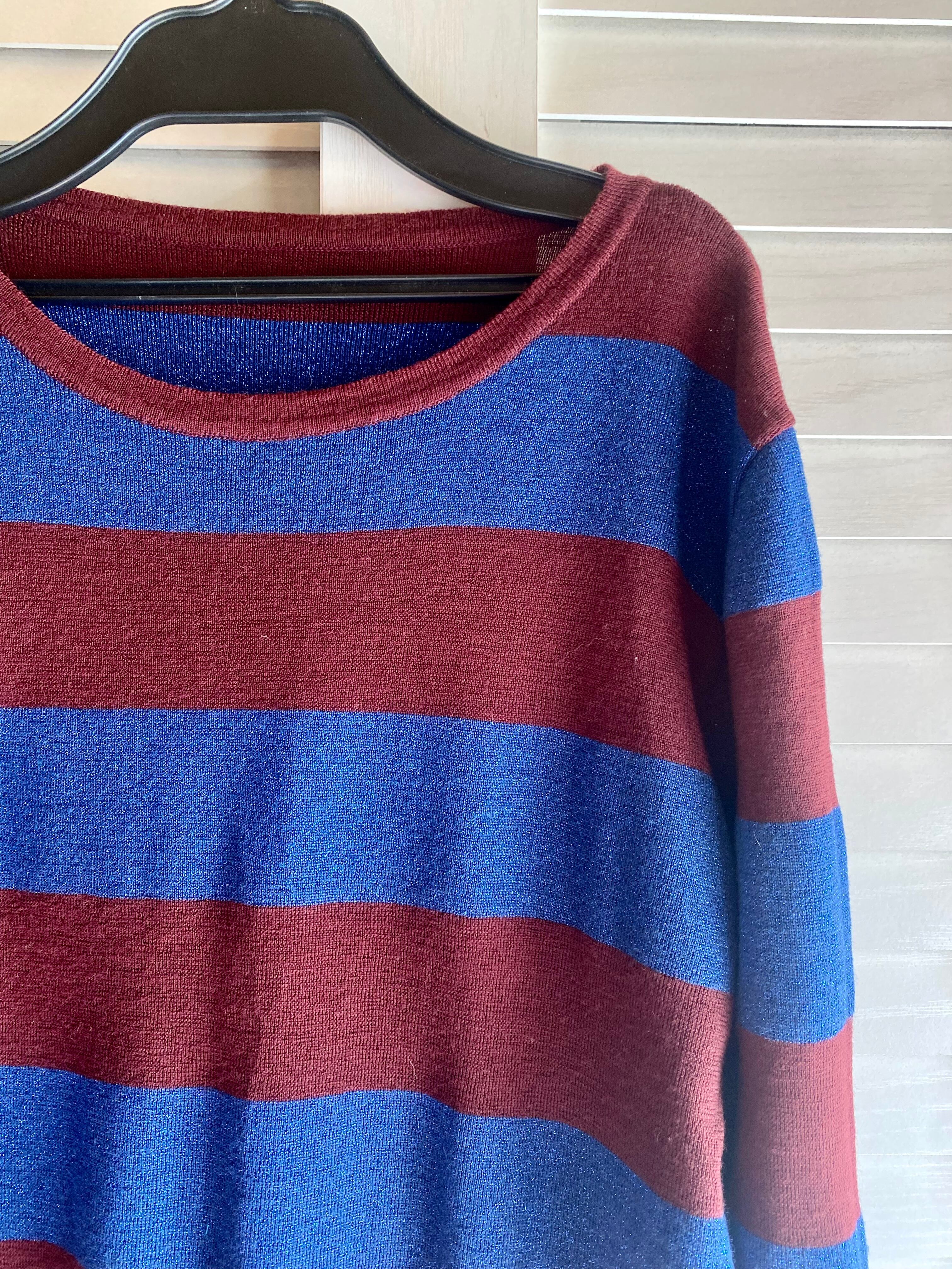 #158 GRACE CONTINENTAL ラメ入りボーダーロングニット ブルー×エンジ