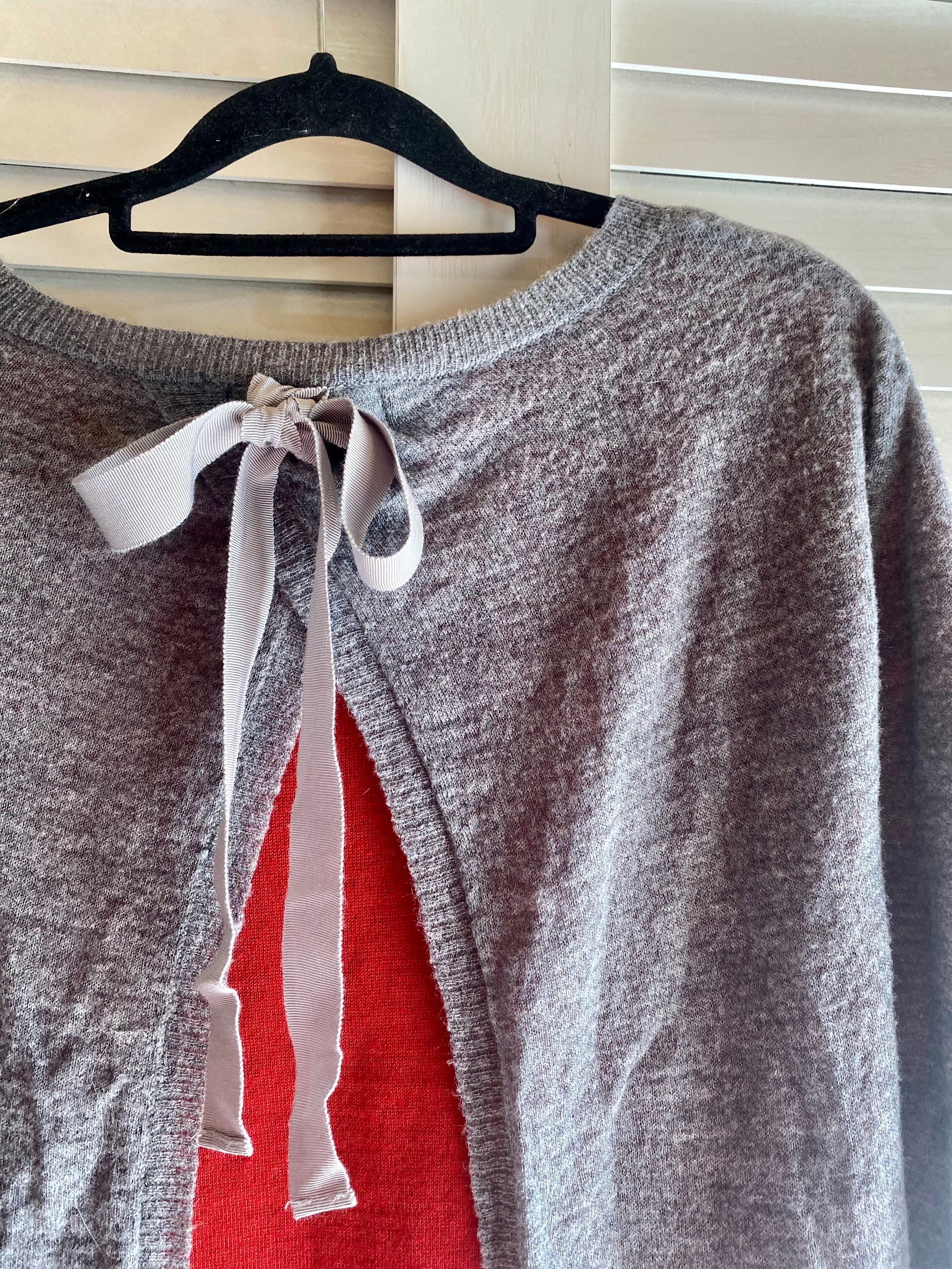 #158 JILL STUART グログランリボン レイヤードデザインニット ライトグレー×レッド