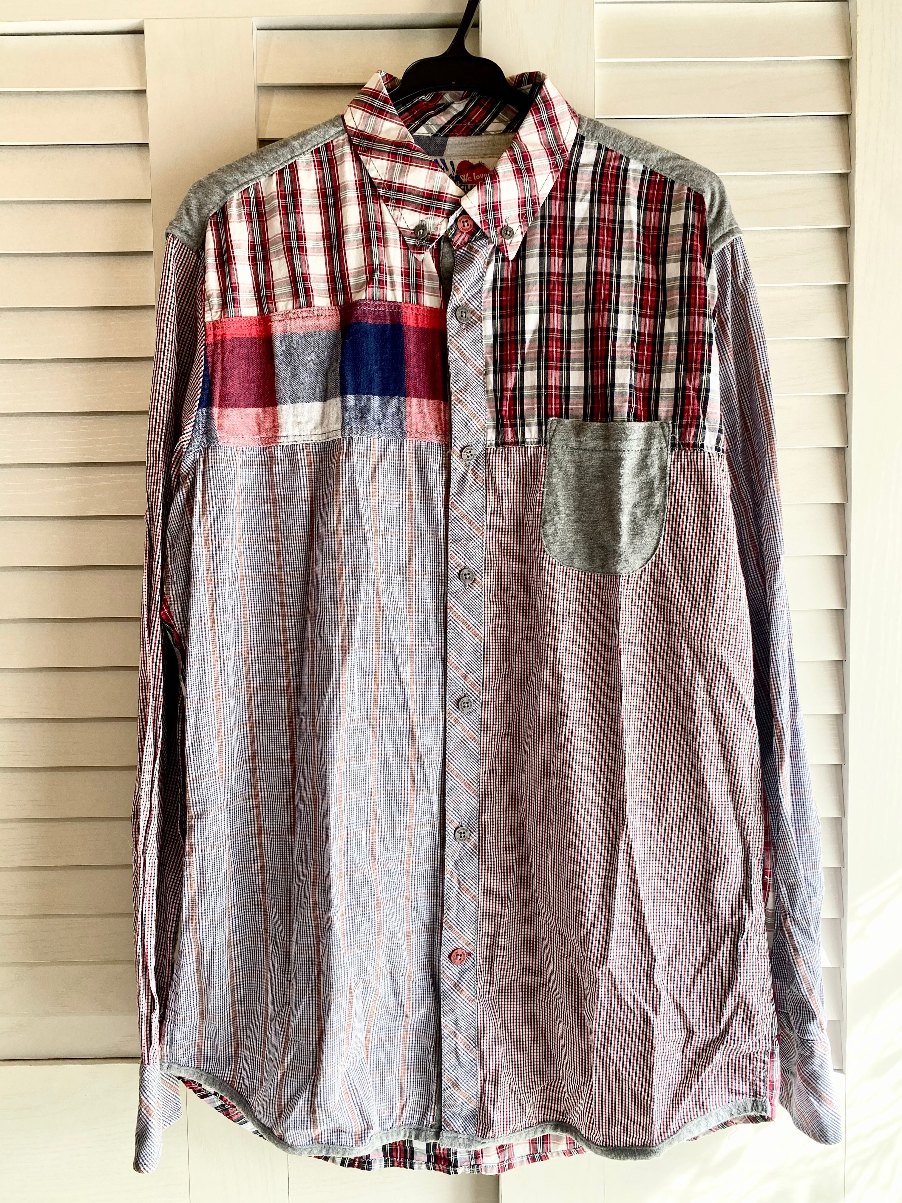 専用◎#160 Desigual チェッククレイジーパターン ニーパッチドデザインシャツ マルチカラー