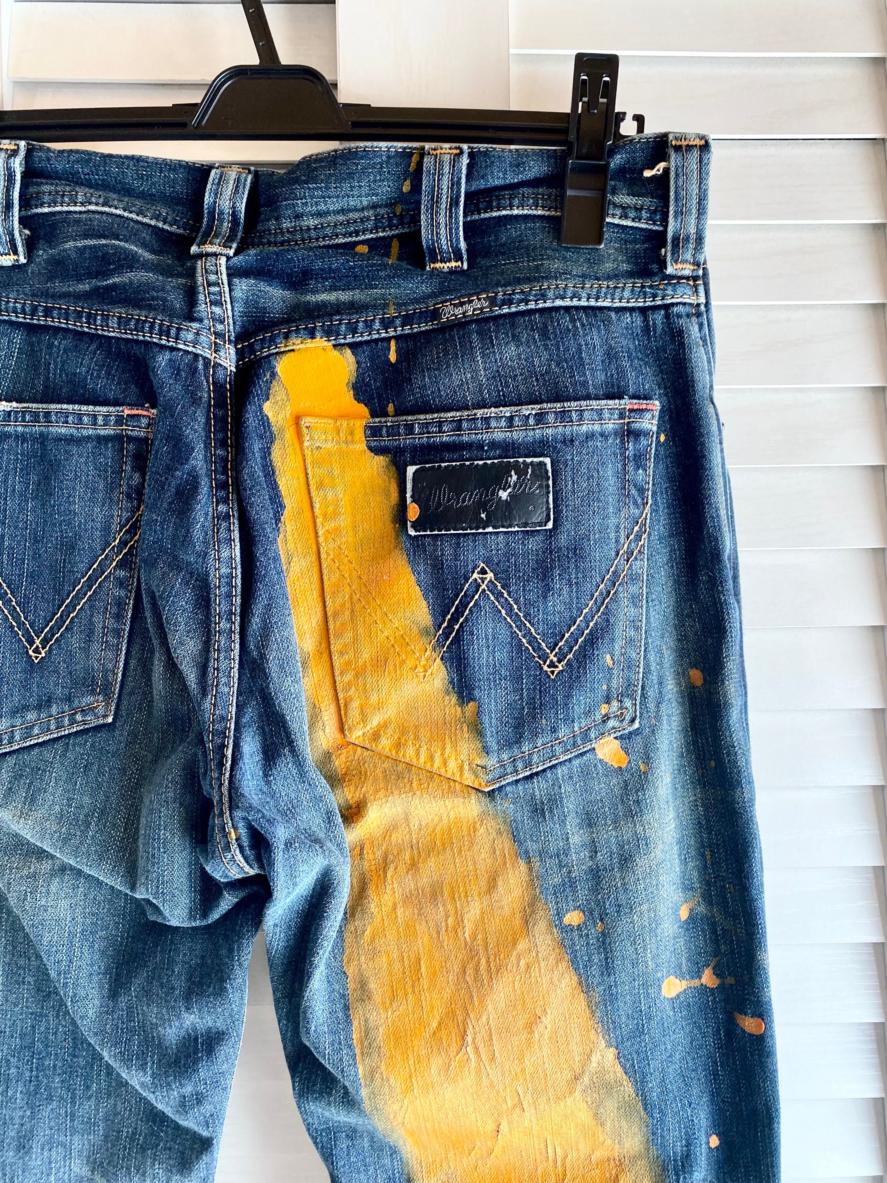 #160 Wrangler リメイク1点物 ペイントブーツカット ヴィンテージジーンズ ネイビー