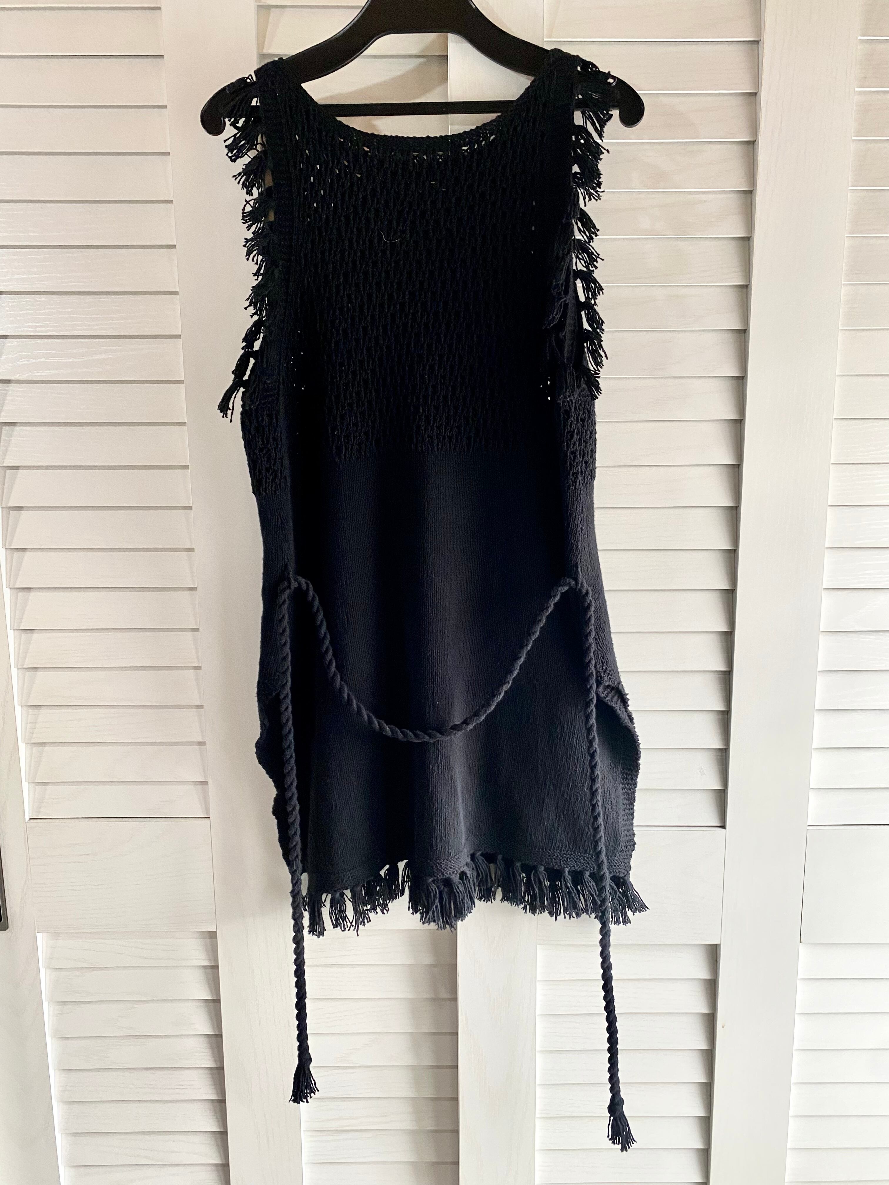 #163 MACPHEE 透かし編み コットンニットジレ ブラック