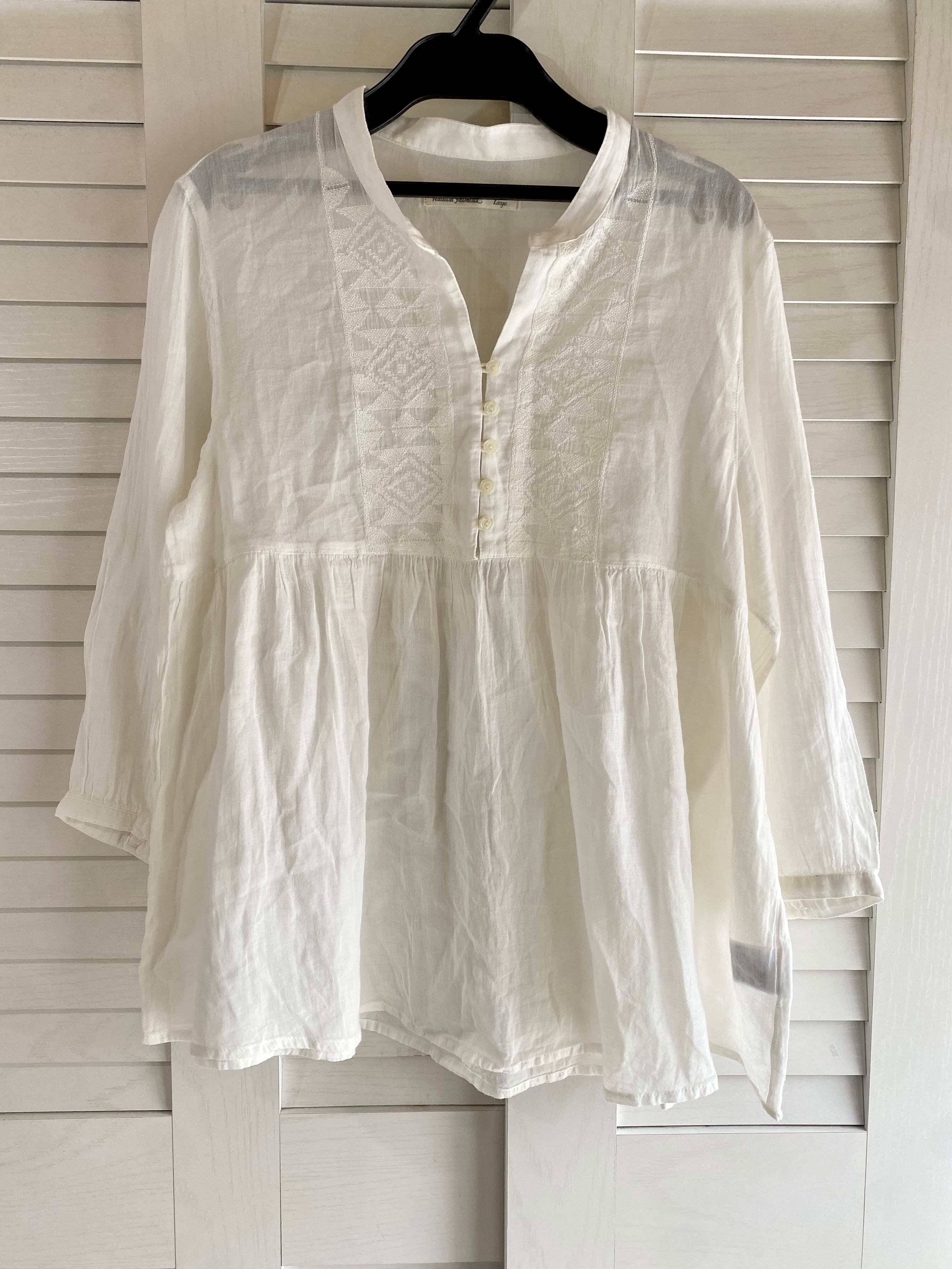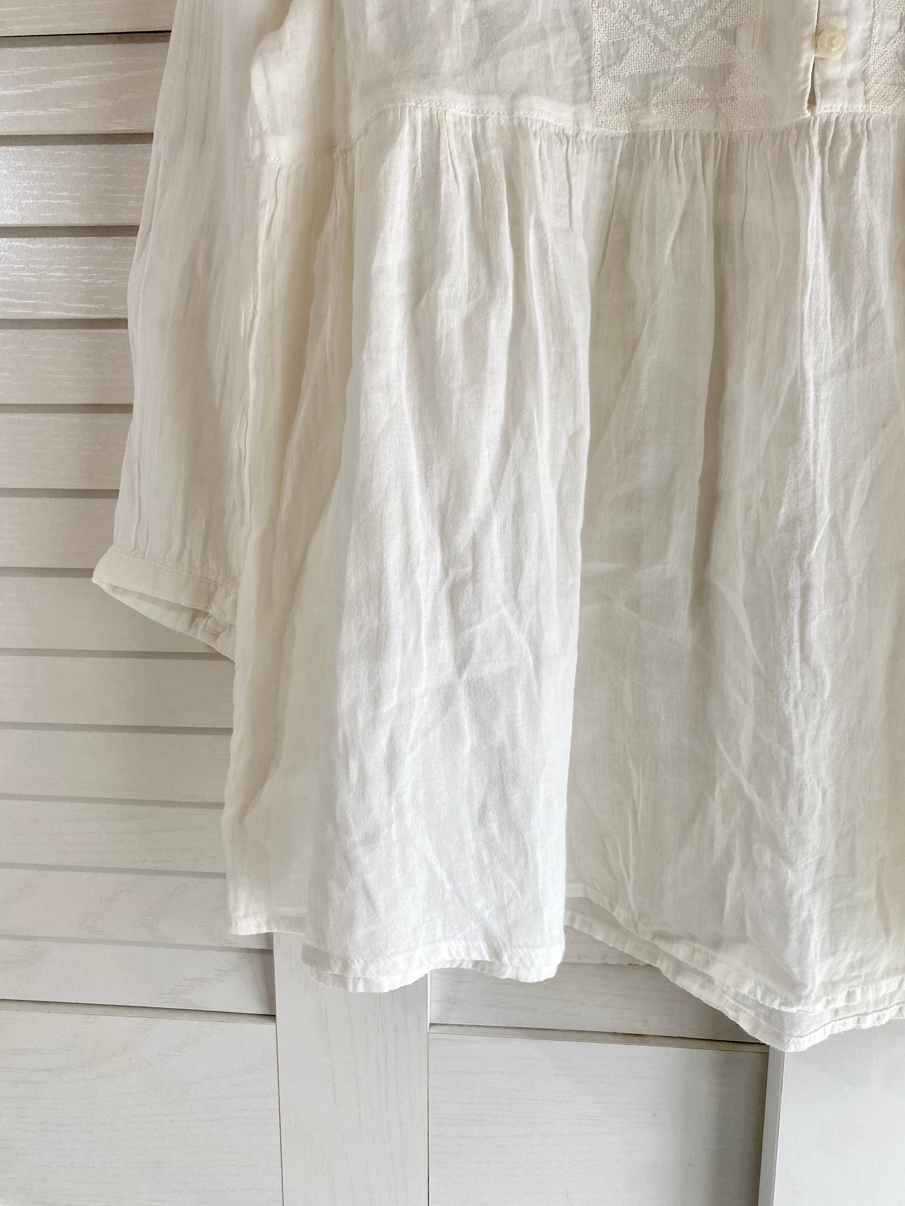 #164 HONEYSUCKLE ROSE ミクロクロスステッチ刺繍 綿ローンオーバーサイズブラウス オフホワイト